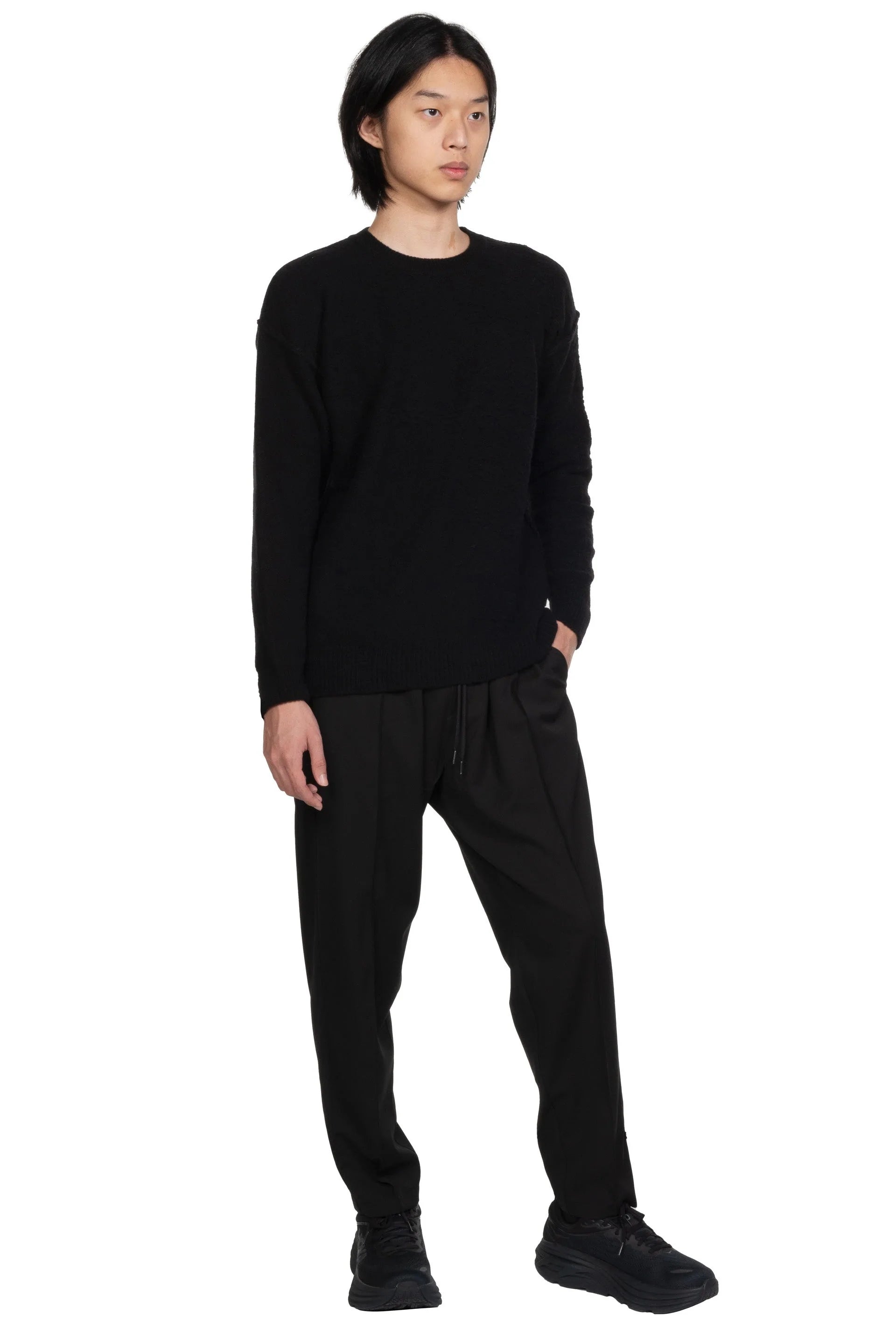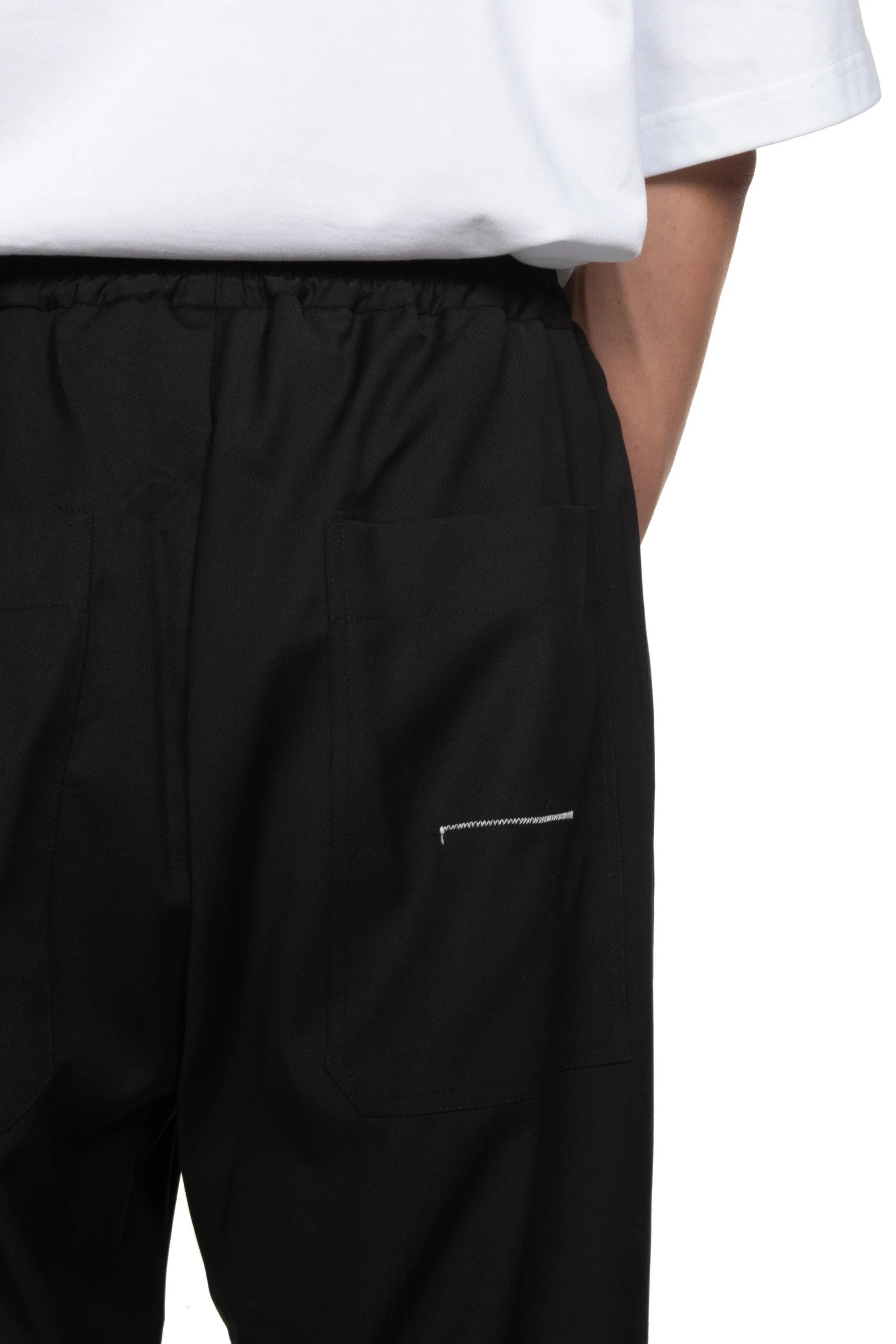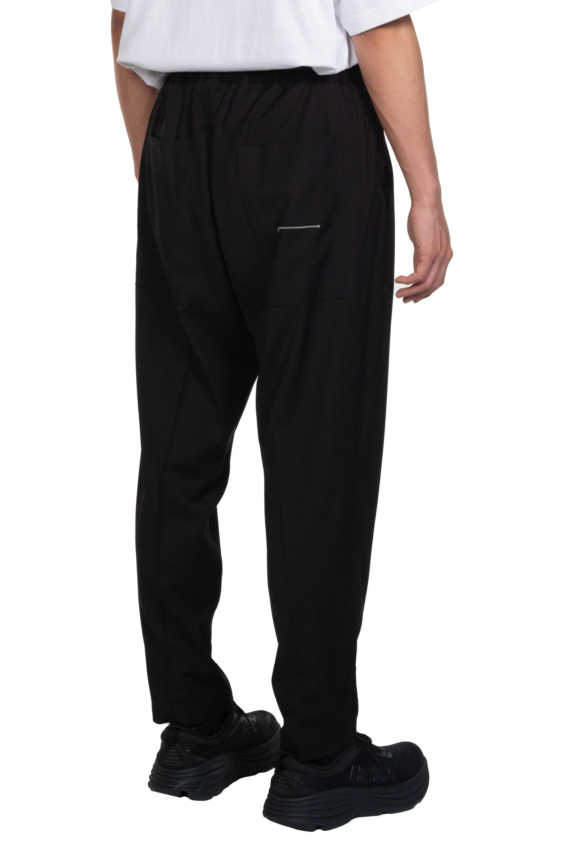 Isabel Benenato Light Wool Pant. Elastic waist. Drawstring at waist. Two side pockets. Pleat at front. Slightly cropped. Stitching details at back. Two back pockets.