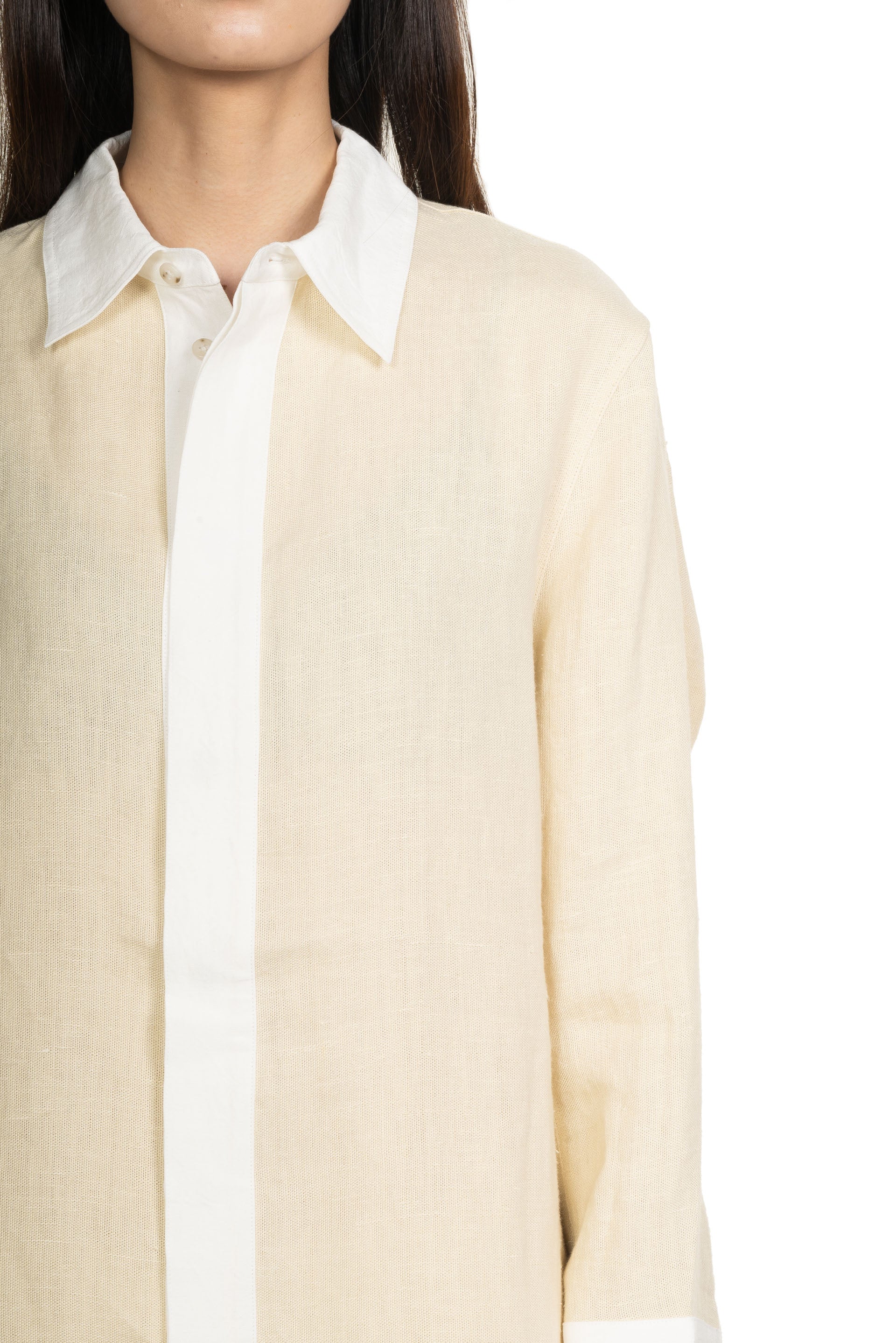 Swaying redefines modern knitwear by fusing artisanal craftsmanship with contemporary design. Through innovative textures, intricate yarn play, and hybrid weaving techniques, each piece balances softness and strength. Sourcing premium European and Japanese materials, Swaying/Knit ensures a luxurious hand feel while embracing sustainable fashion. With delicate details and timeless sophistication, the brand delivers elevated, wearable art for the discerning, fashion-forward wardrobe as seen with the Linen Shirt with Turned Up Sleeve.