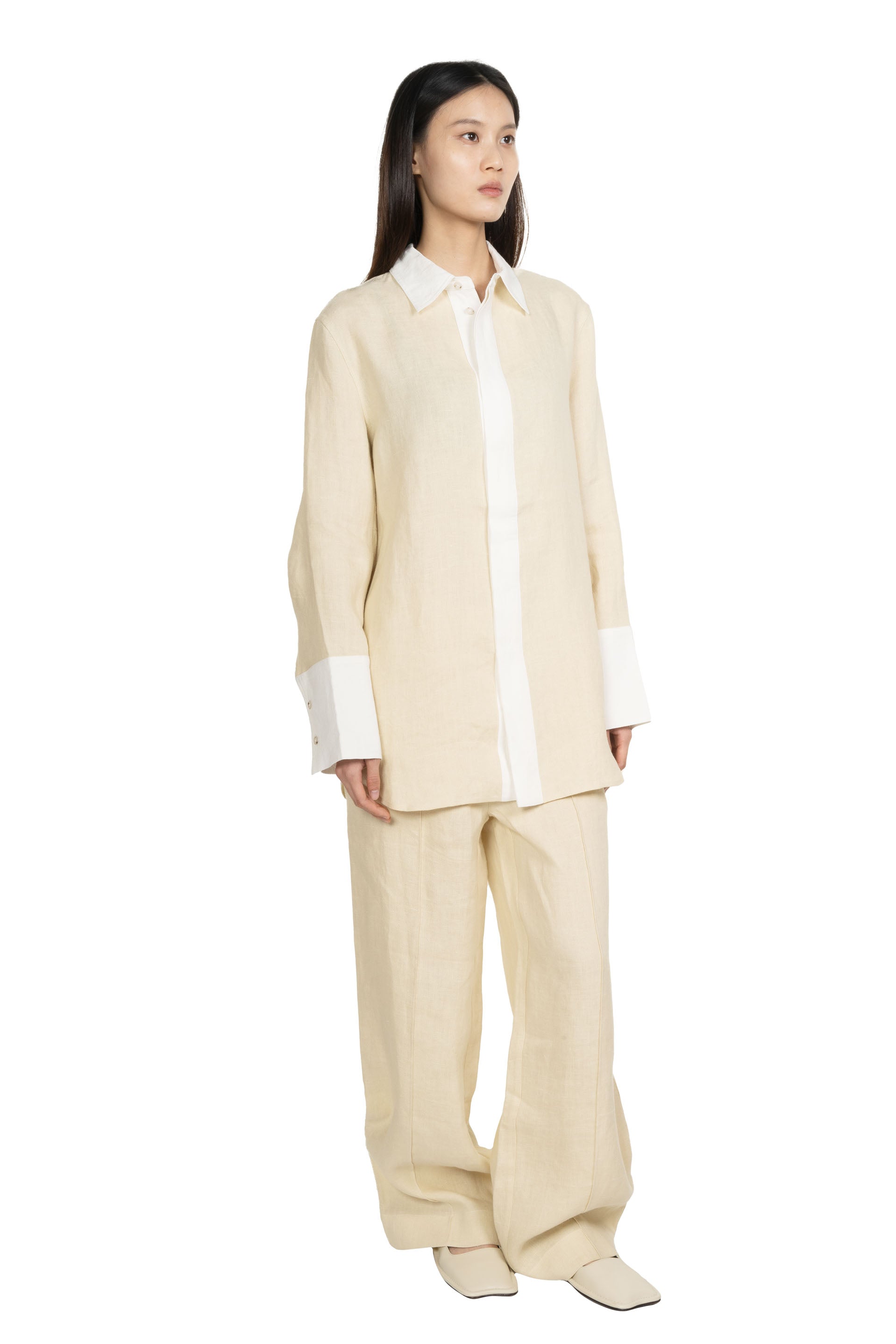 Swaying redefines modern knitwear by fusing artisanal craftsmanship with contemporary design. Through innovative textures, intricate yarn play, and hybrid weaving techniques, each piece balances softness and strength. Sourcing premium European and Japanese materials, Swaying/Knit ensures a luxurious hand feel while embracing sustainable fashion. With delicate details and timeless sophistication, the brand delivers elevated, wearable art for the discerning, fashion-forward wardrobe as seen with the Linen Straight Leg Trousers.