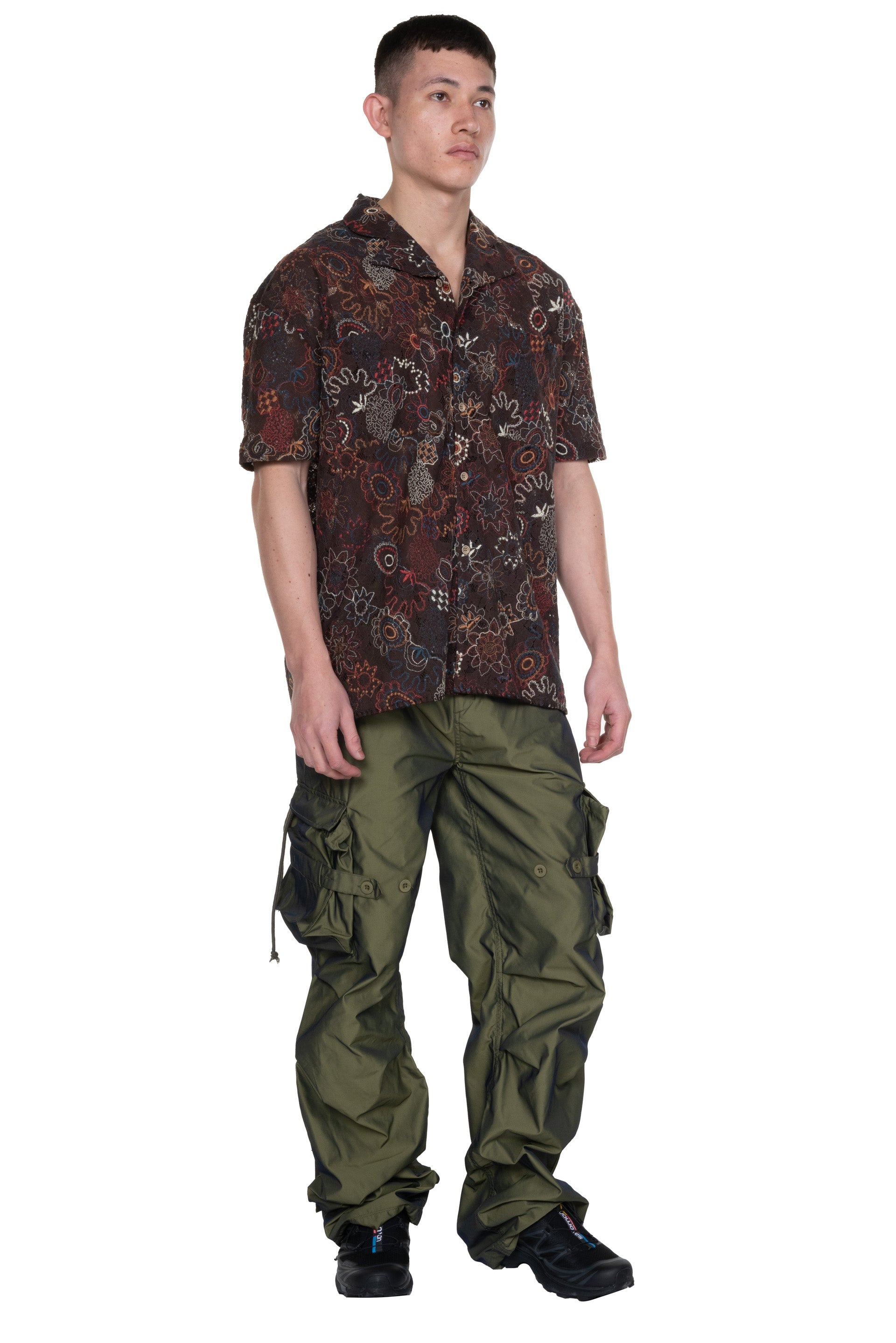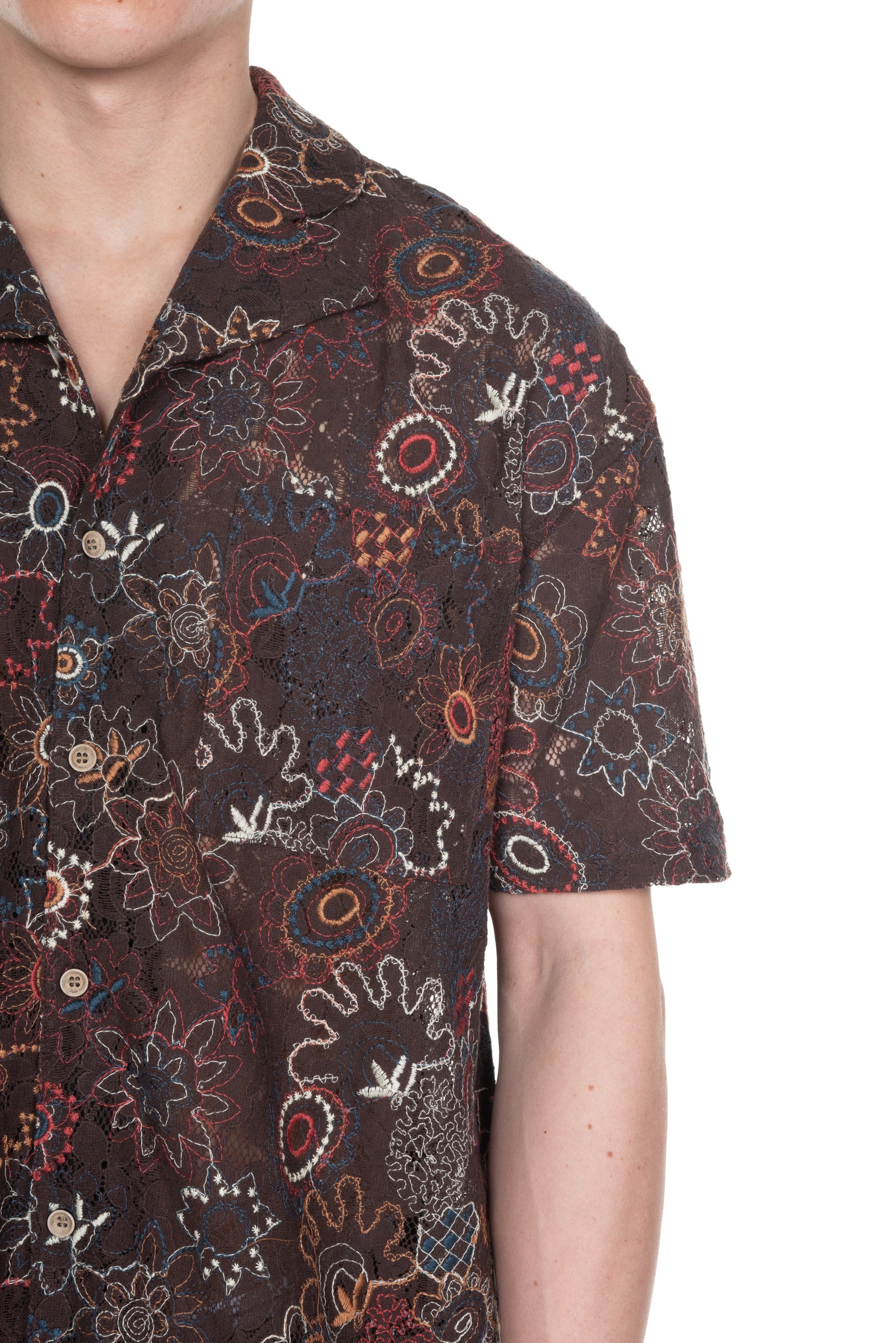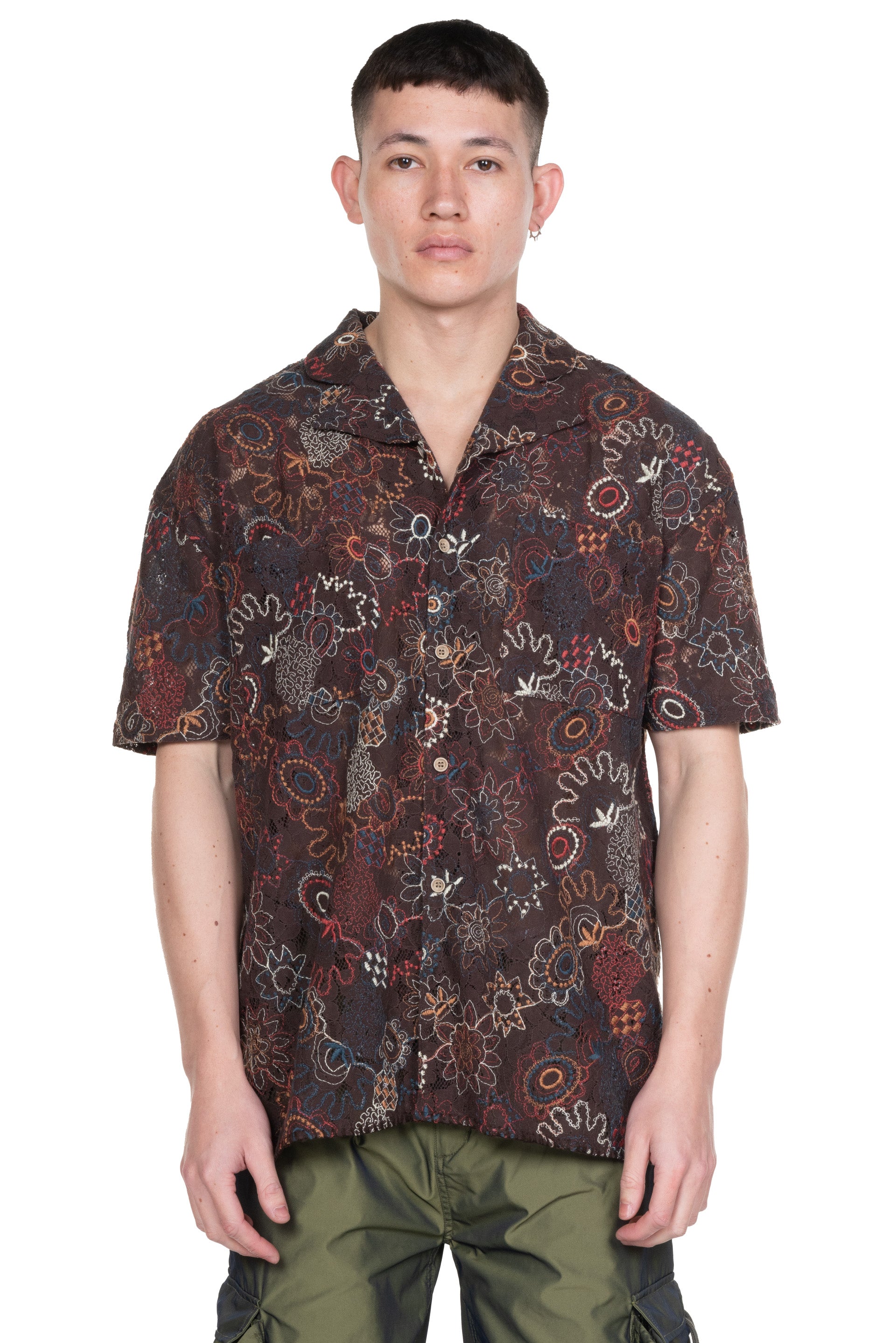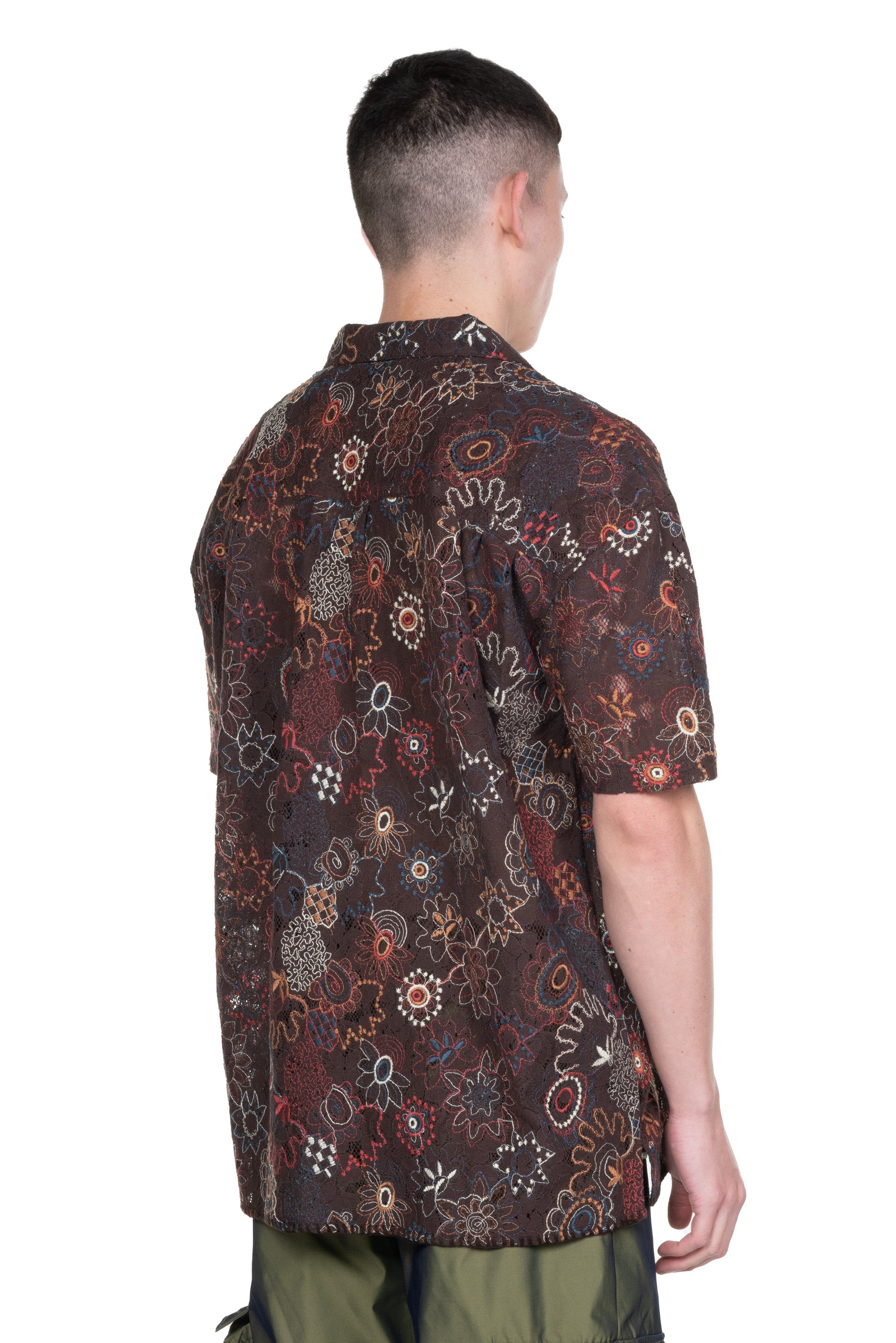 Short sleeves. Pocket at chest. Button closure at front. Slit at side. Embroideries throughout. Open collar. Regular fit.