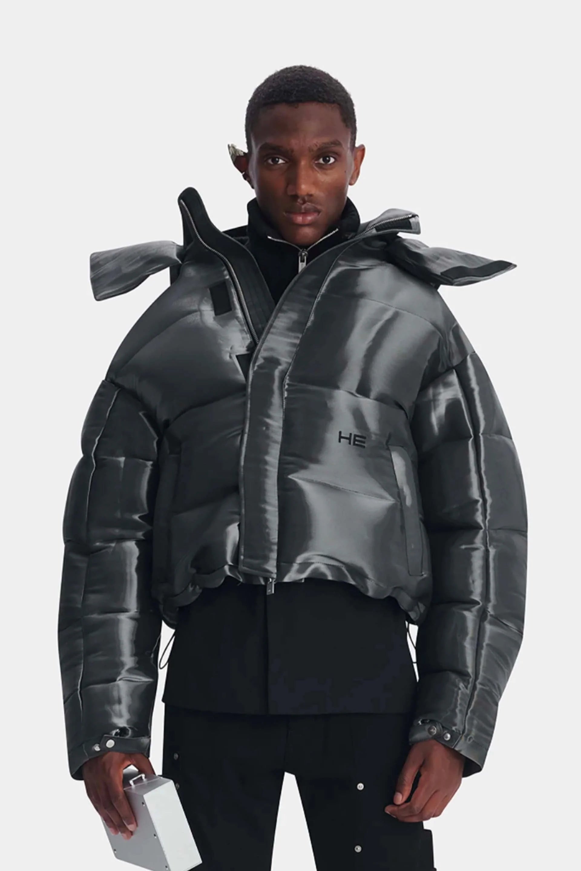 The Juul brothers came to fashion in a roundabout way allowing them to communicate a consistent and clear vision, creating their universe for then add onto it with products. HELIOT EMIL adds elegance to an alternative fashion environment with every new product as seen with the Liquid Metal Down Jacket.