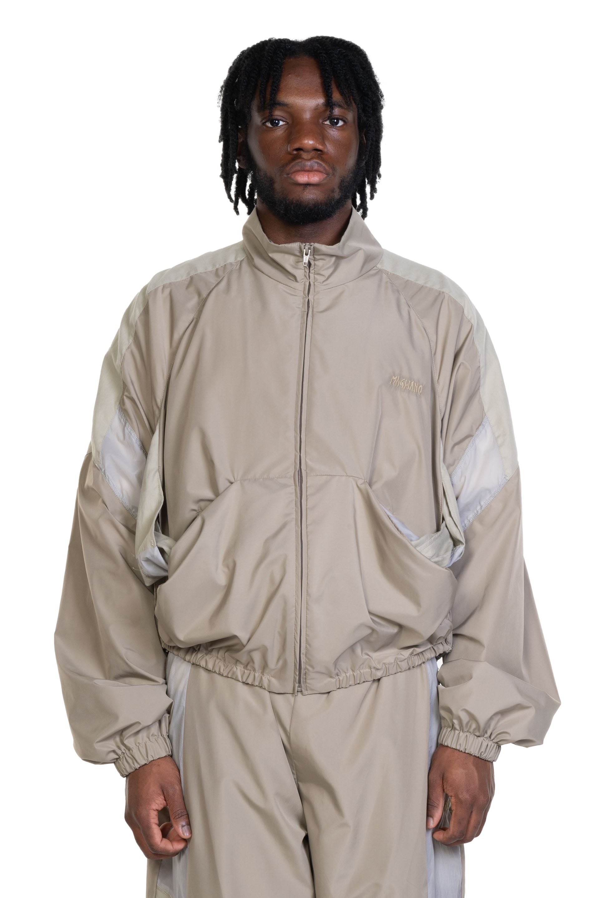 Magliano tracksuit jacket in Beige. Long sleeves. Two side pockets. Zip closure at front. Elasticated bottom. Light and soft technical fabric.
