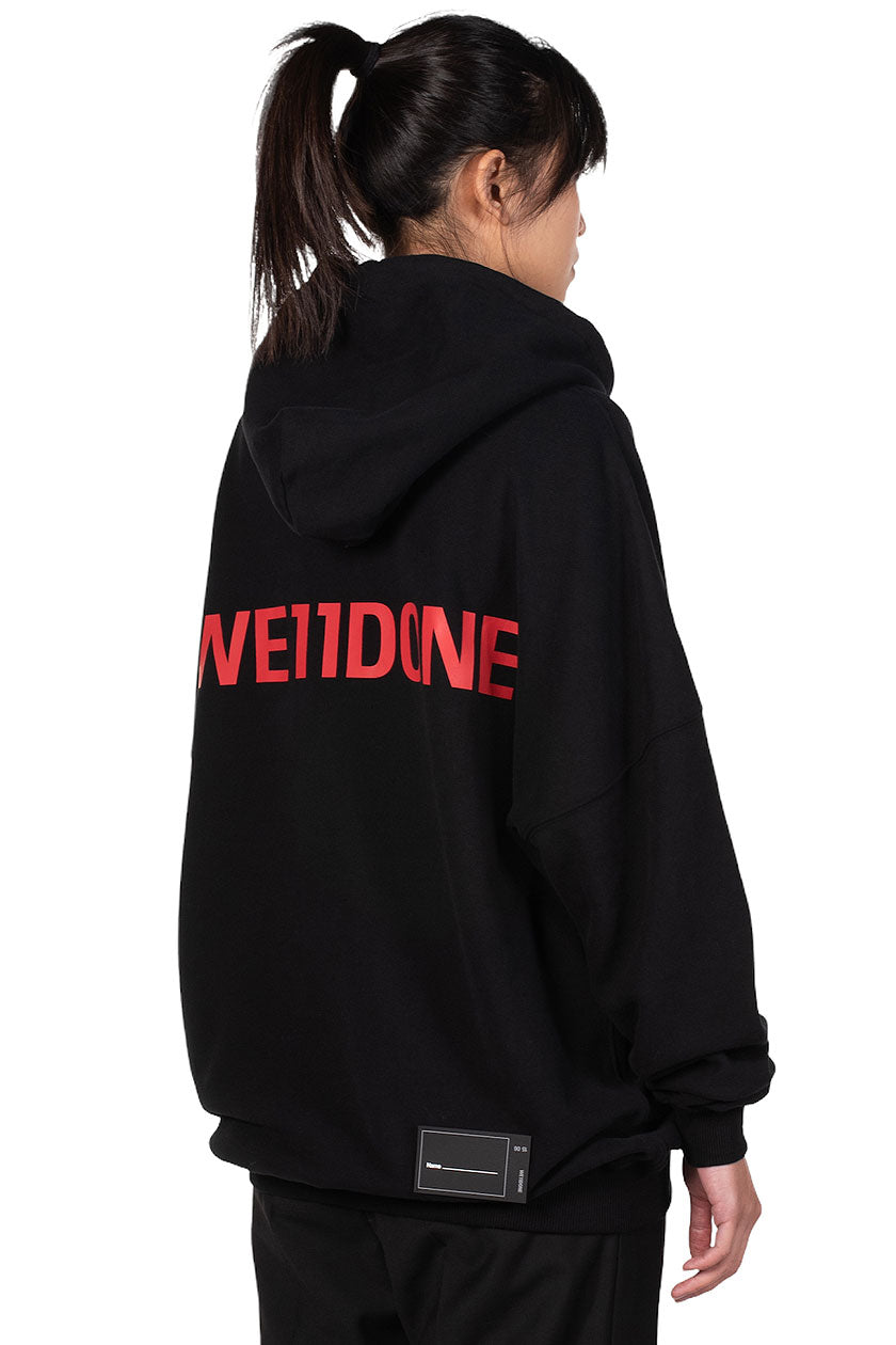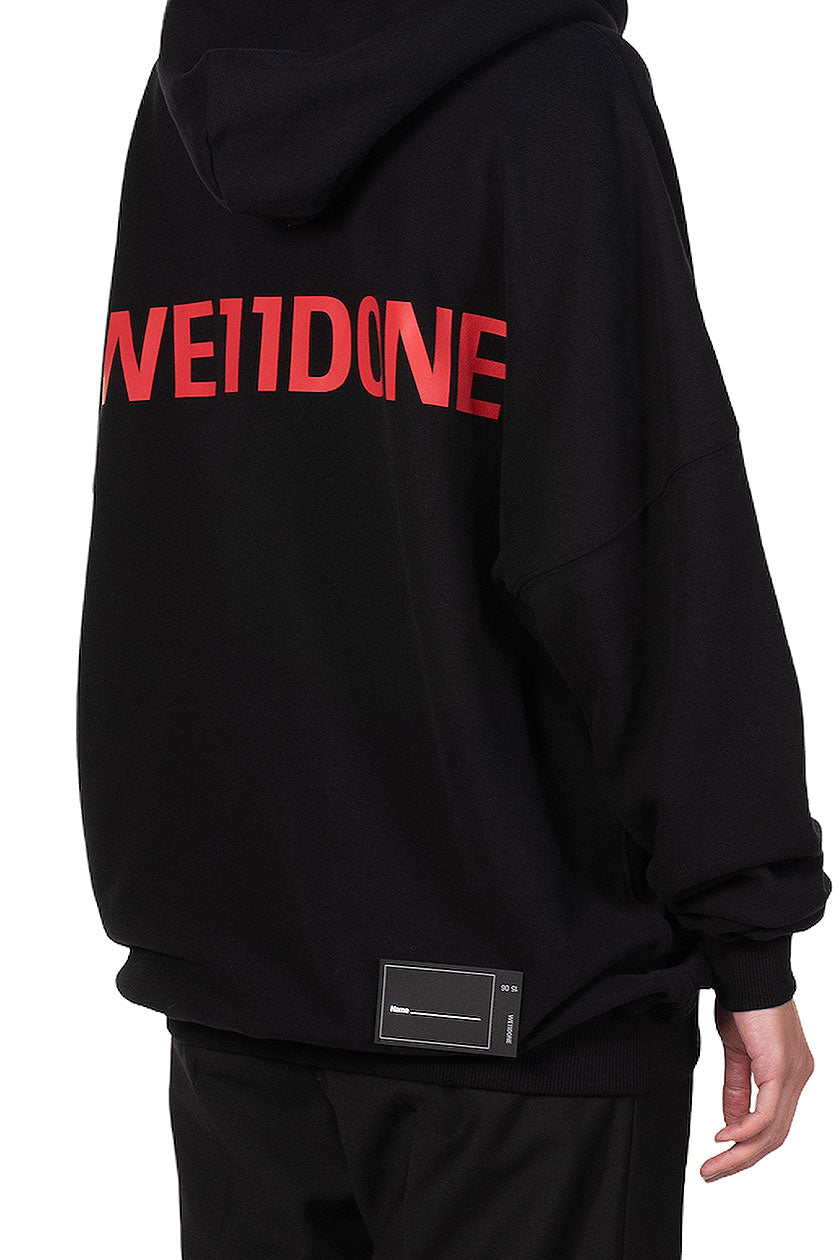 We11done merges late 1990s and early 2000s aesthetics creating a feeling of futurity. Functional, sportive, and sleek, We11done’s versatile designs refine classic elements into contemporary lifestyle pieces as seen with the Logo Hoodie With Strings.