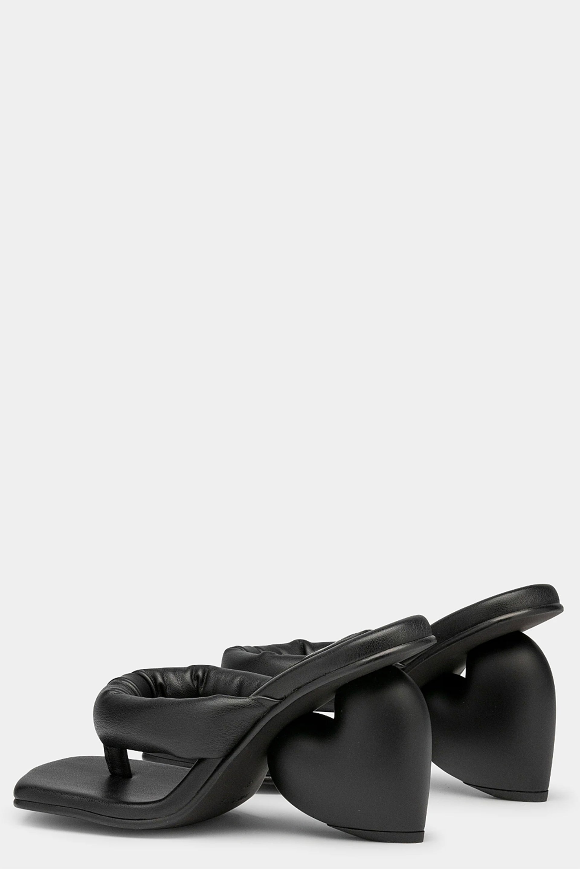 Heeled mules. 3D heart heel. Playful. Vegan materials.