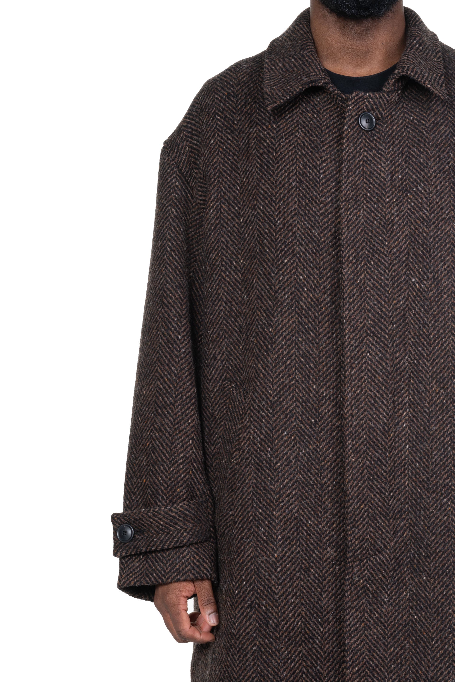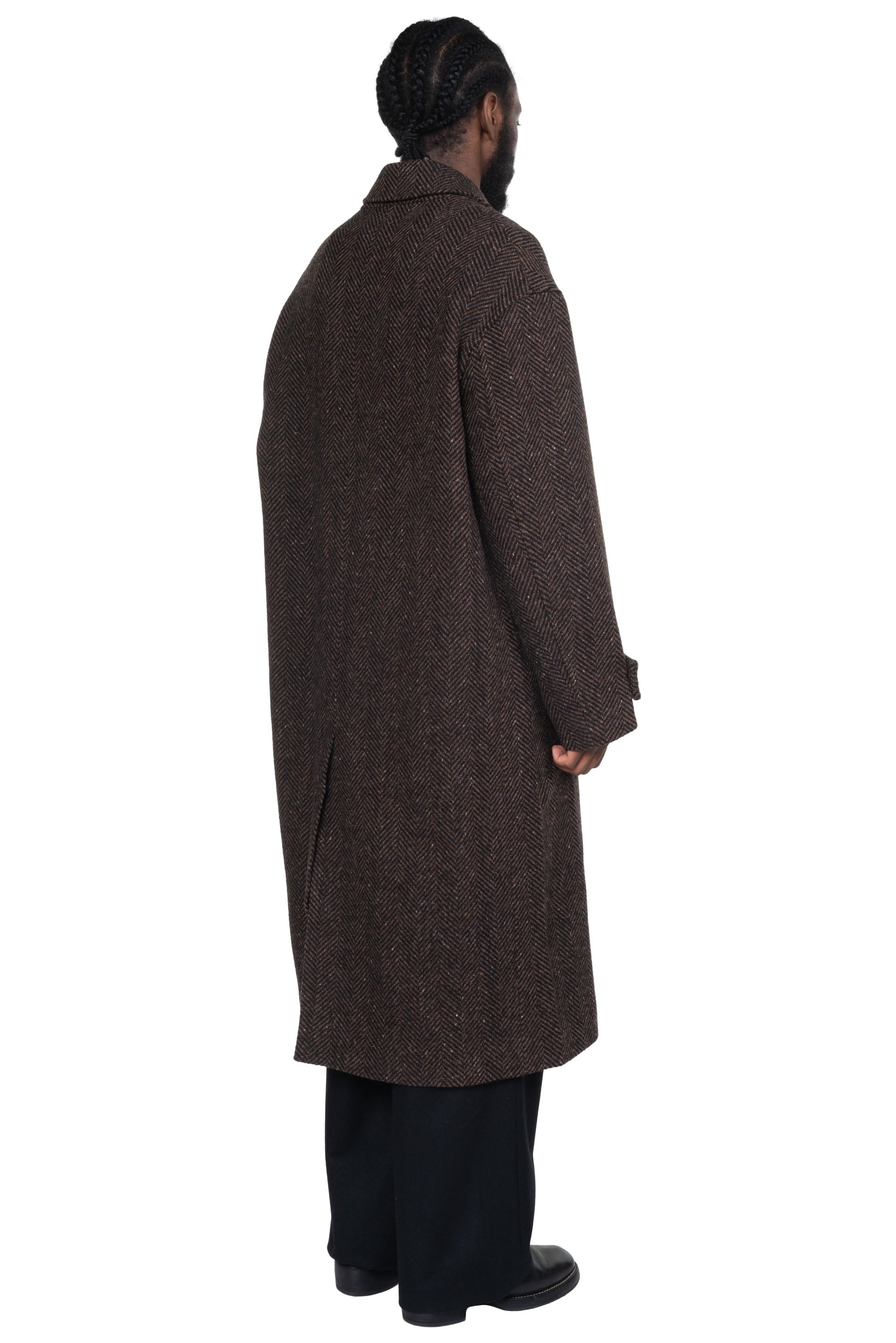 Always in search of uniformity, focusing on form and function rather than thematic seasonal collections, Lownn reinterprets utilitarian menswear with a minimalist and contemporary approach and gives you a testimony of its time as seen with the Mac Overcoat Wool Cashmere Dark Brown.