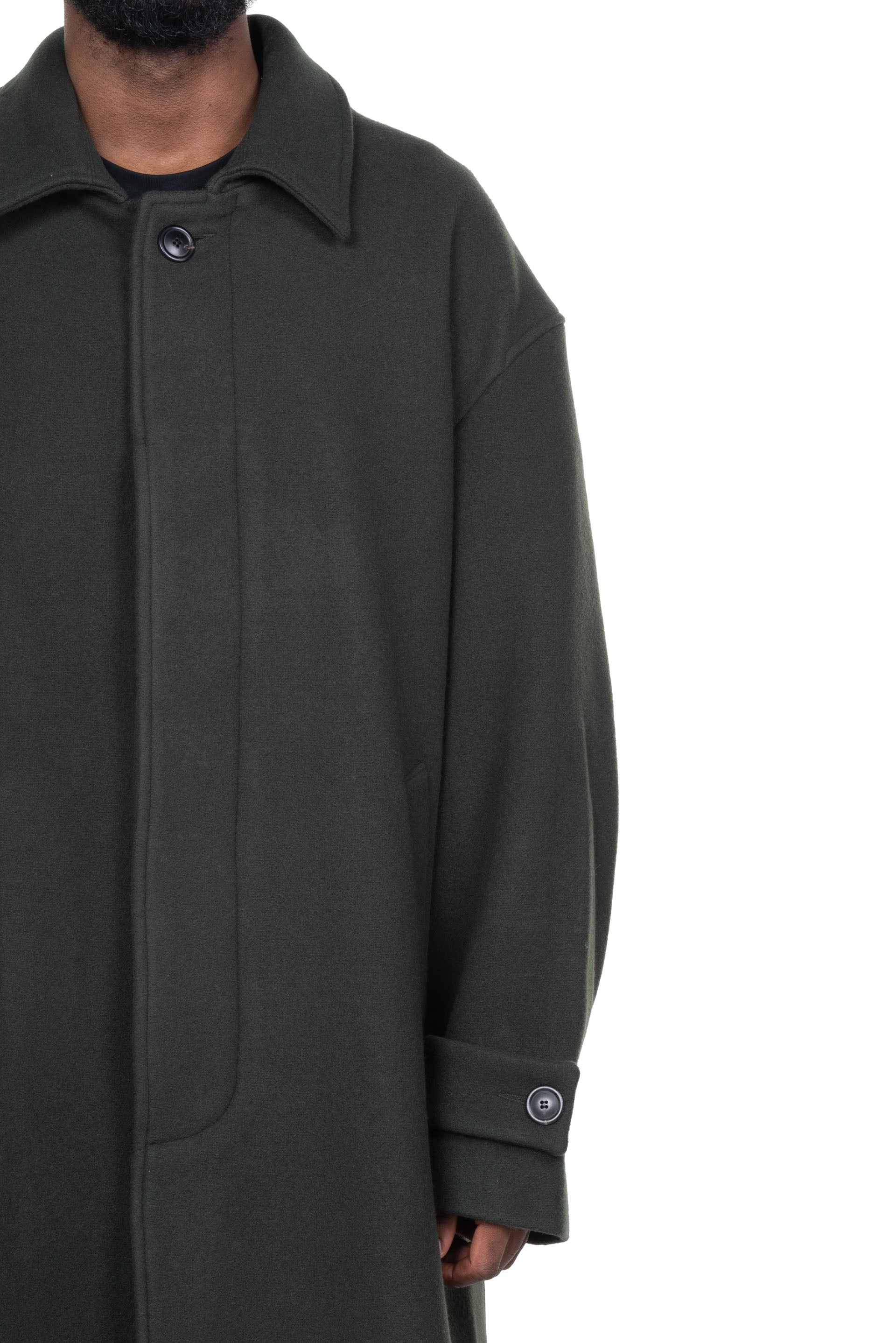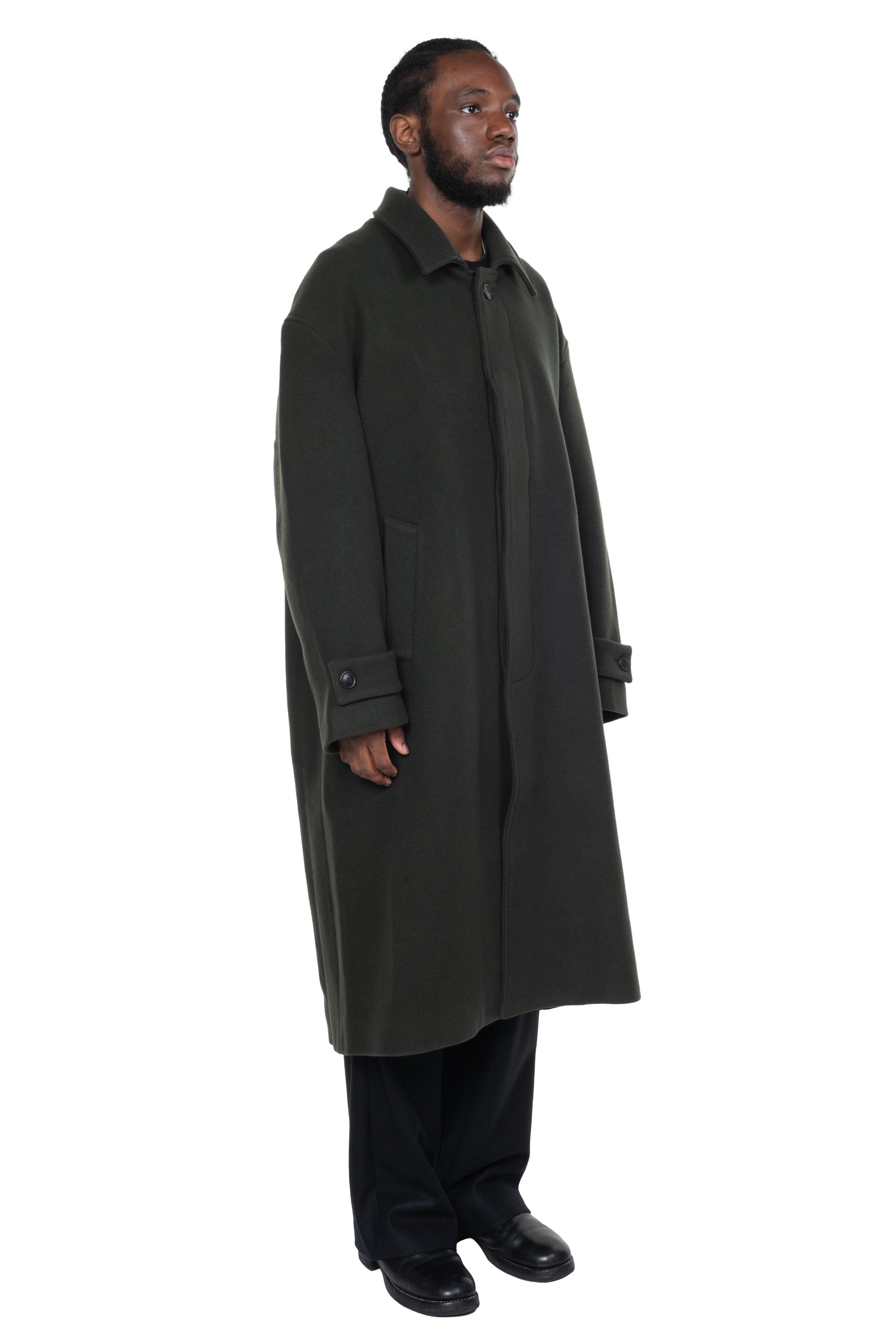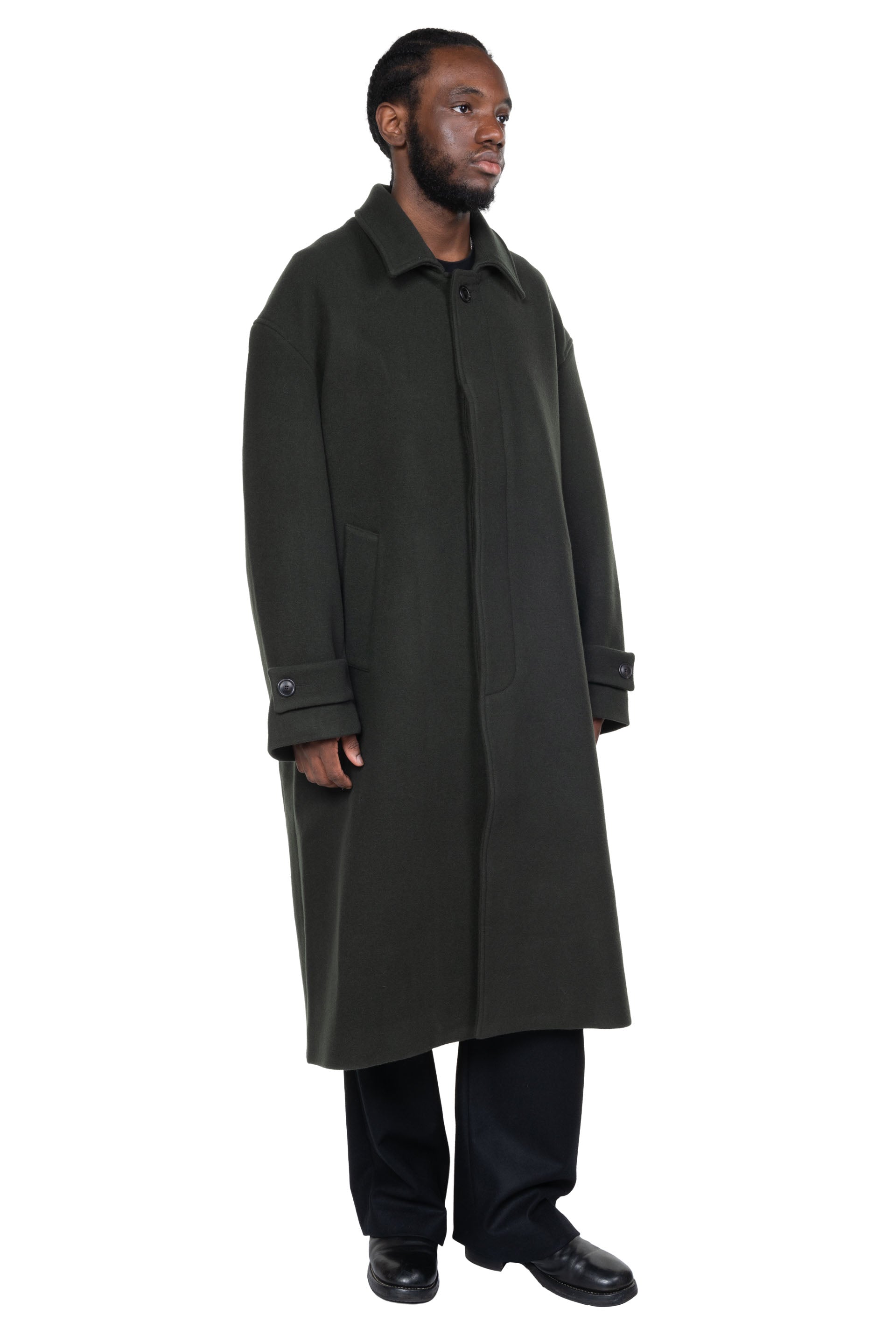 Always in search of uniformity, focusing on form and function rather than thematic seasonal collections, Lownn reinterprets utilitarian menswear with a minimalist and contemporary approach and gives you a testimony of its time as seen with the Mac Overcoat Wool Cashmere Dark Military Green.