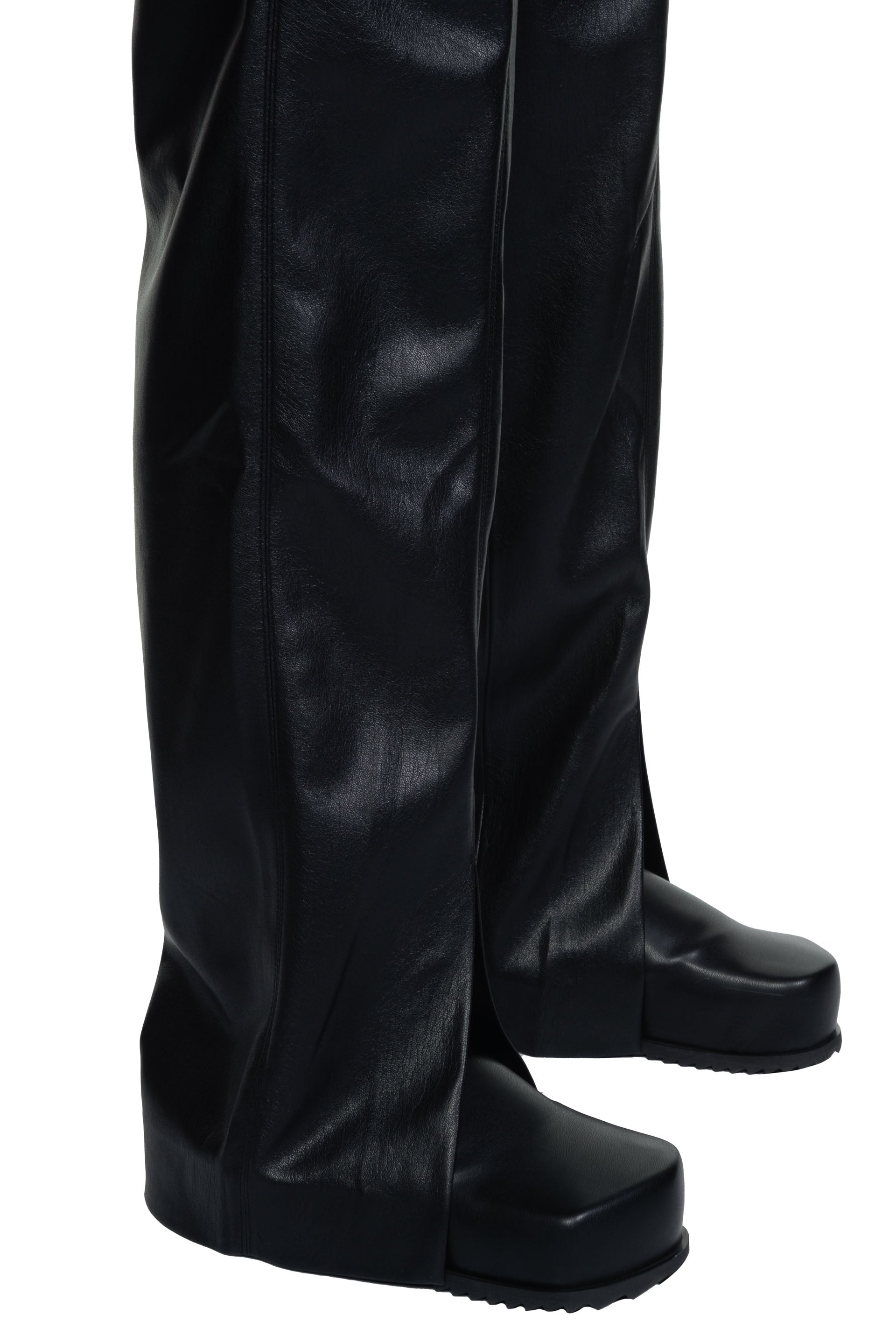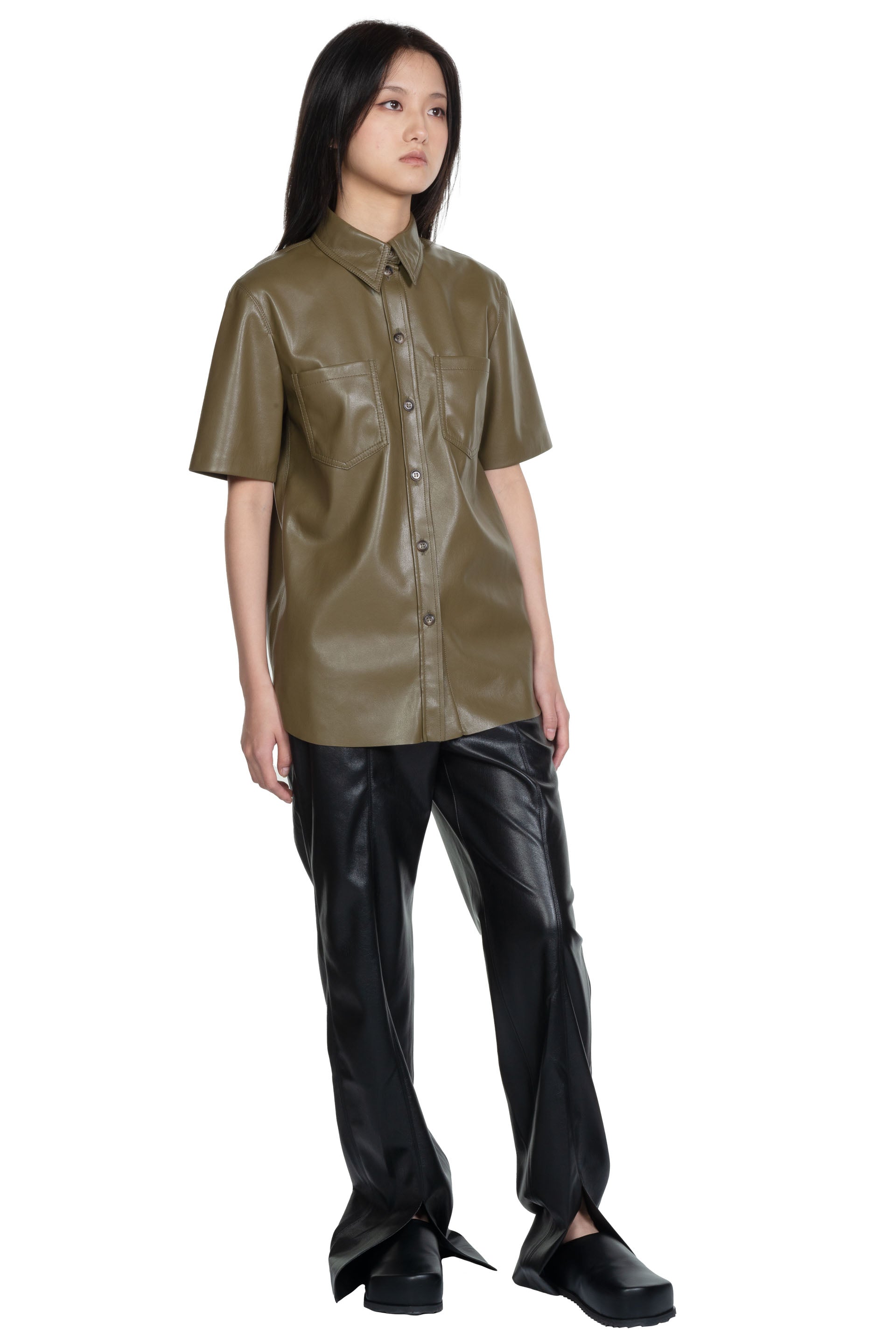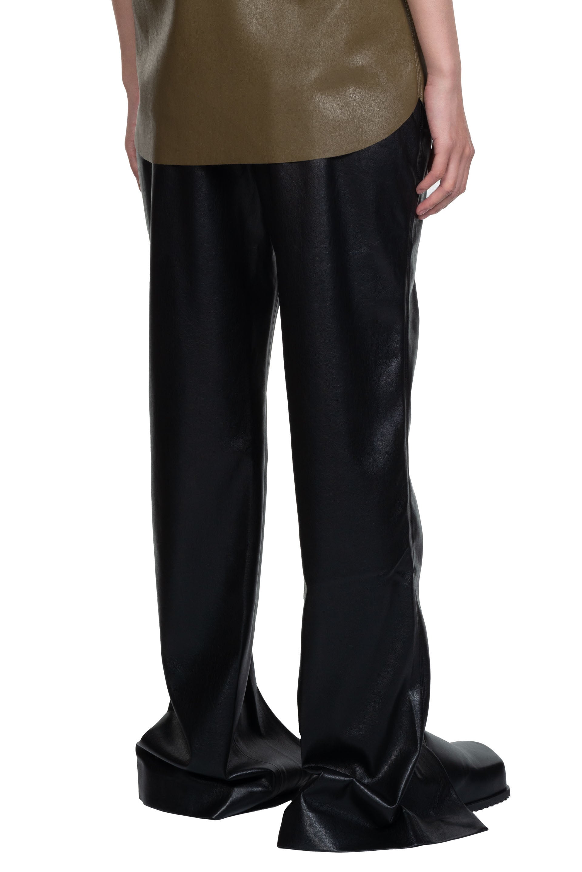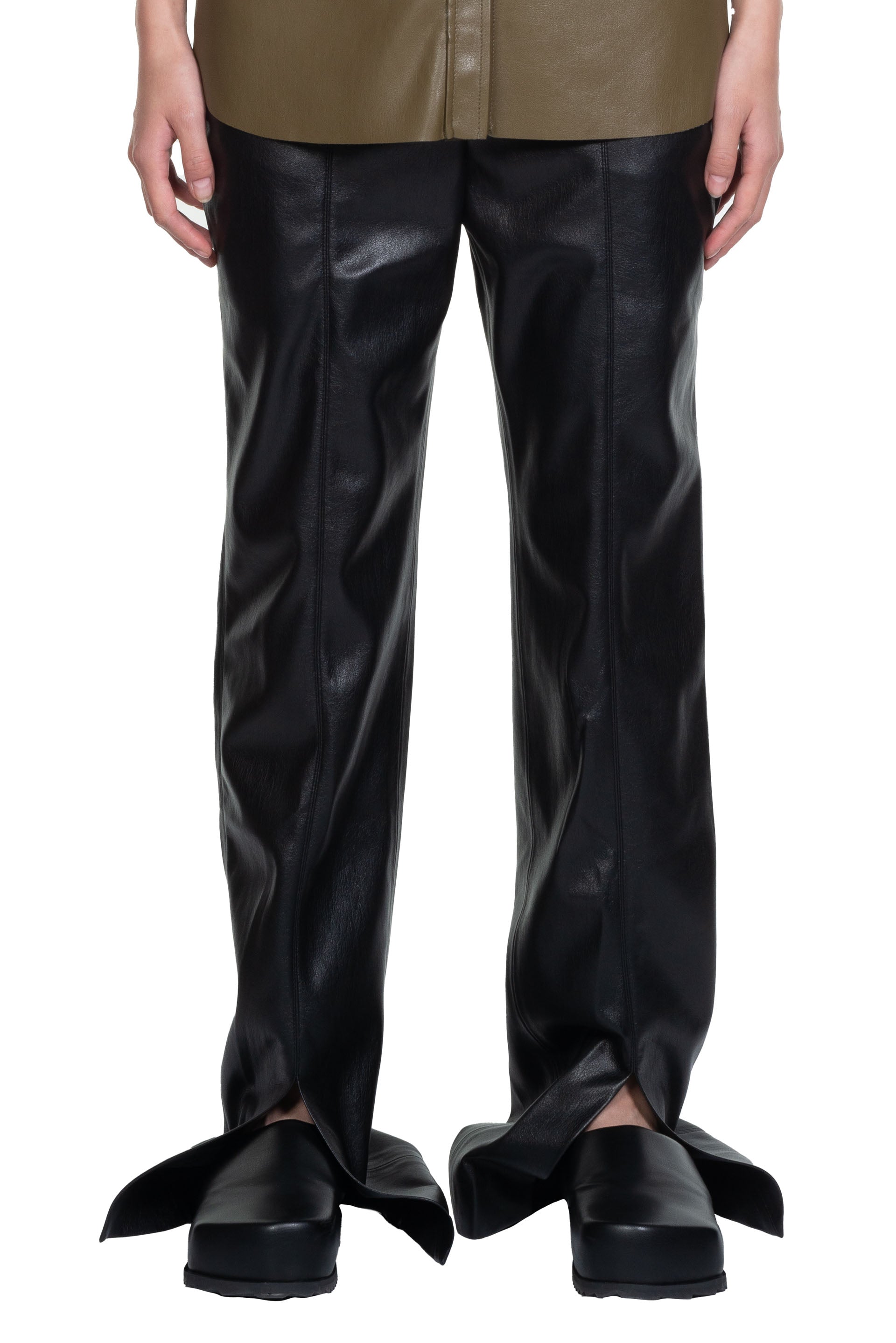 Grained OKOBOR™ vegan leather trousers. Belt loops. Three-pocket styling. Zip-fly. Central seams at front. Vented cuffs.