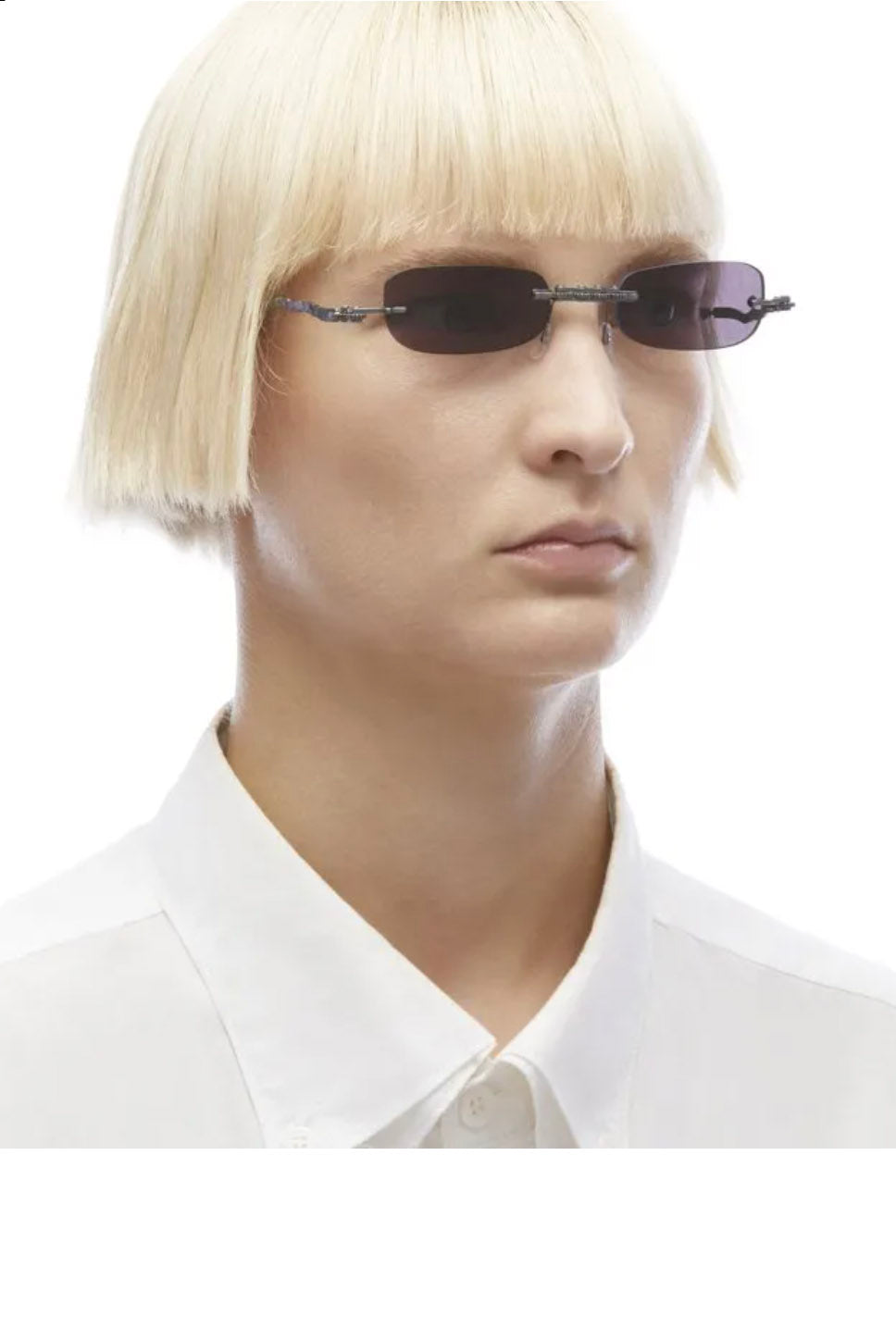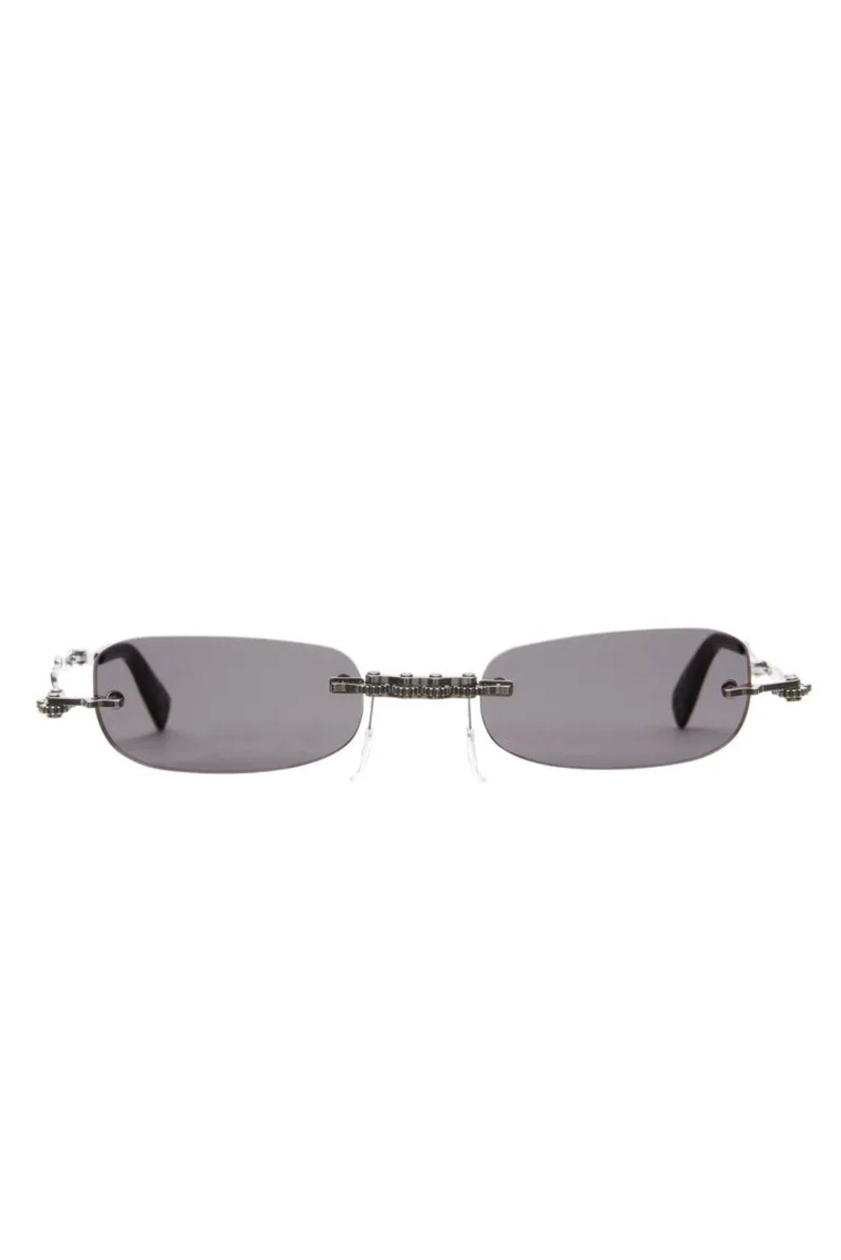 Kuboraum MASK H47 Black are oval sunglasses. They feature black metal/acetate foldable structure, and grey lens with 100% UV protection. Handmade in Italy.