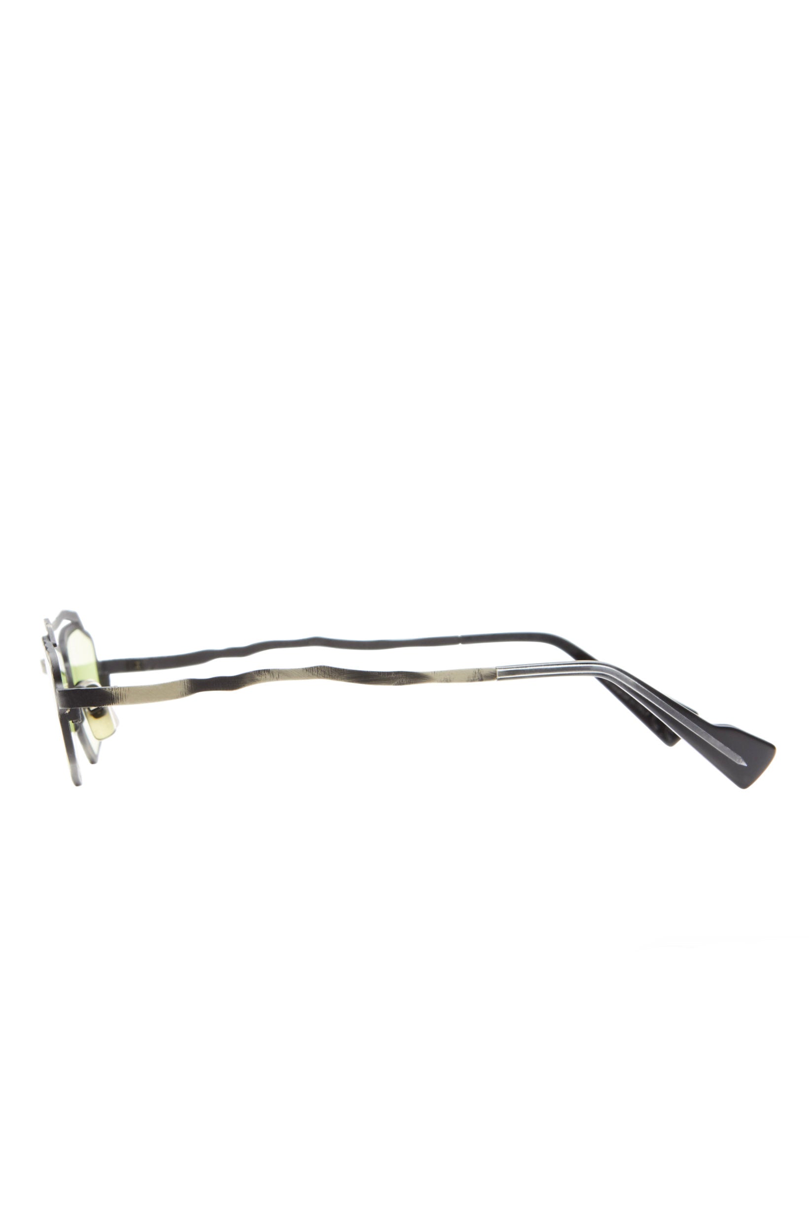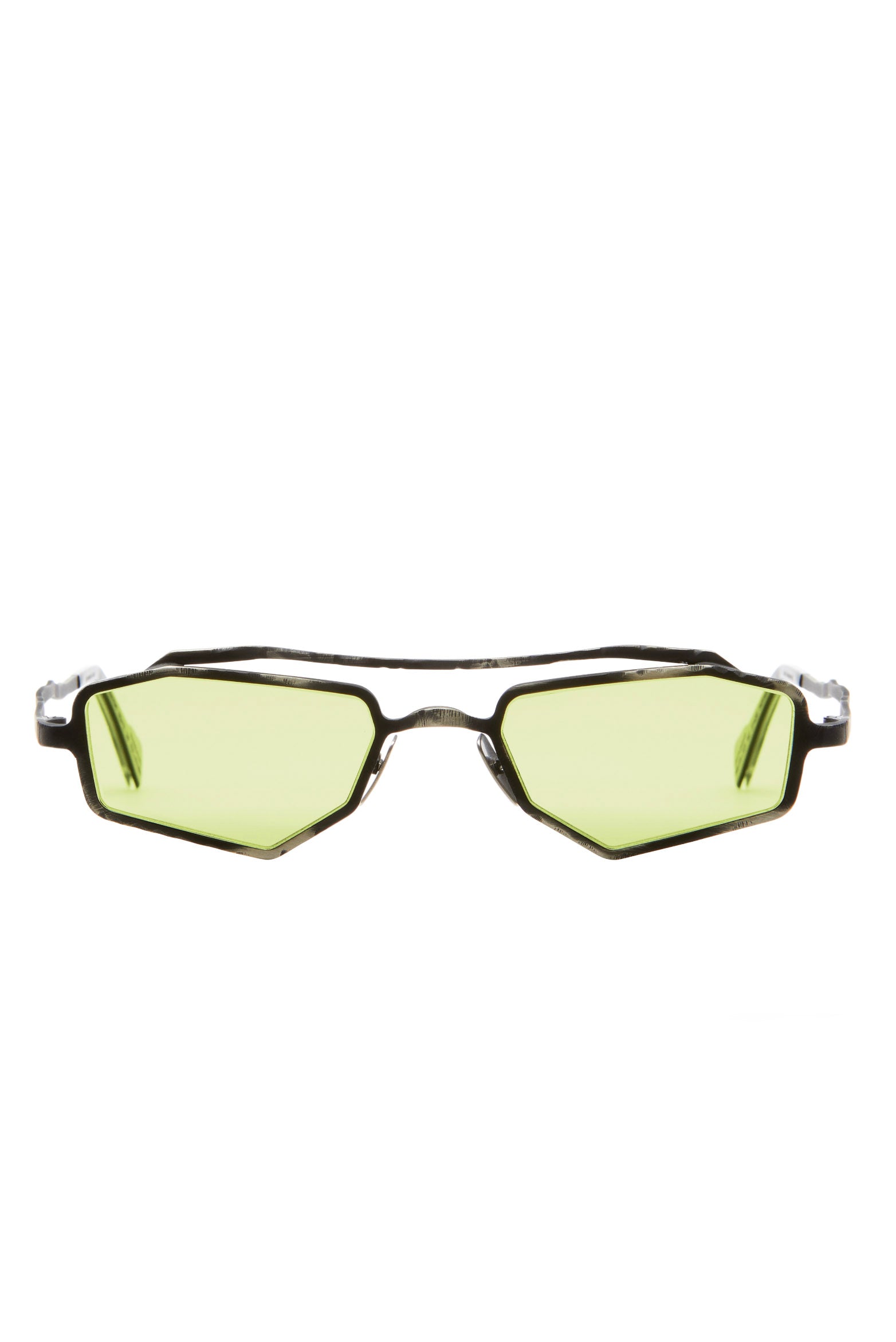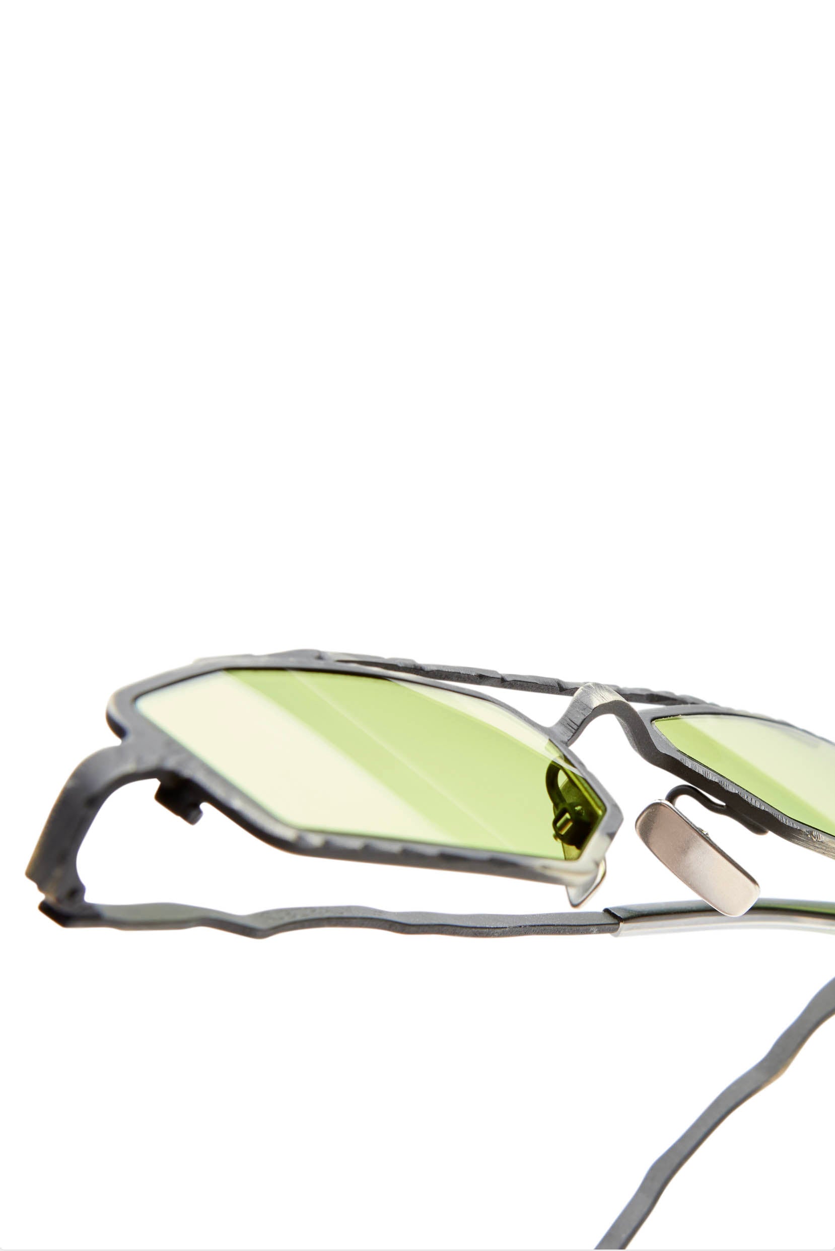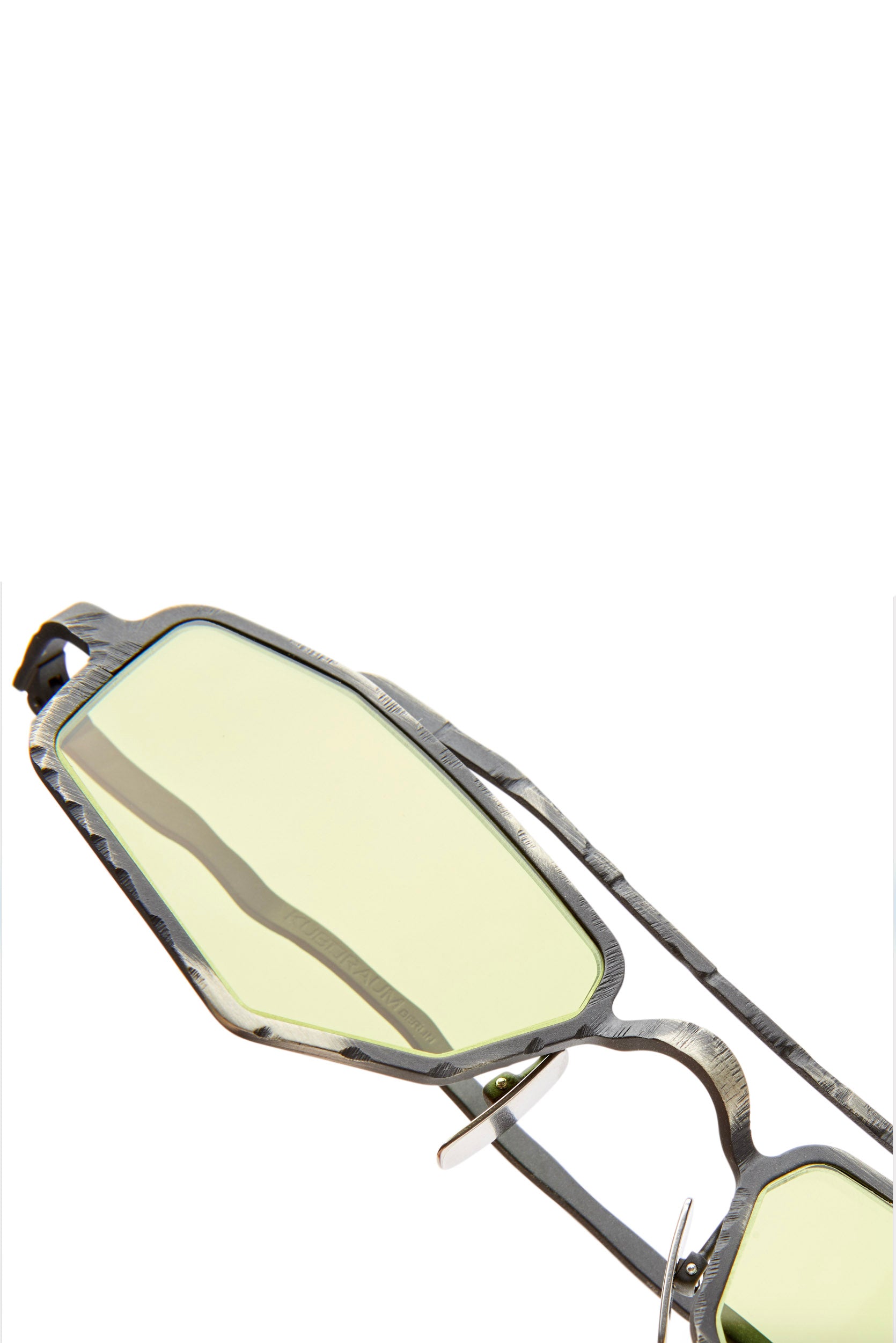 Silver-tone. Metal. Geometric frame. Acid Green tinted lenses. UV-protective lenses. Double bridge. Nose pads. Sculpted arms. Curved tips. Logo detail. These glasses come with a protective case.
