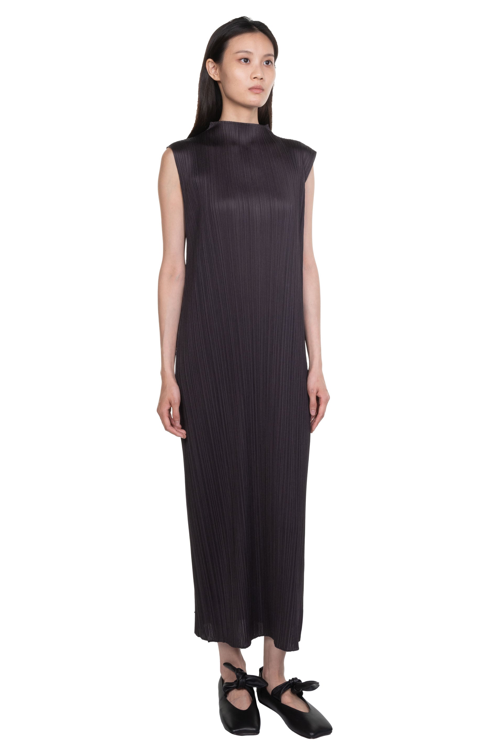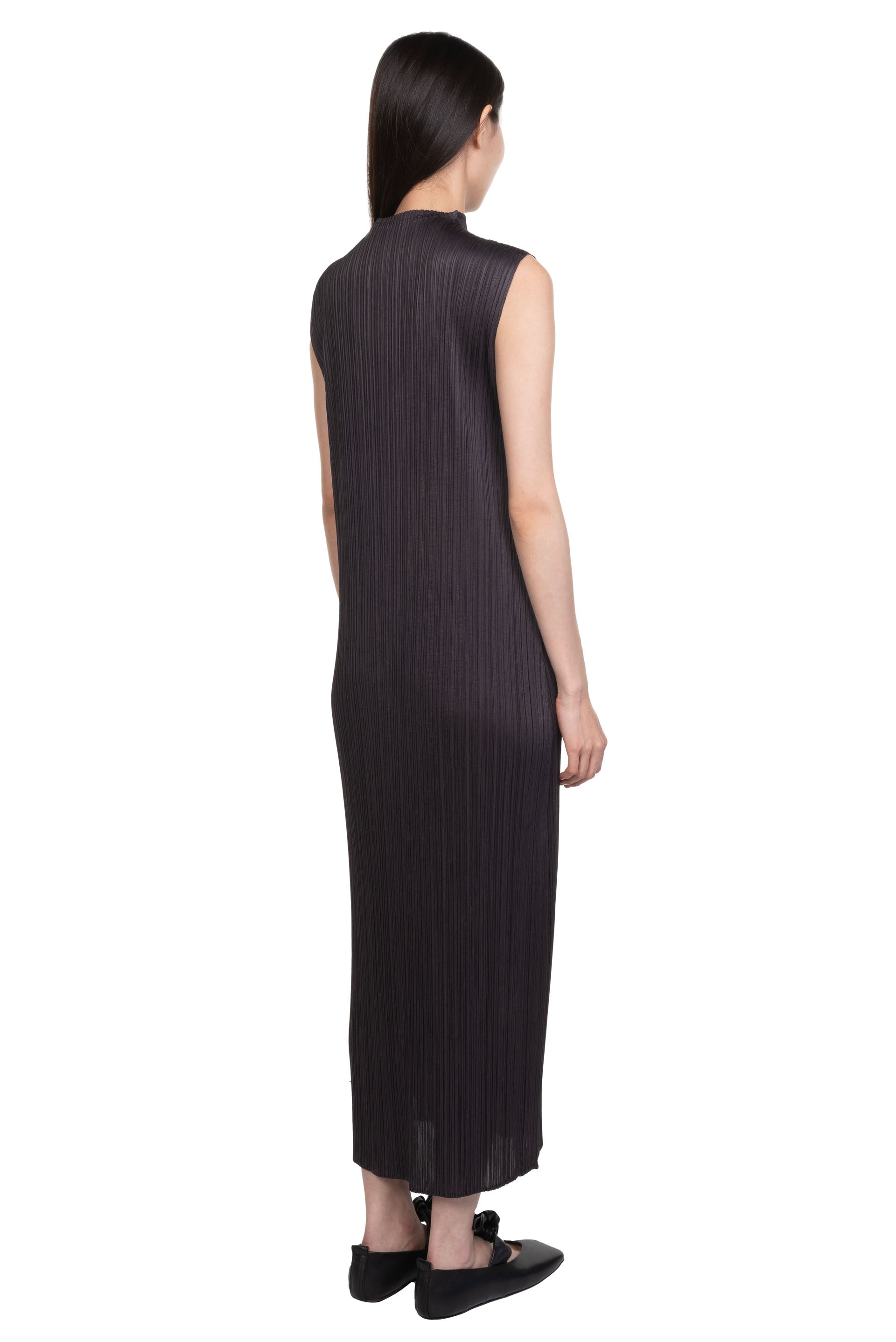 Pleats Please is crafted from a single thread, then creases are added after the clothes have been sewn into shape offering a combination of convenience, comfort and coolness. Pleats Please designs are simple with a strong silhouette as seen with the Monthly Color April Dress Black Pepper.
