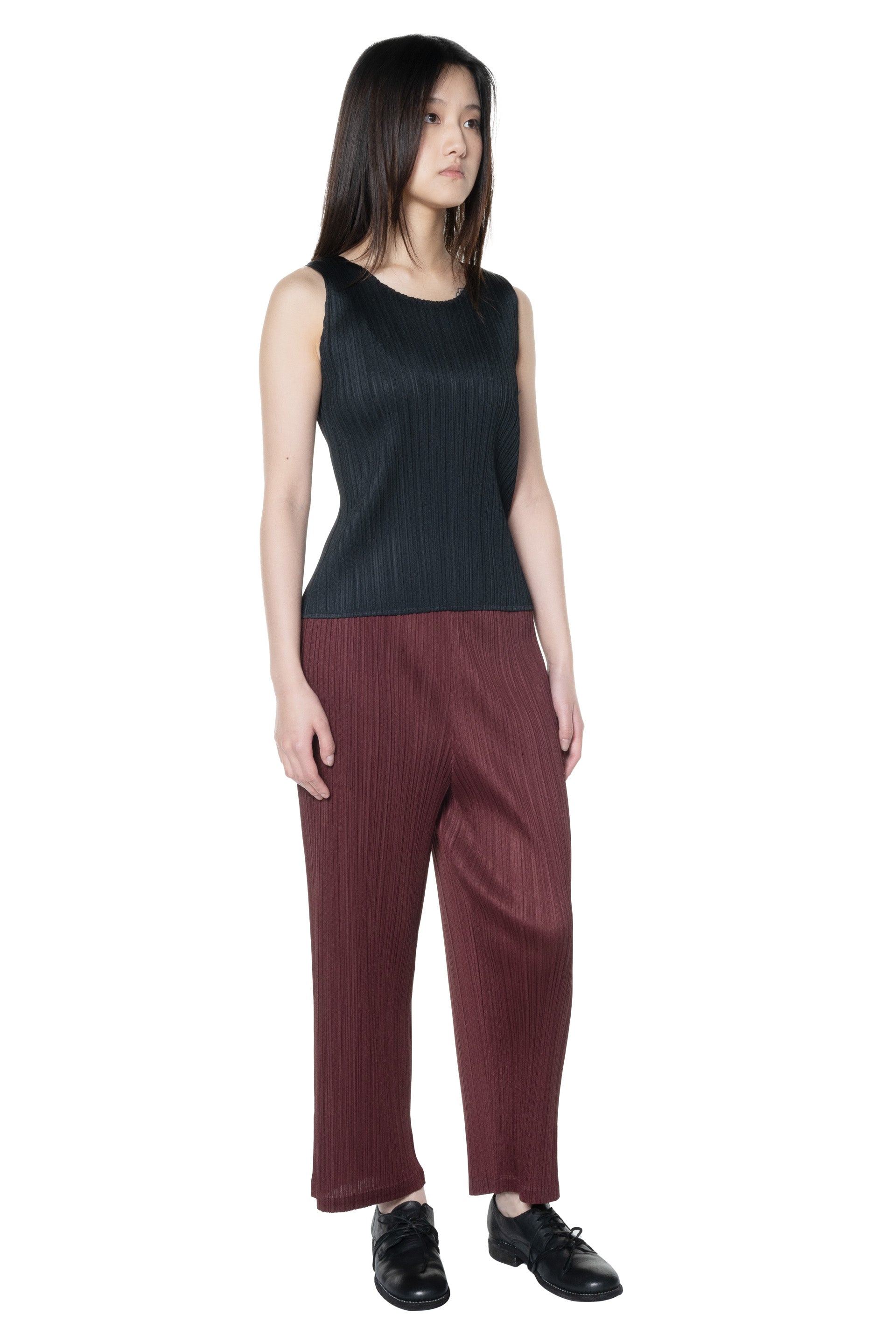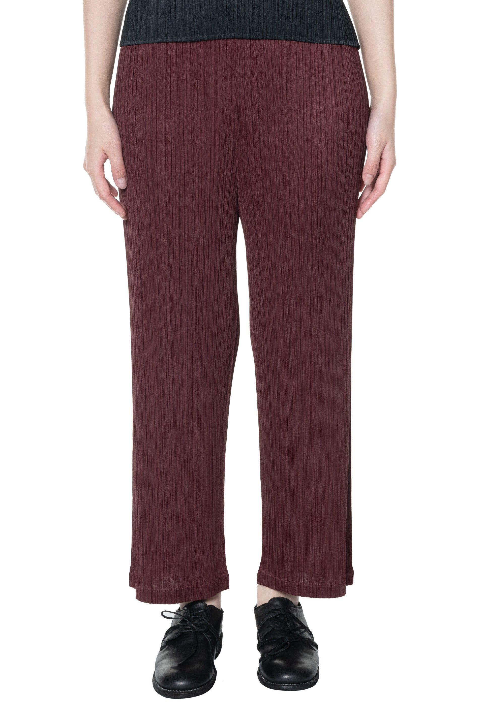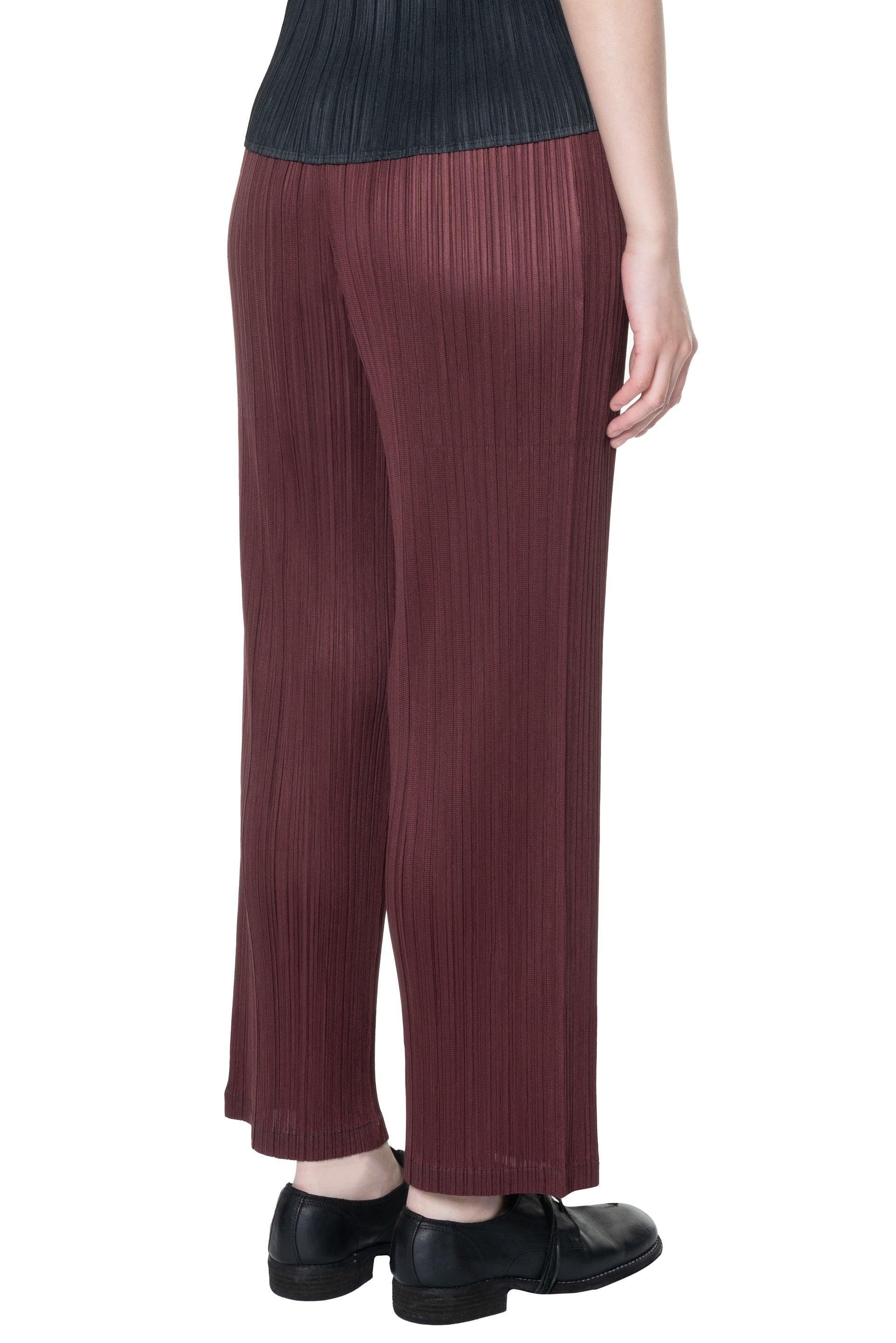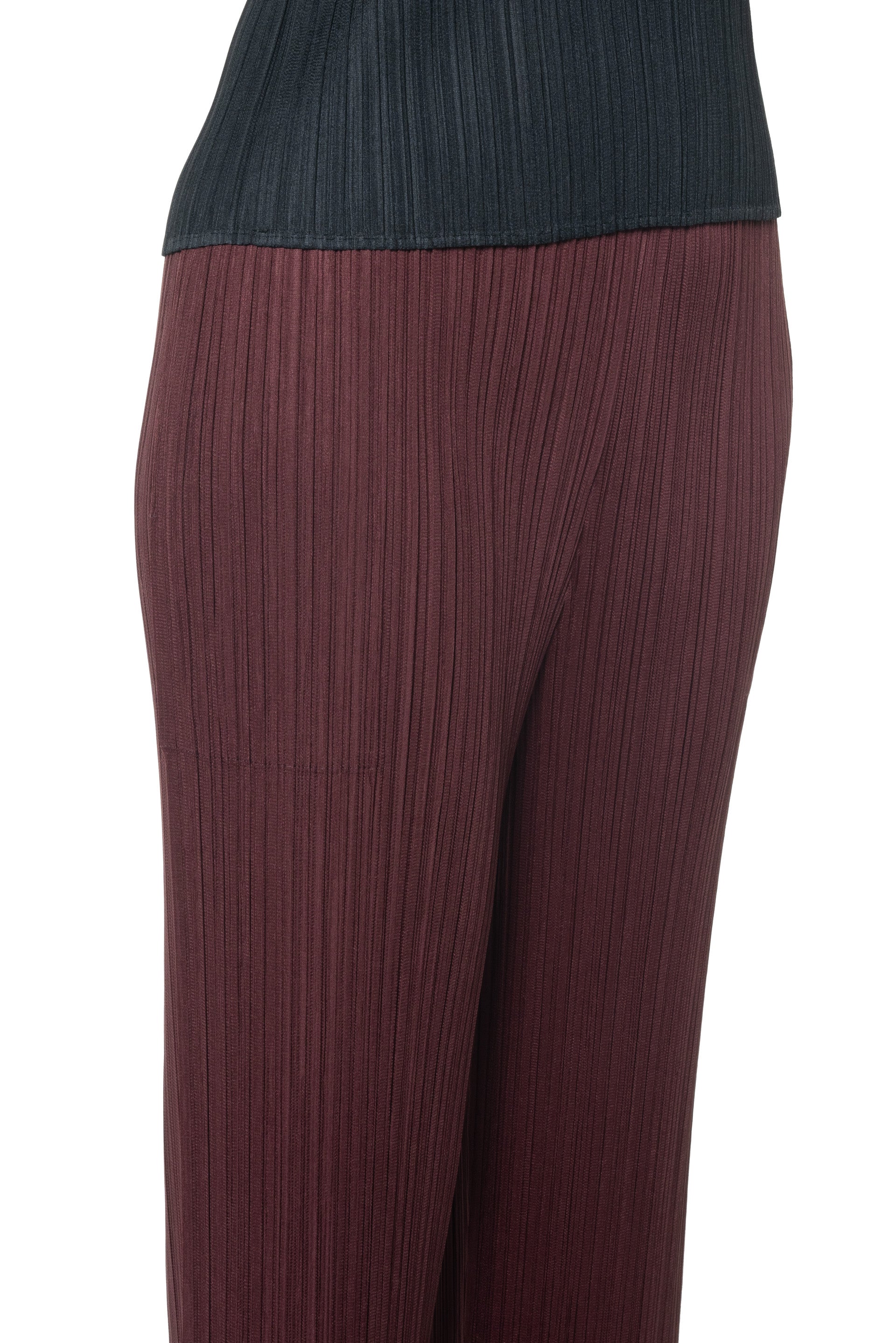 Pleats Please is crafted from a single thread, then creases are added after the clothes have been sewn into shape offering a combination of convenience, comfort and coolness. Pleats Please designs are simple with a strong silhouette as seen with the MC February Trousers Purple.