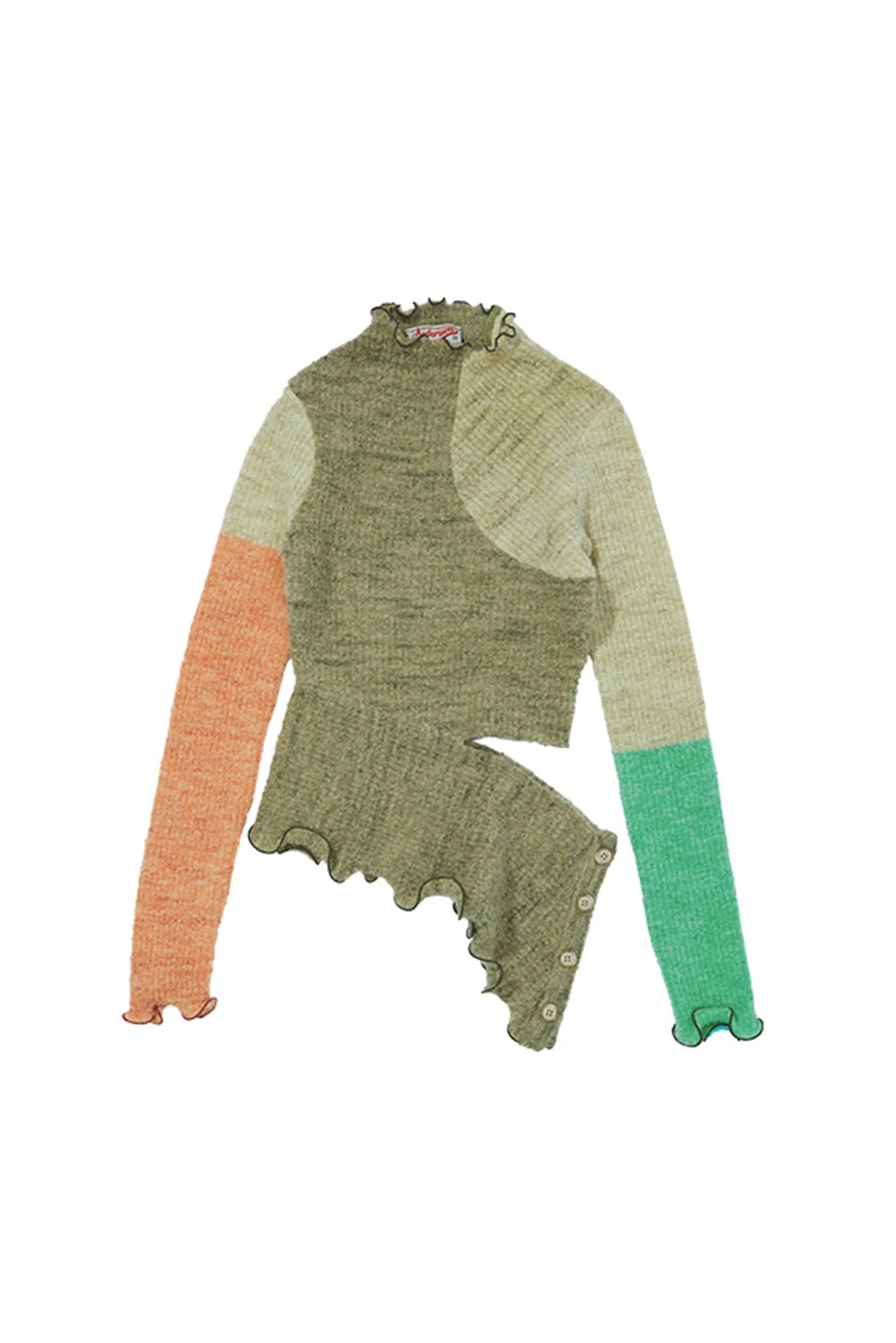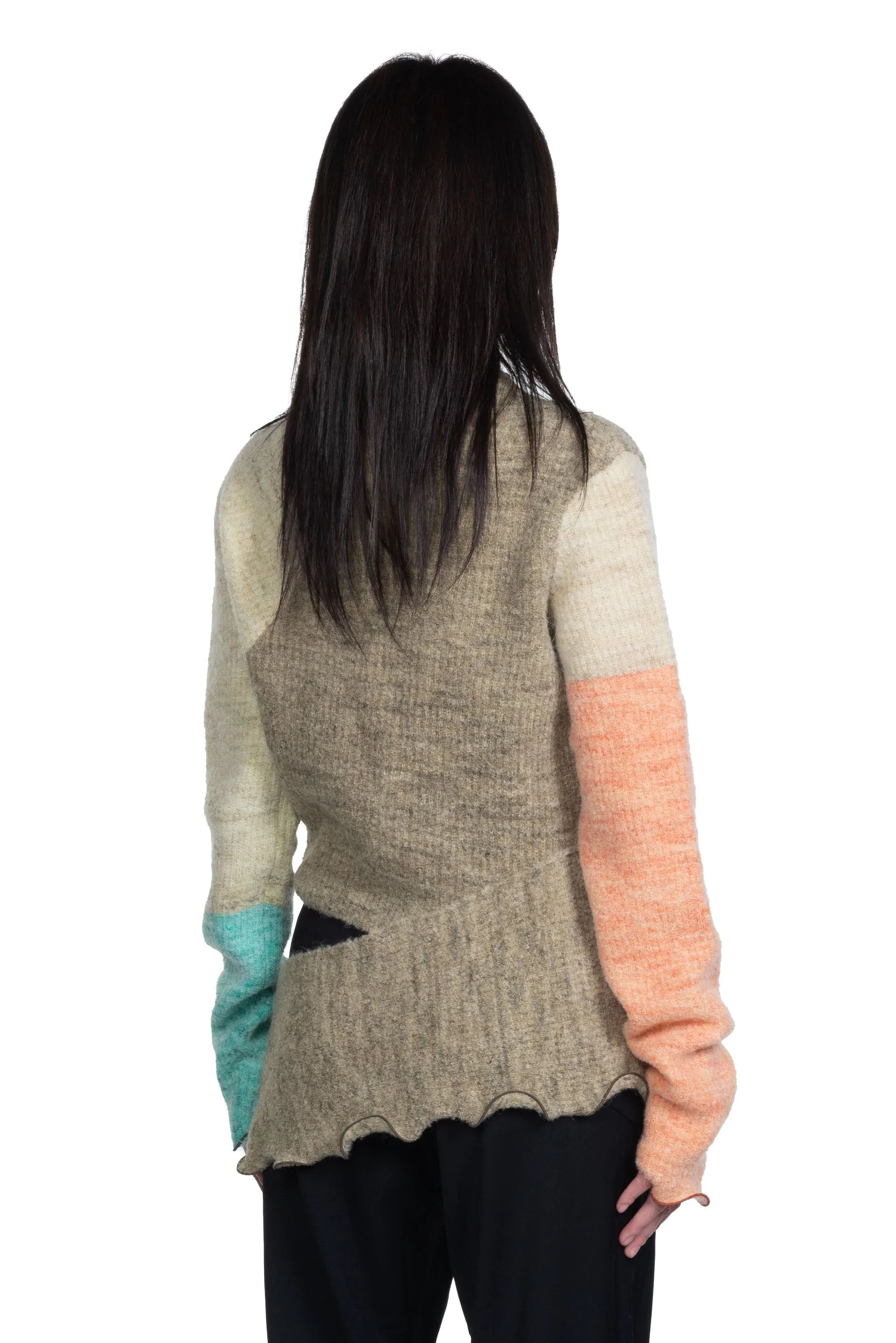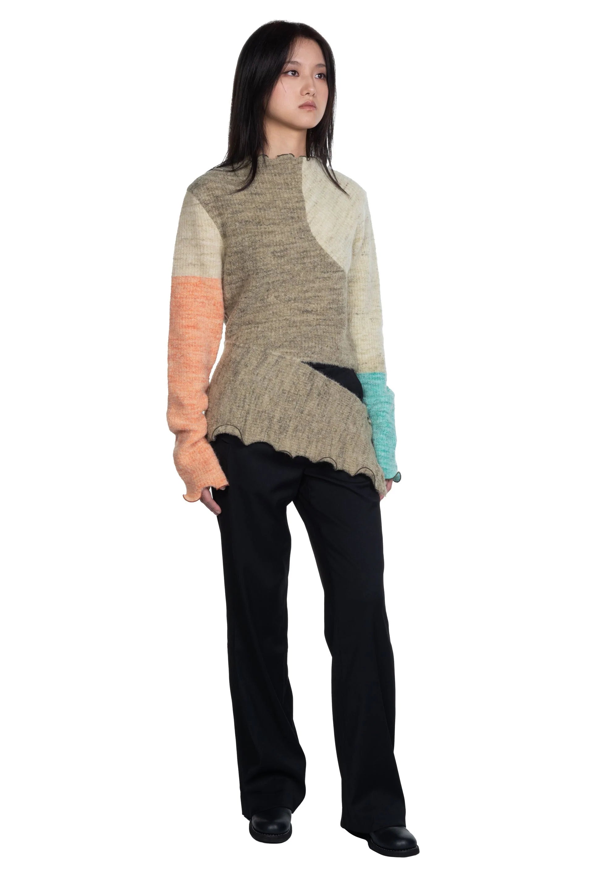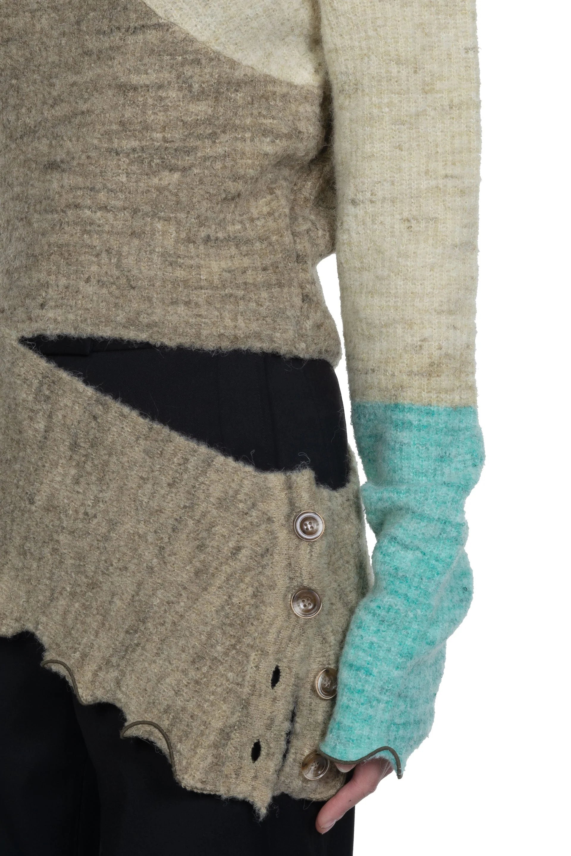 Andersson Bell Melani Color Block Knit Top. Fitted silhouette with cut-out detail. Colour blocking with wool and alpaca blended fabric.