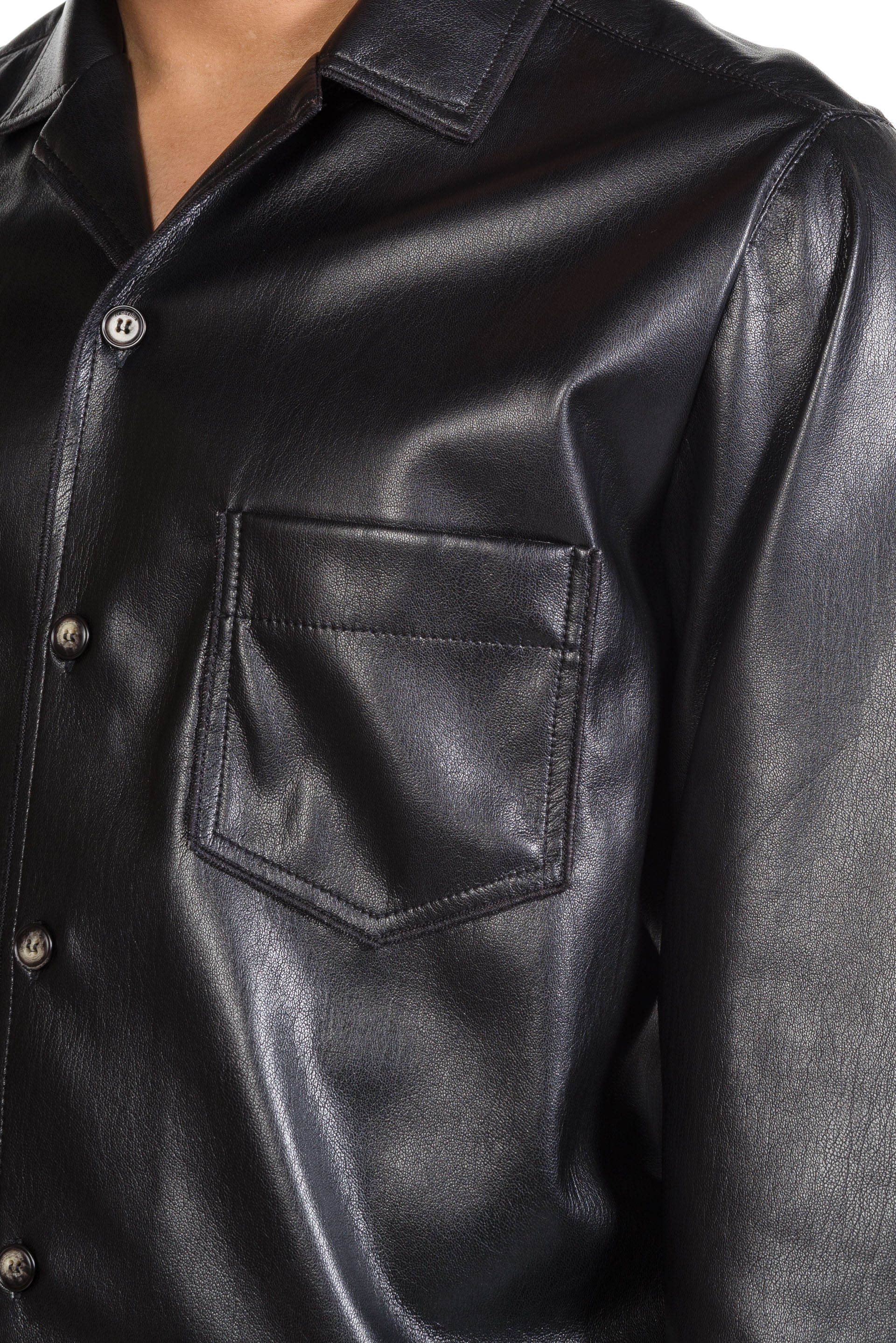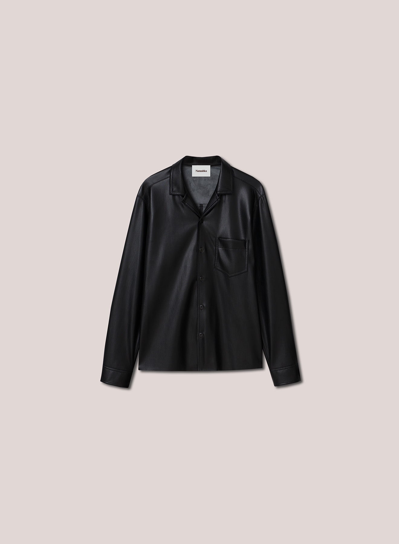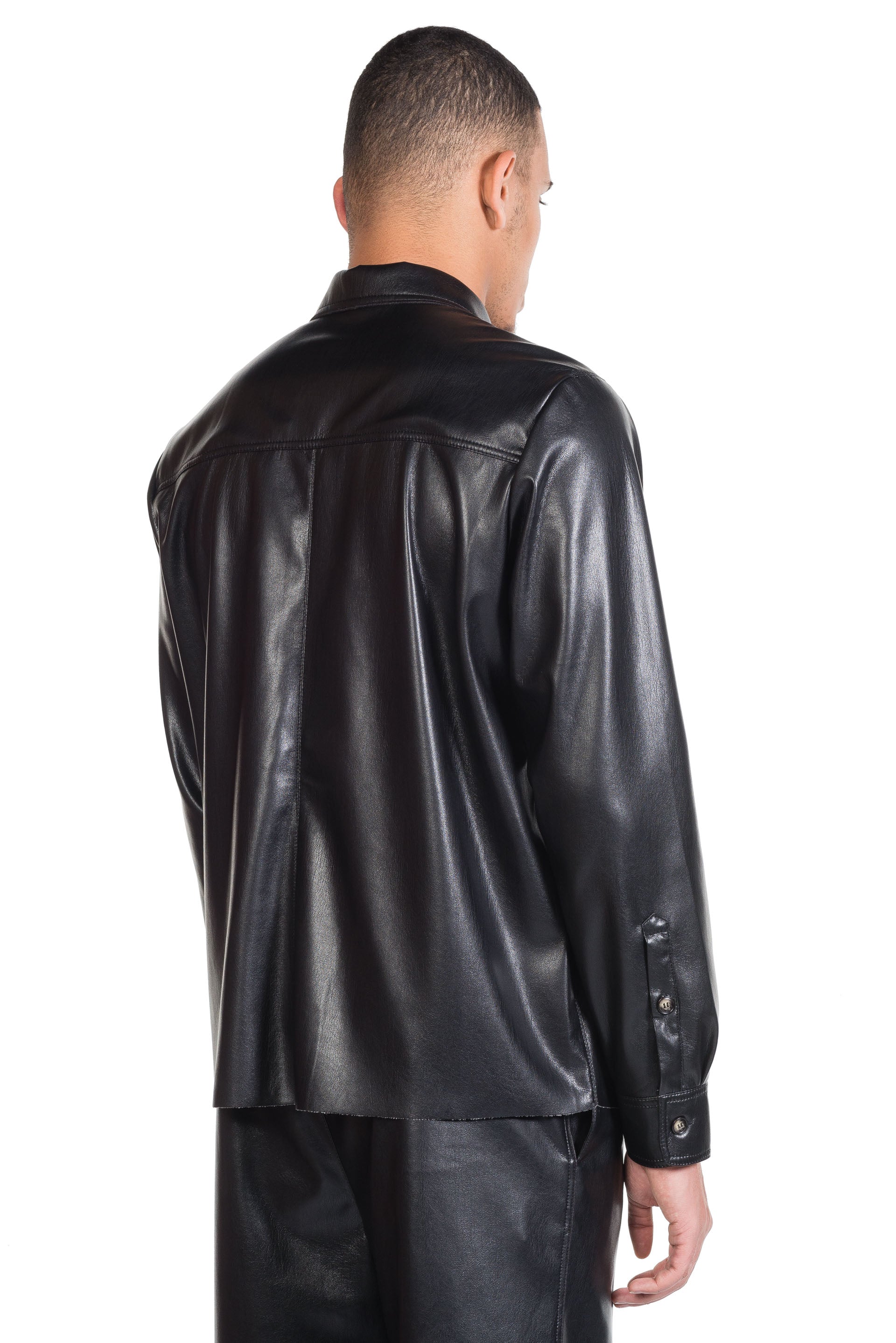 Meno Vegan Leather Long-Sleeve Shirt Black