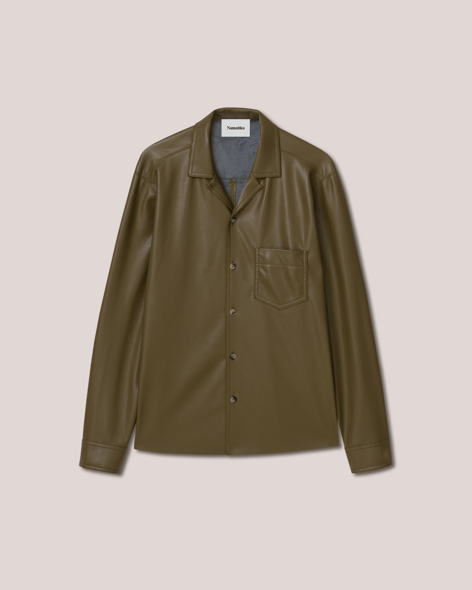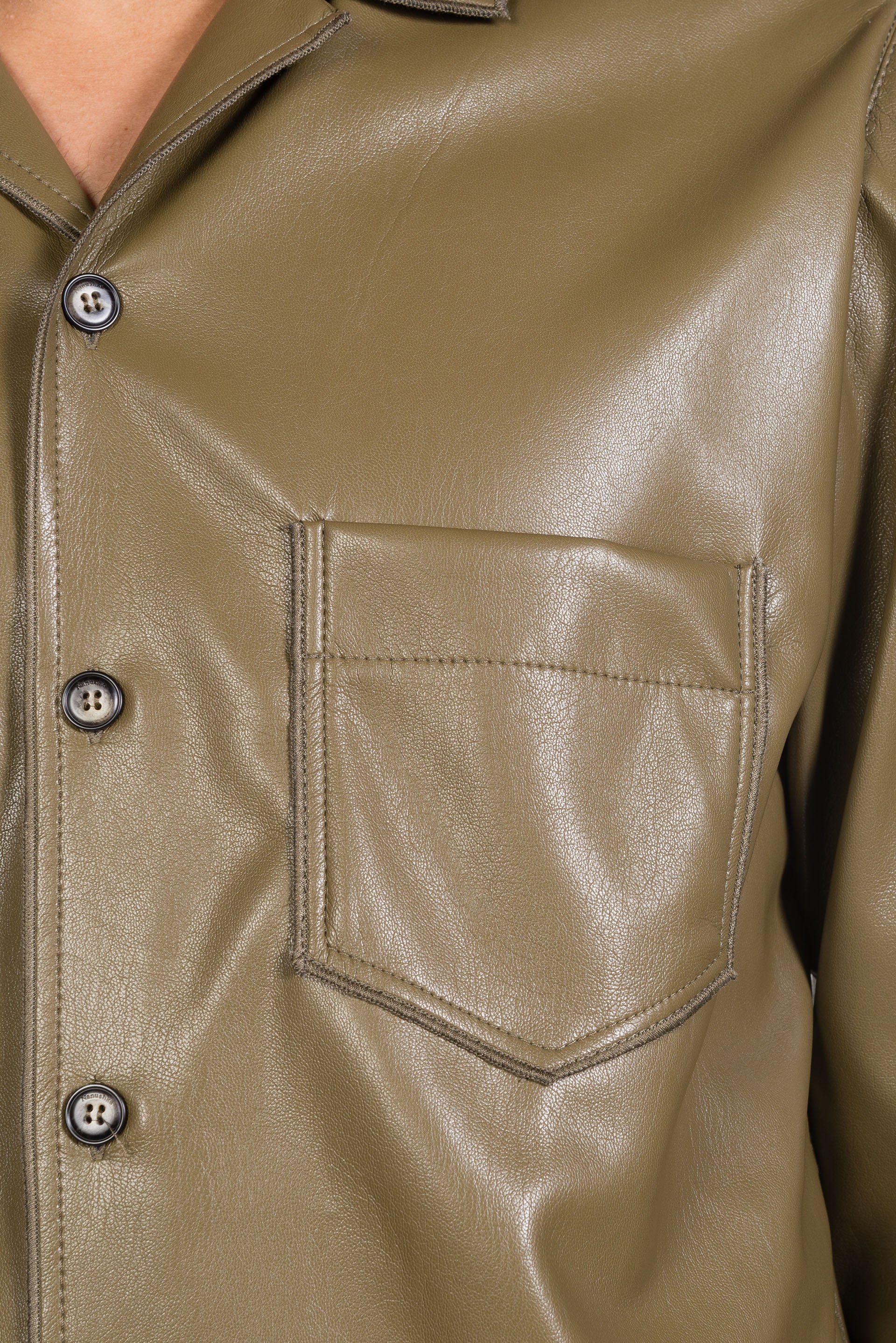 Meno Vegan Leather Long-Sleeve Shirt Olive