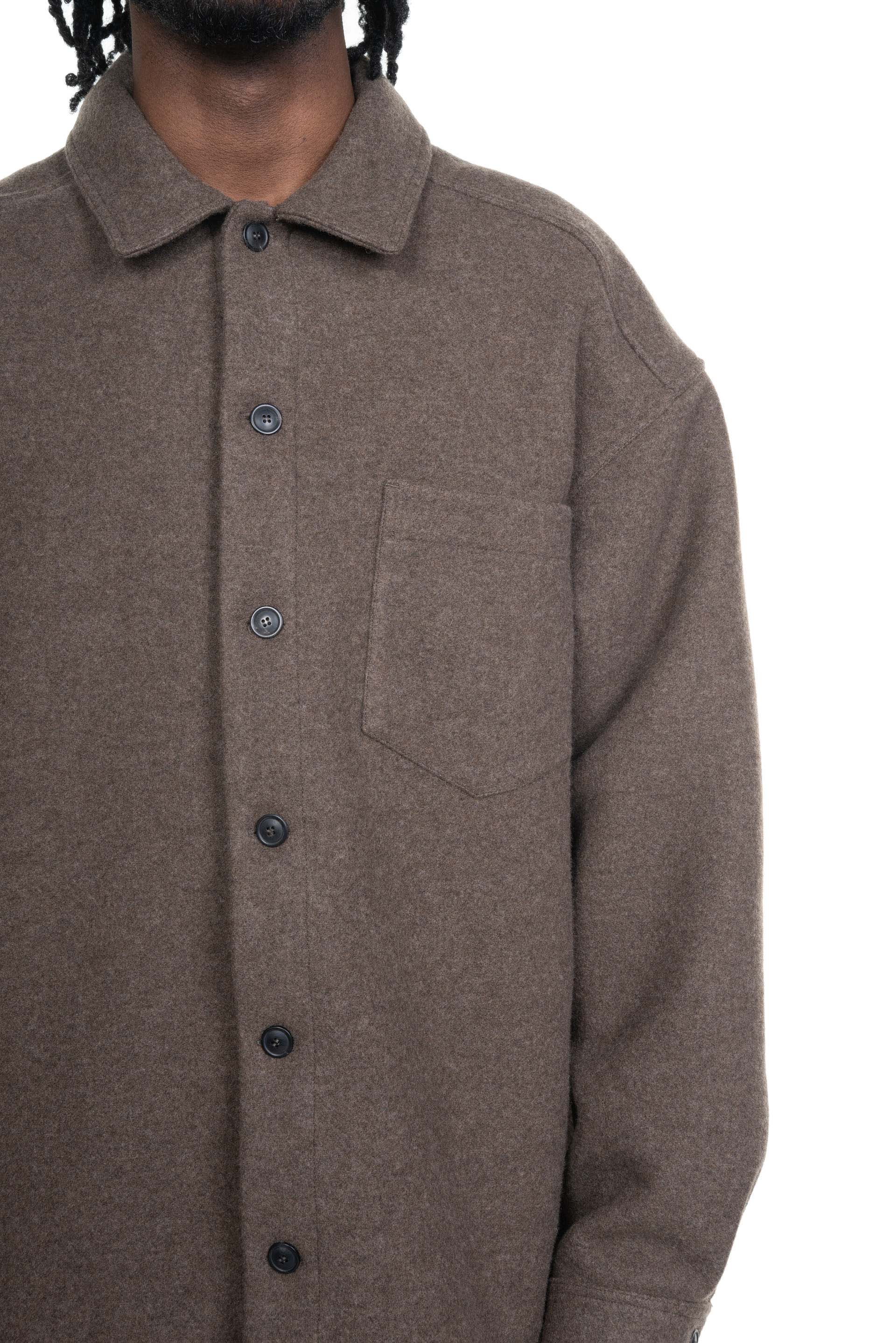 Minimal shirt in wool flannel from Lownn. Button closure at front and cuffs. Two side pockets at Chest. Long sleeves. Oversize fit.