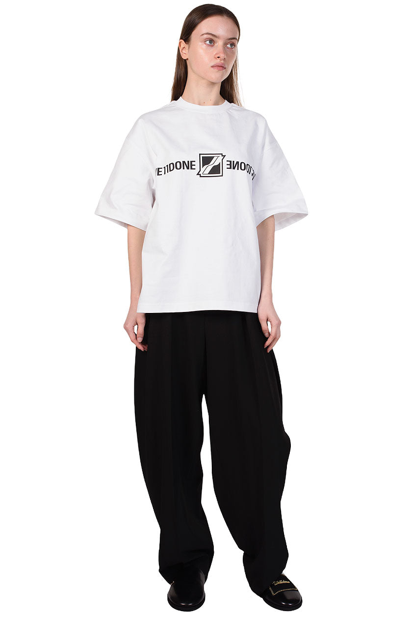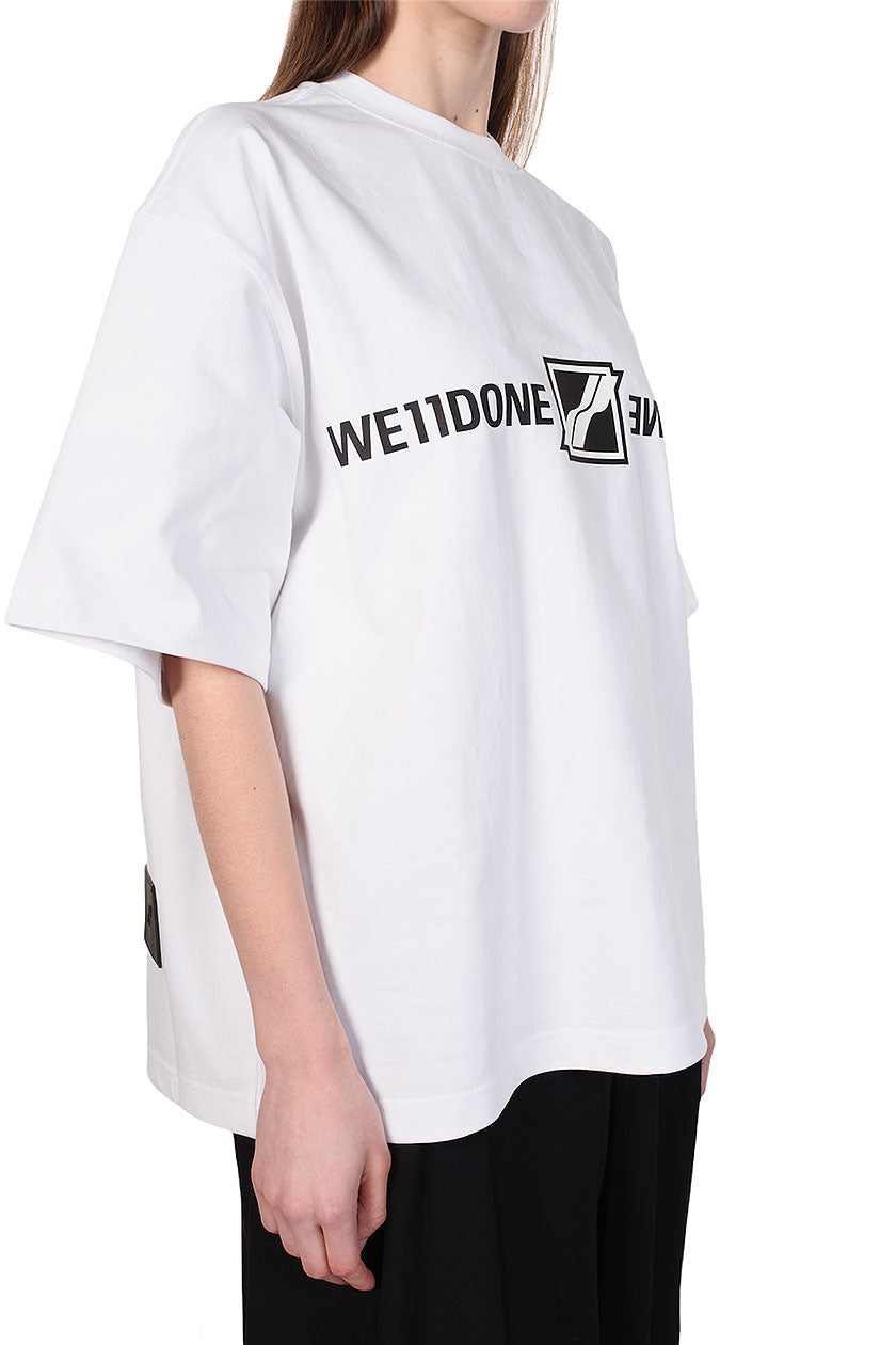 We11done merges late 1990s and early 2000s aesthetics creating a feeling of futurity. Functional, sportive, and sleek, We11done’s versatile designs refine classic elements into contemporary lifestyle pieces as seen with the Mirrored Logo T-shirt.