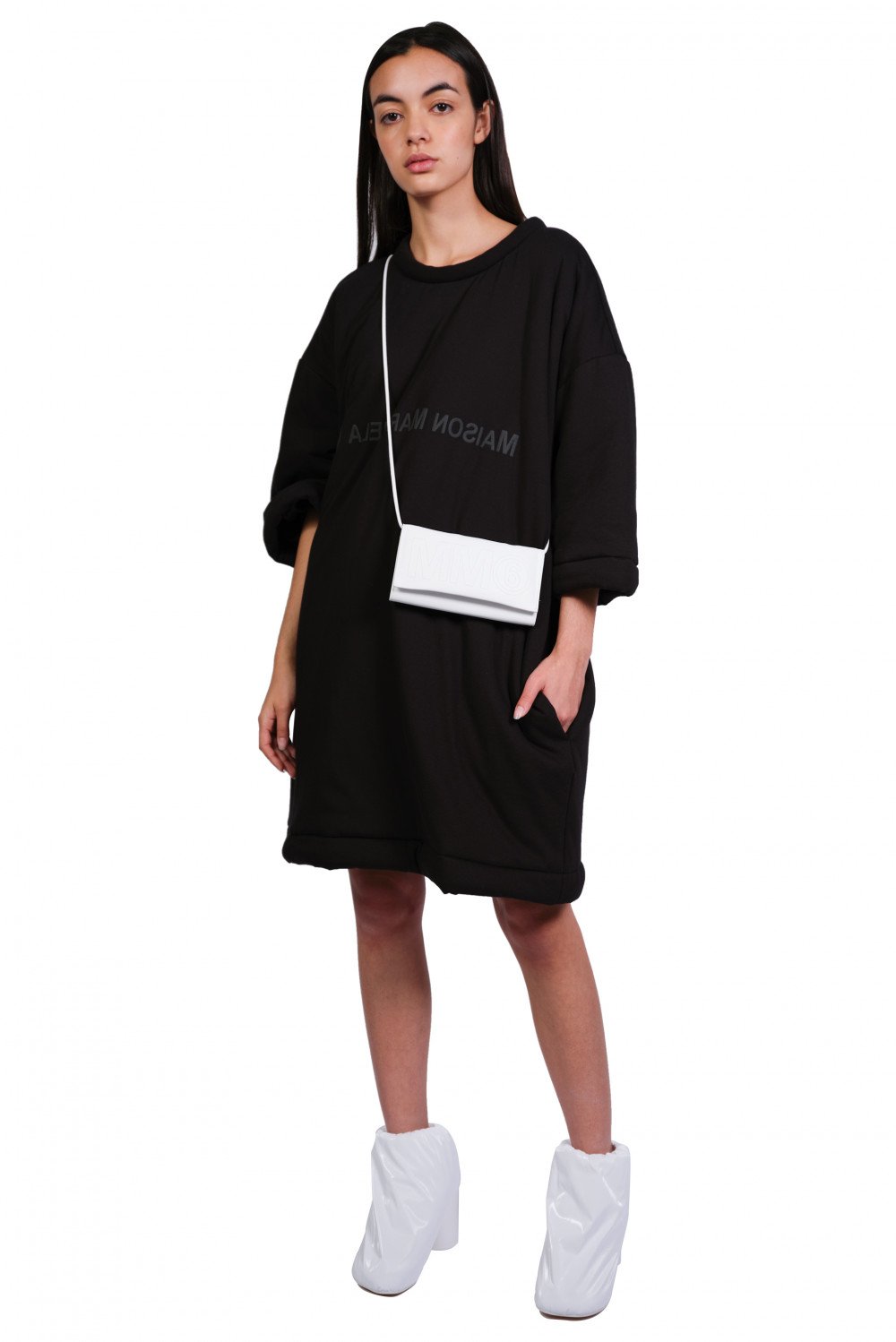 MM6 is known for its sporty ready-to-wear and off-beat accessories, more casual, street-inspired take on the Maison's intellectual approach to luxury as seen in the Black Padded Dress.