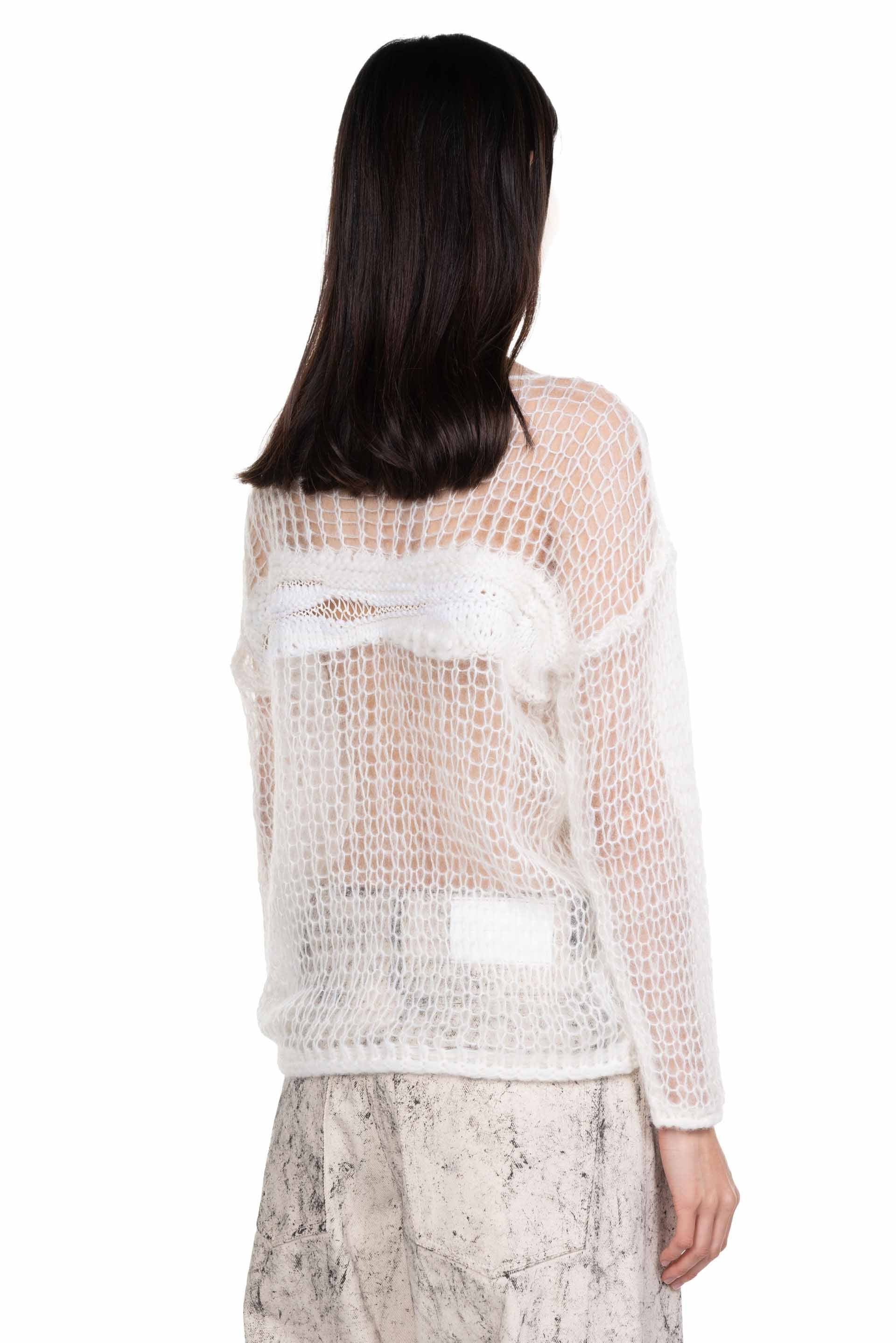 Mesh Jumper from Isabel Benenato in White. Long sleeves. Boat neck. Boxy fit. Soft and Light Mohair Alpaca knit.