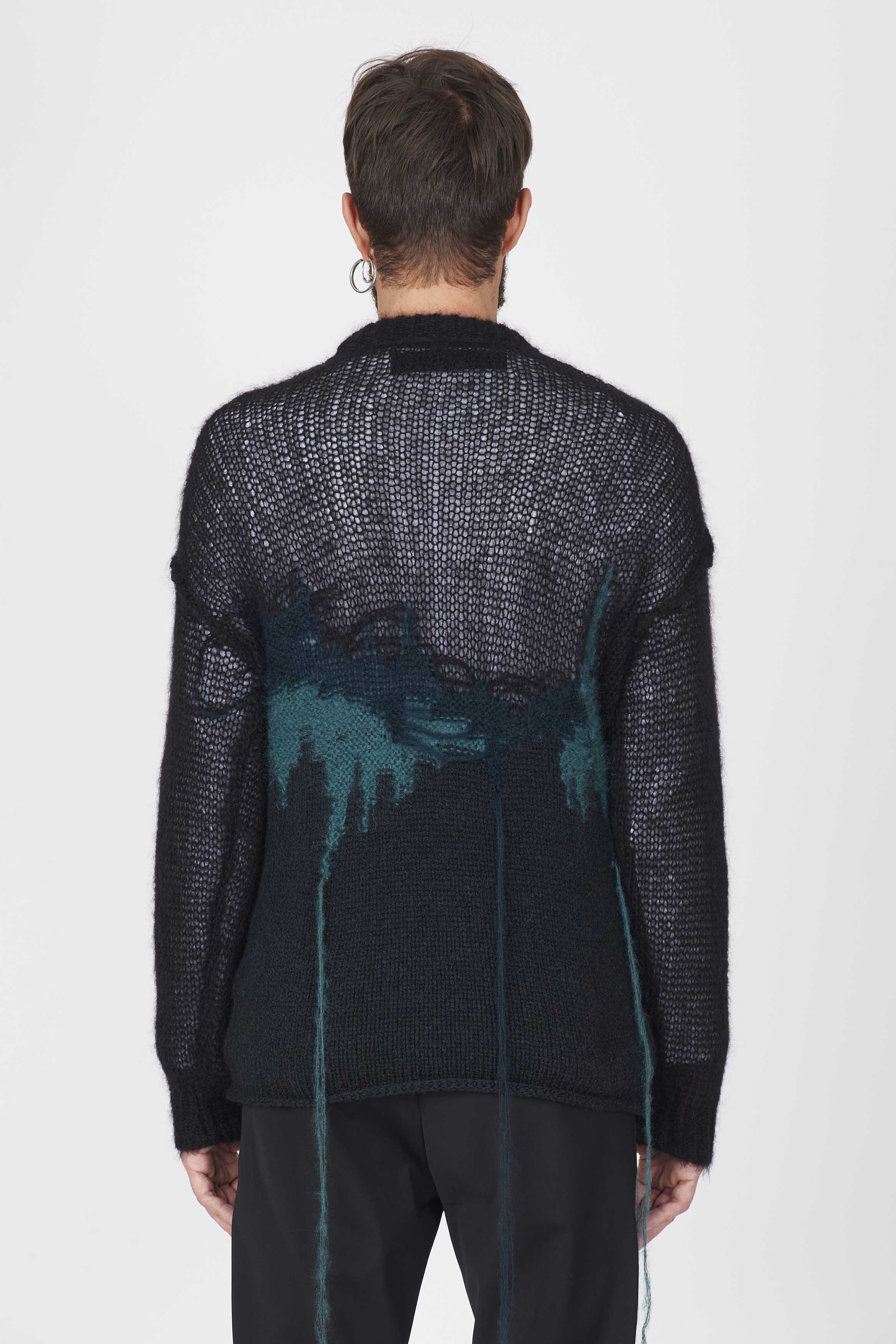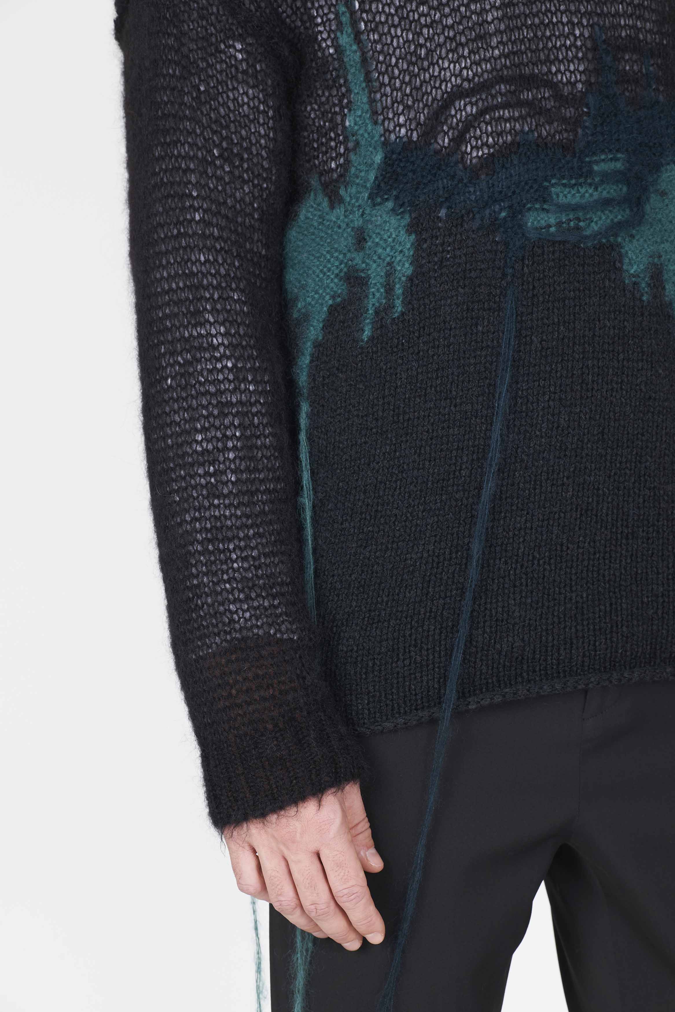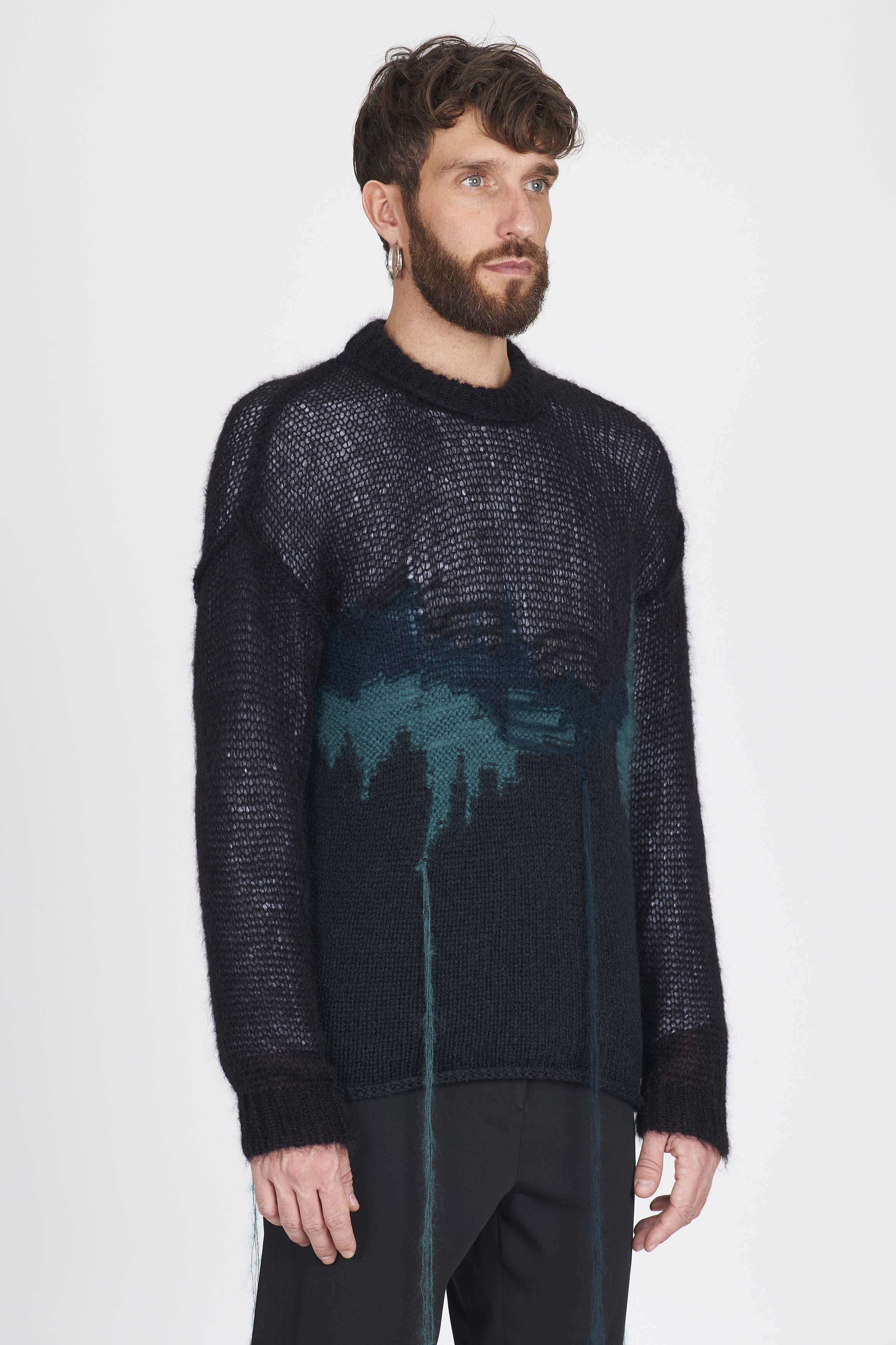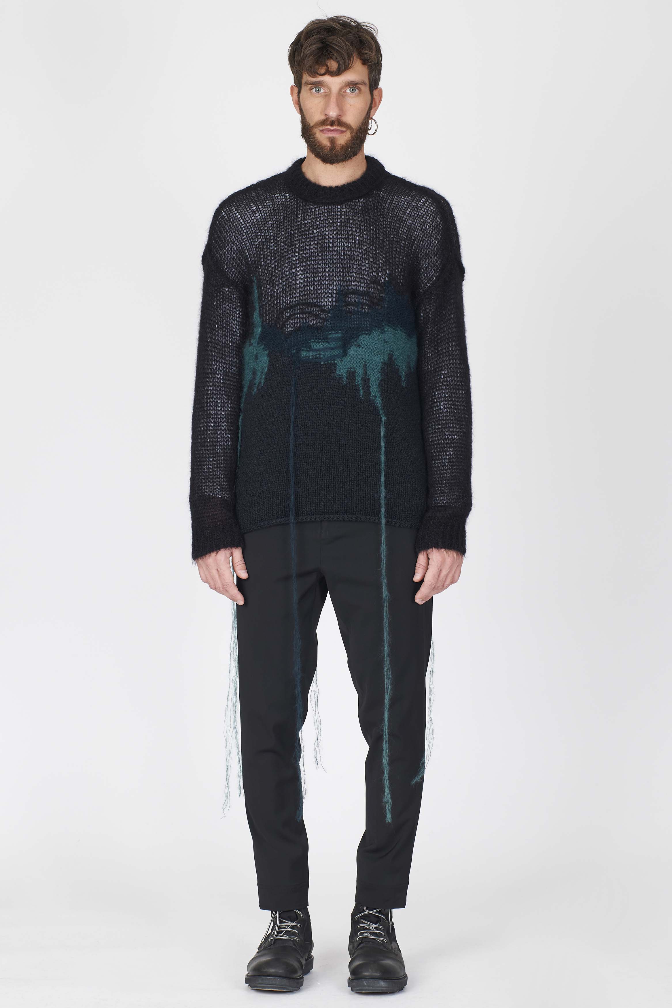 Isabel Benenato Mohair Contrast Panel Knit Red. Long sleeves. Floating strings details at front and back.Colour: Black/Petroleum. Composition: Mohair