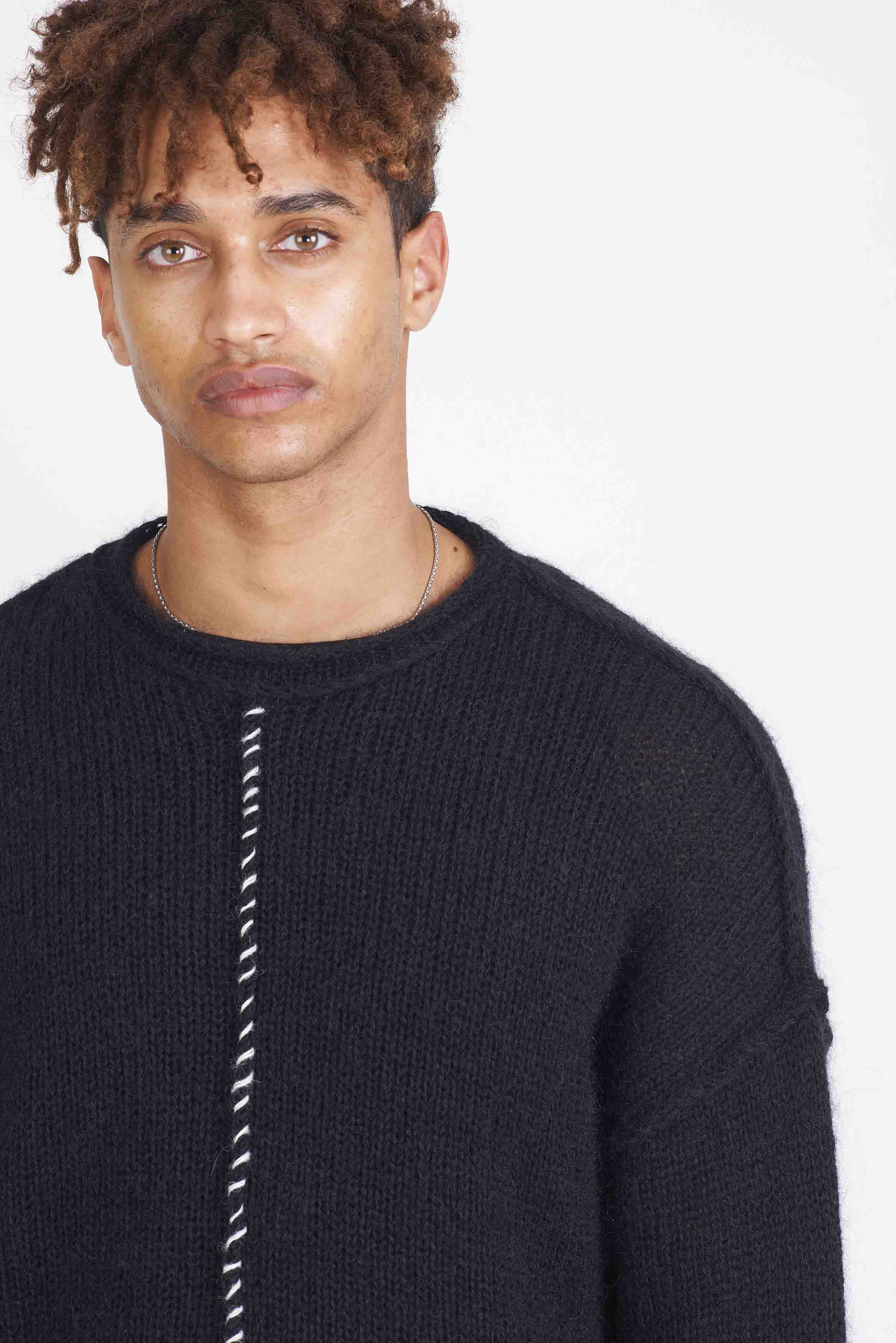Mohair sweater from Isabel Benenato in Black. Long sleeves. Round neck. Boxy fit. Light knit. Signature thread detailing at front.