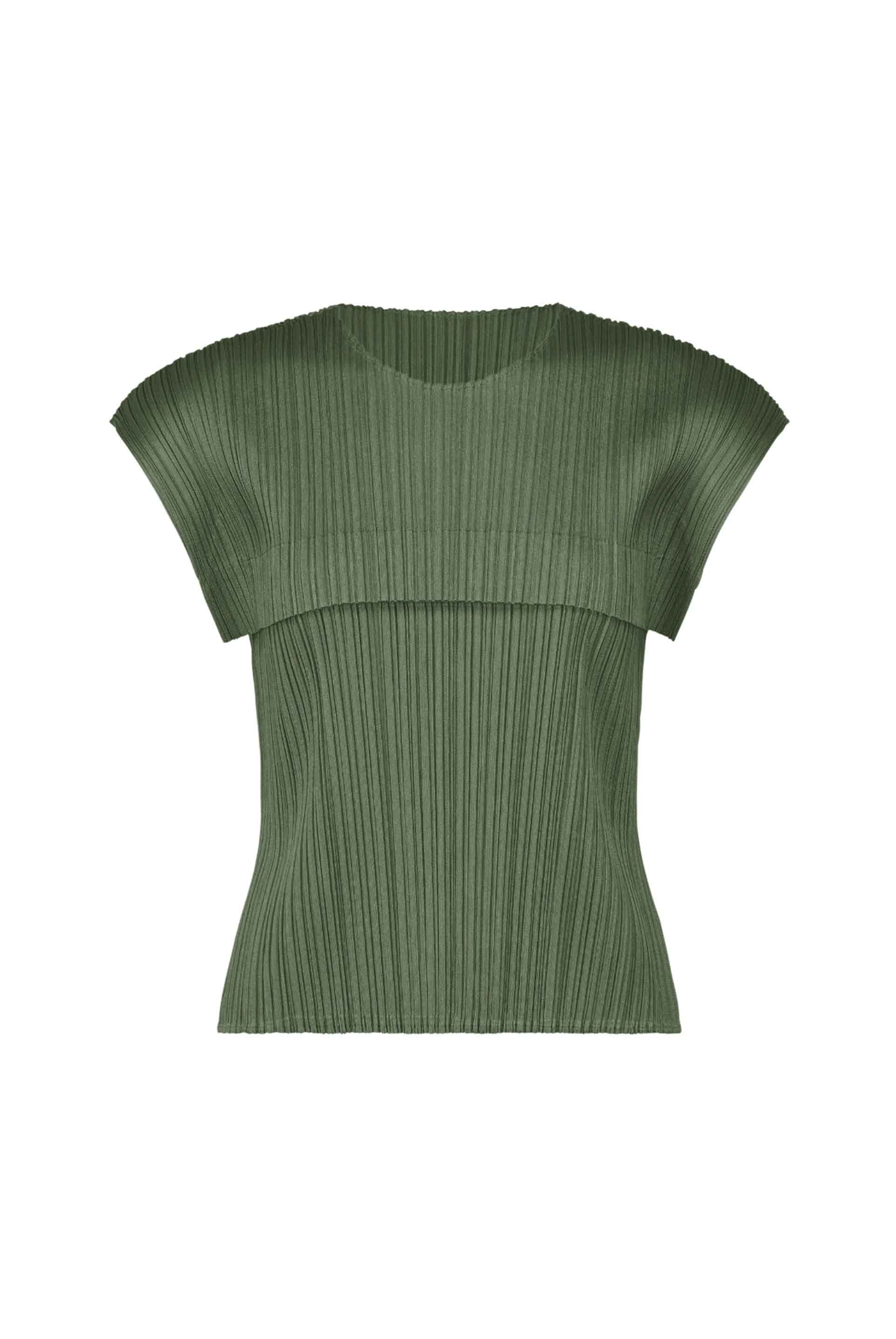 Pleats Please is crafted from a single thread, then creases are added after the clothes have been sewn into shape offering a combination of convenience, comfort and coolness. Pleats Please designs are simple with a strong silhouette as seen with the Monthly Colors June Top Moss Green.