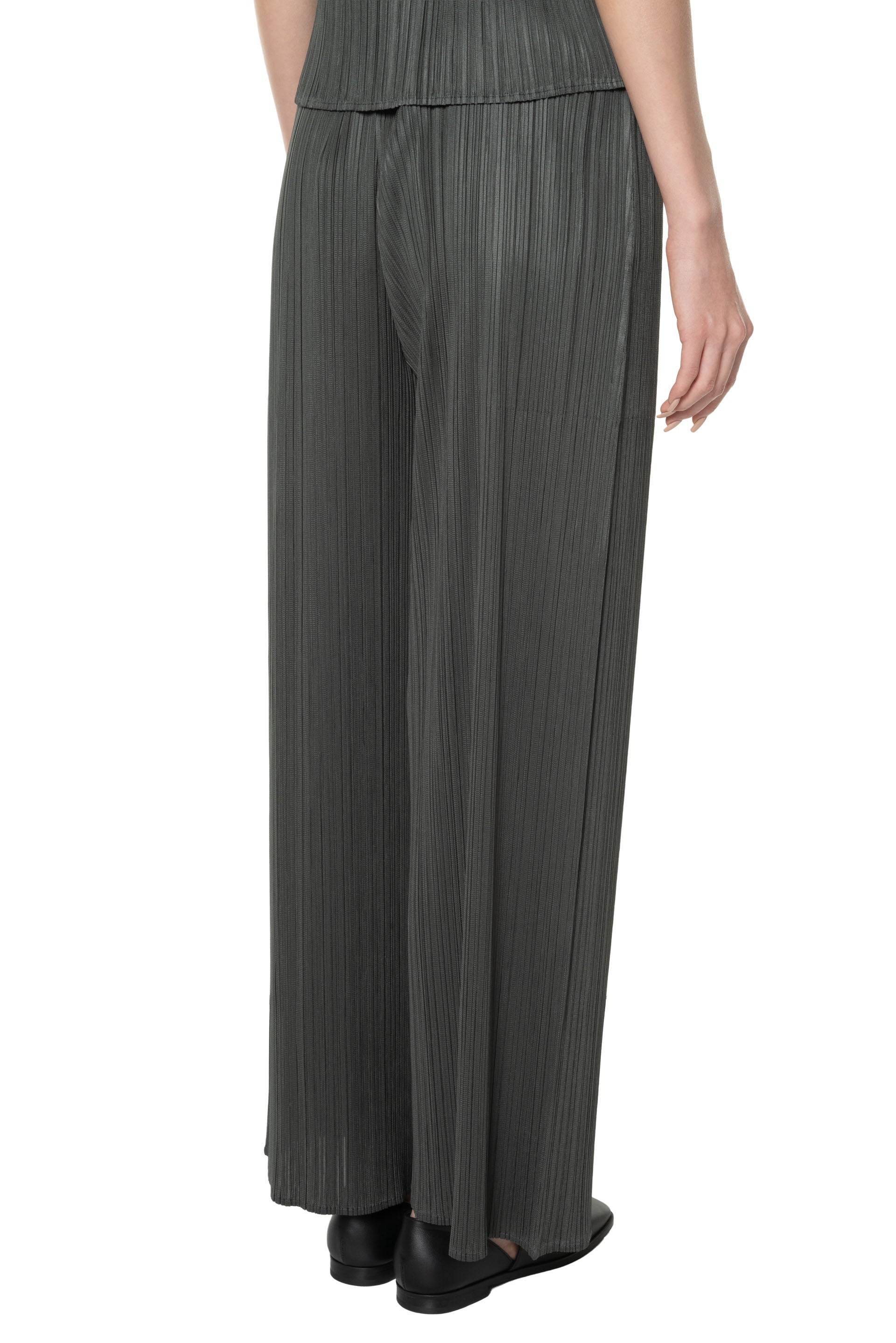 Pleats Please is crafted from a single thread, then creases are added after the clothes have been sewn into shape offering a combination of convenience, comfort and coolness. Pleats Please designs are simple with a strong silhouette as seen with the Monthly Colors June Trousers Charcoal Grey.