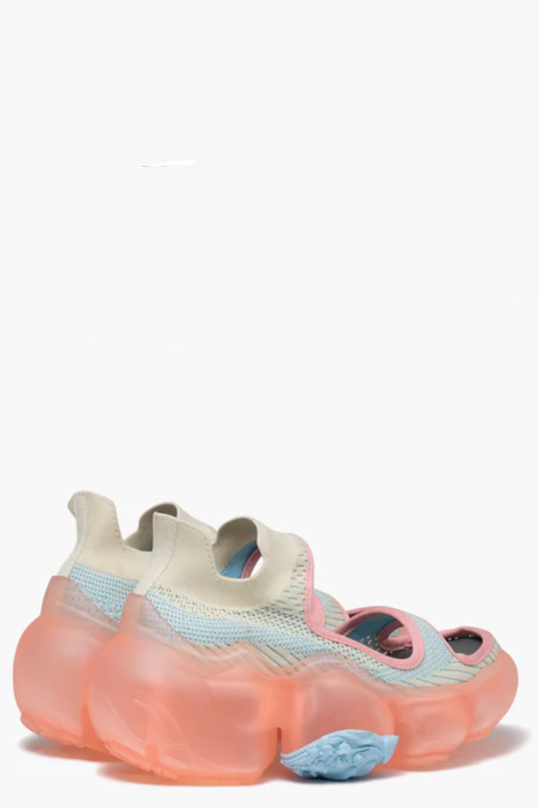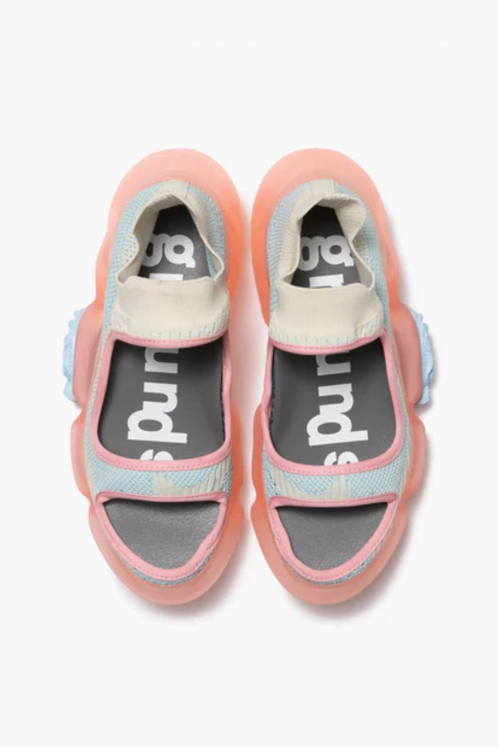 Grounds translates the pulse of Japanese youth into bold shoe design as seen with the Moopie AS1 Sandal Cream Sky / Frost Pink. A fresh summer colourway and sandal style. Mikio Sakabe as once again created footwear that looks as if you have stepped on something huge and gel-like