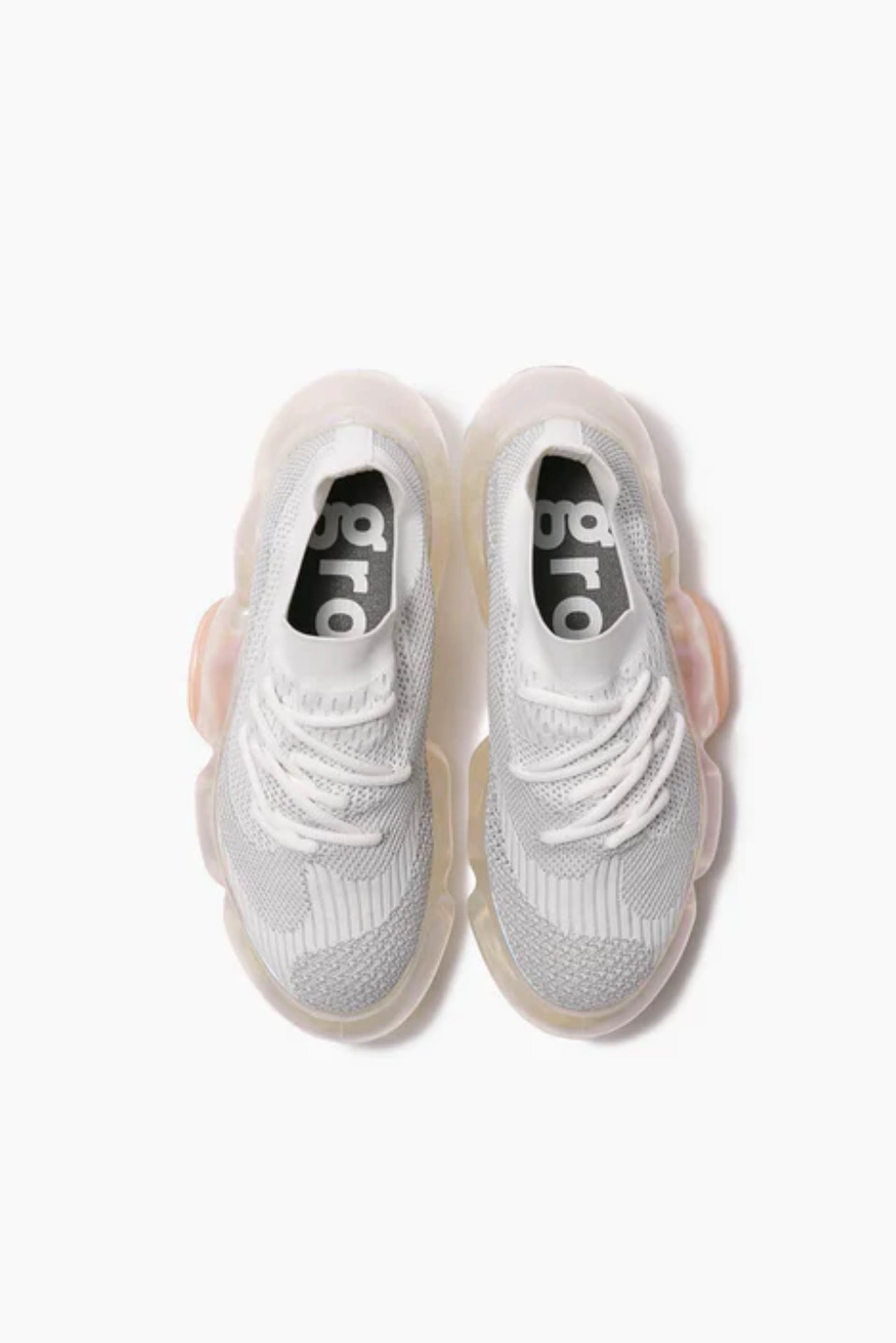 Grounds translates the pulse of Japanese youth into bold shoe design as seen with the Moopie Aurora White Gray. Footwear that looks as if you have stepped on something huge and gel-like The outsole, which is supposed to be sturdy to support the entire body, is deliberately made to look fluid and soft, a design that tickles the playful spirit. The rubber parts on the outside add an accent to the design. The upper has a delicate finish in contrast to the voluminous soles. The sharp shape, the nape of the foot, and the gentle slope from the toe to the heel give the impression of an elegant and slender style that is not found in existing sneakers. The asymmetrical layout of the shoe holes and pattern on the knit upper is a continuation of the abstract design of the outsole. Despite the thick soles, the entire sole is designed to support the body and provide adequate cushioning to prevent walking fatigue.
