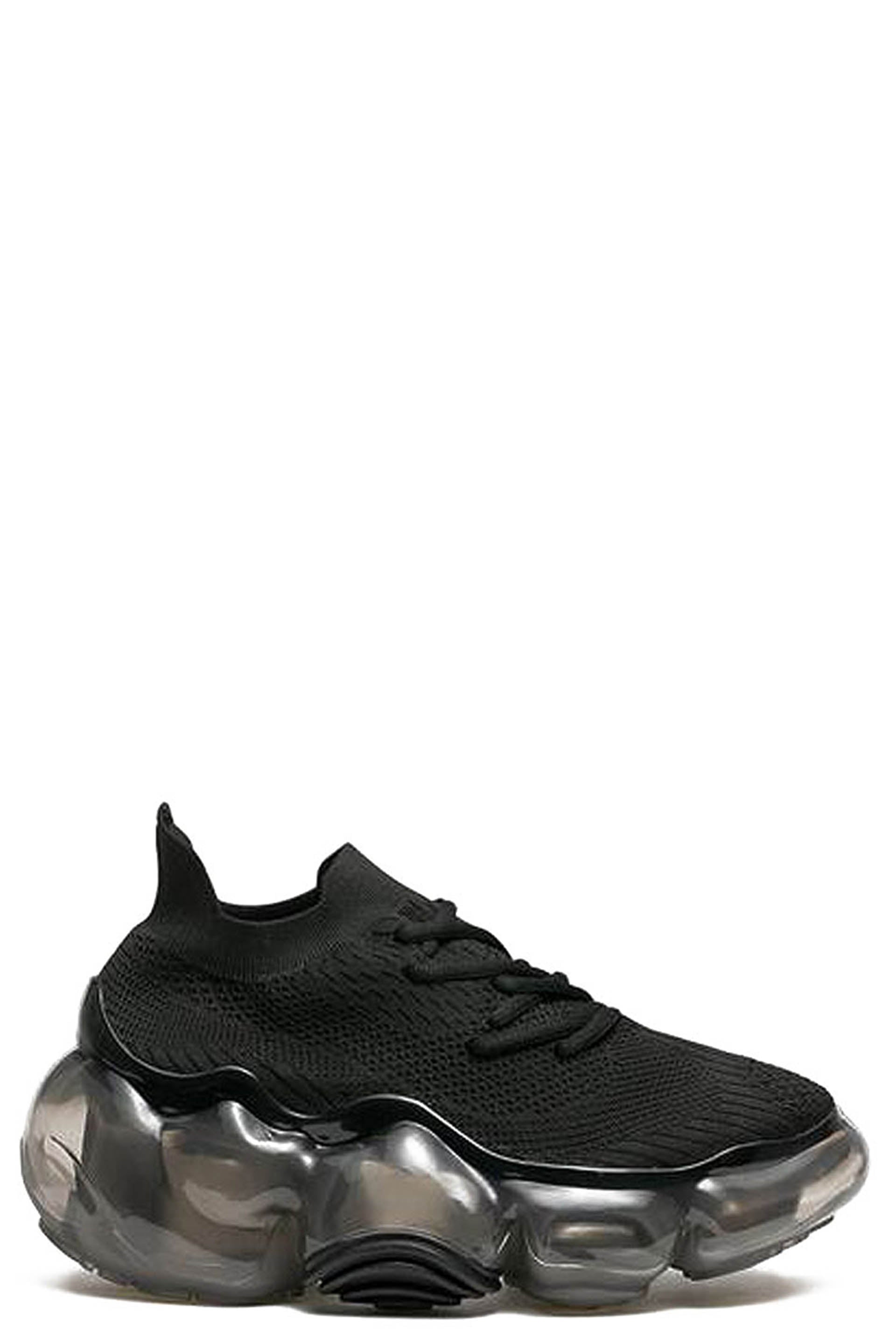 Grounds translates the pulse of Japanese youth into bold shoe design as seen with the Moopie Black Black. Footwear that looks as if you have stepped on something huge and gel-like The outsole, which is supposed to be sturdy to support the entire body, is deliberately made to look fluid and soft, a design that tickles the playful spirit. The rubber parts on the outside add an accent to the design. The upper has a delicate finish in contrast to the voluminous soles. The sharp shape, the nape of the foot, and the gentle slope from the toe to the heel give the impression of an elegant and slender style that is not found in existing sneakers. The asymmetrical layout of the shoe holes and pattern on the knit upper is a continuation of the abstract design of the outsole. Despite the thick soles, the entire sole is designed to support the body and provide adequate cushioning to prevent walking fatigue.