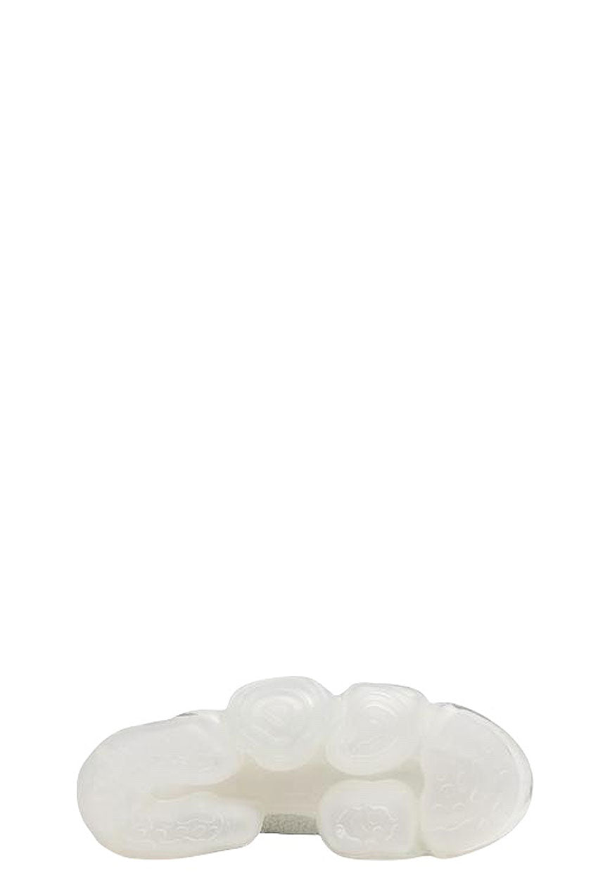 Grounds translates the pulse of Japanese youth into bold shoe design as seen with the Moopie White Gray Clear. Footwear that looks as if you have stepped on something huge and gel-like The outsole, which is supposed to be sturdy to support the entire body, is deliberately made to look fluid and soft, a design that tickles the playful spirit. The rubber parts on the outside add an accent to the design. The upper has a delicate finish in contrast to the voluminous soles. The sharp shape, the nape of the foot, and the gentle slope from the toe to the heel give the impression of an elegant and slender style that is not found in existing sneakers. The asymmetrical layout of the shoe holes and pattern on the knit upper is a continuation of the abstract design of the outsole. Despite the thick soles, the entire sole is designed to support the body and provide adequate cushioning to prevent walking fatigue.
