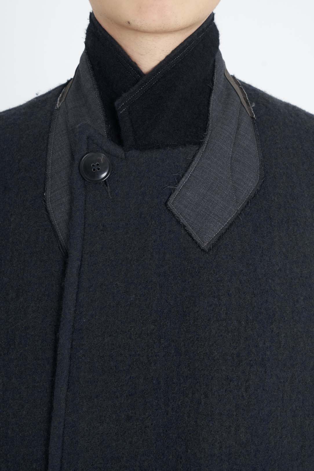 ATTEMPT reconstructs different styles and elements to create a new aesthetic system. By taking a more experimental approach to creation and production, which involves an understanding of the past and the current form of society, Attempt is creating an aesthetic form that is anchored in the present but different from it. It must ultimately be a product that cannot be defined as seen with the Multi Collar Coat.