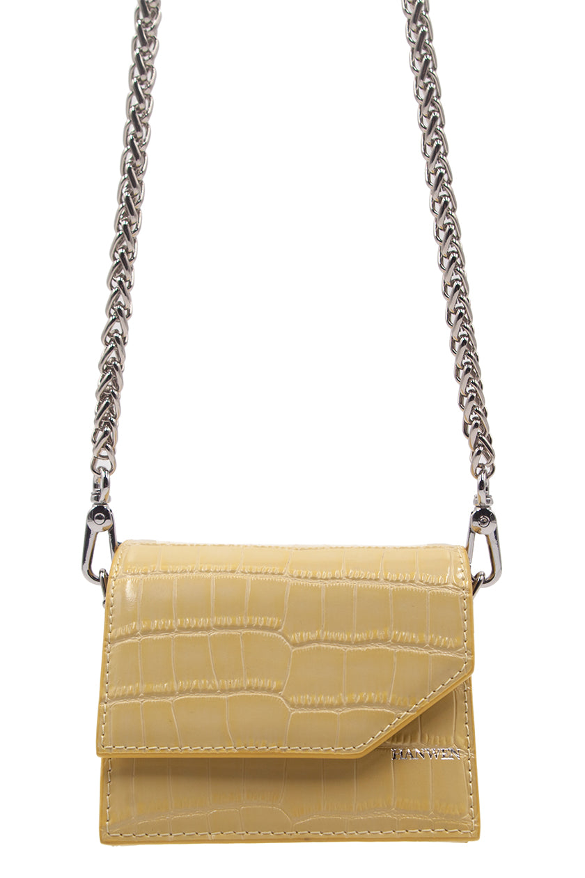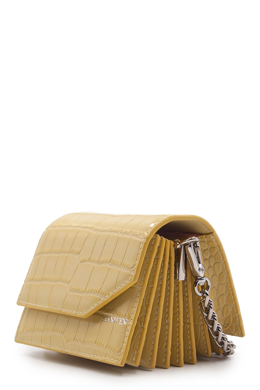 Colour: Lemon. Composition: 100% Leather. Dimension: approx. 4.2”x 2.5” x 3.5” (10.5cm x 6.35cm x 8.9cm), Cross-body chain length: approx. 41” (105cm).
