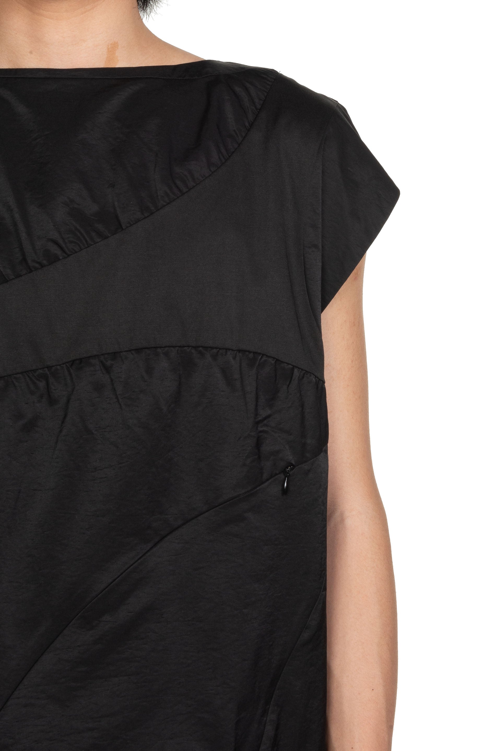 Cotton poplin T-shirt. Cotton-blend twill trim throughout. Panelled construction. Boat neck. Zip closure at back collar. Zip expansion panels at hem