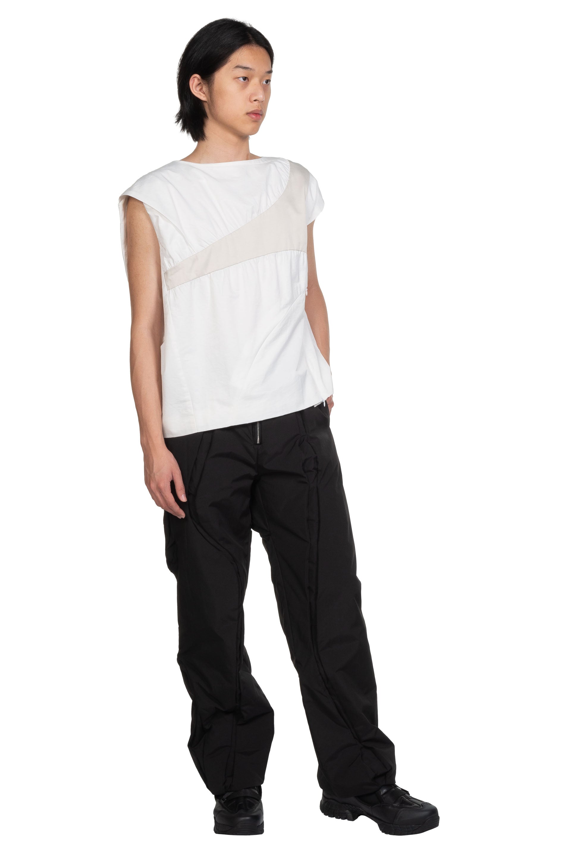 Aenrmous plays heavily with layers, asymmetry, deconstruction of pieces and detachable or adjustable elements. The brand understands trends while building something new and exciting as seen with the Nature Box Top White.