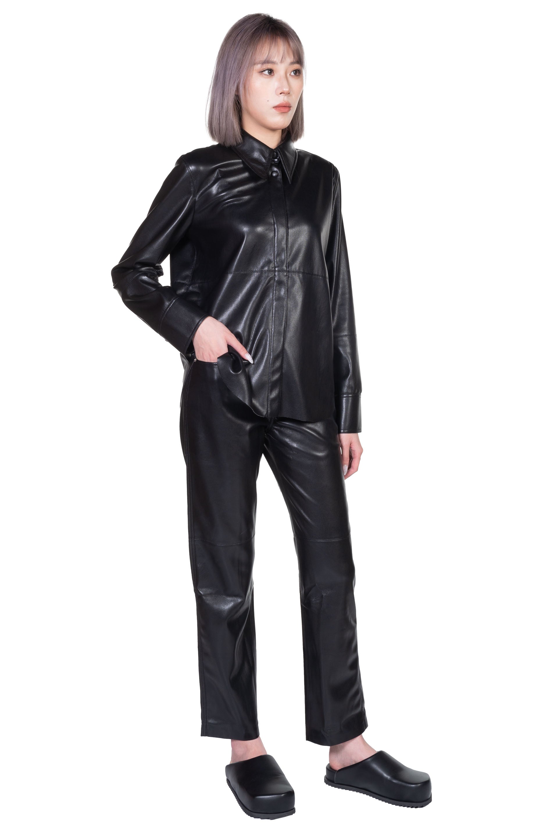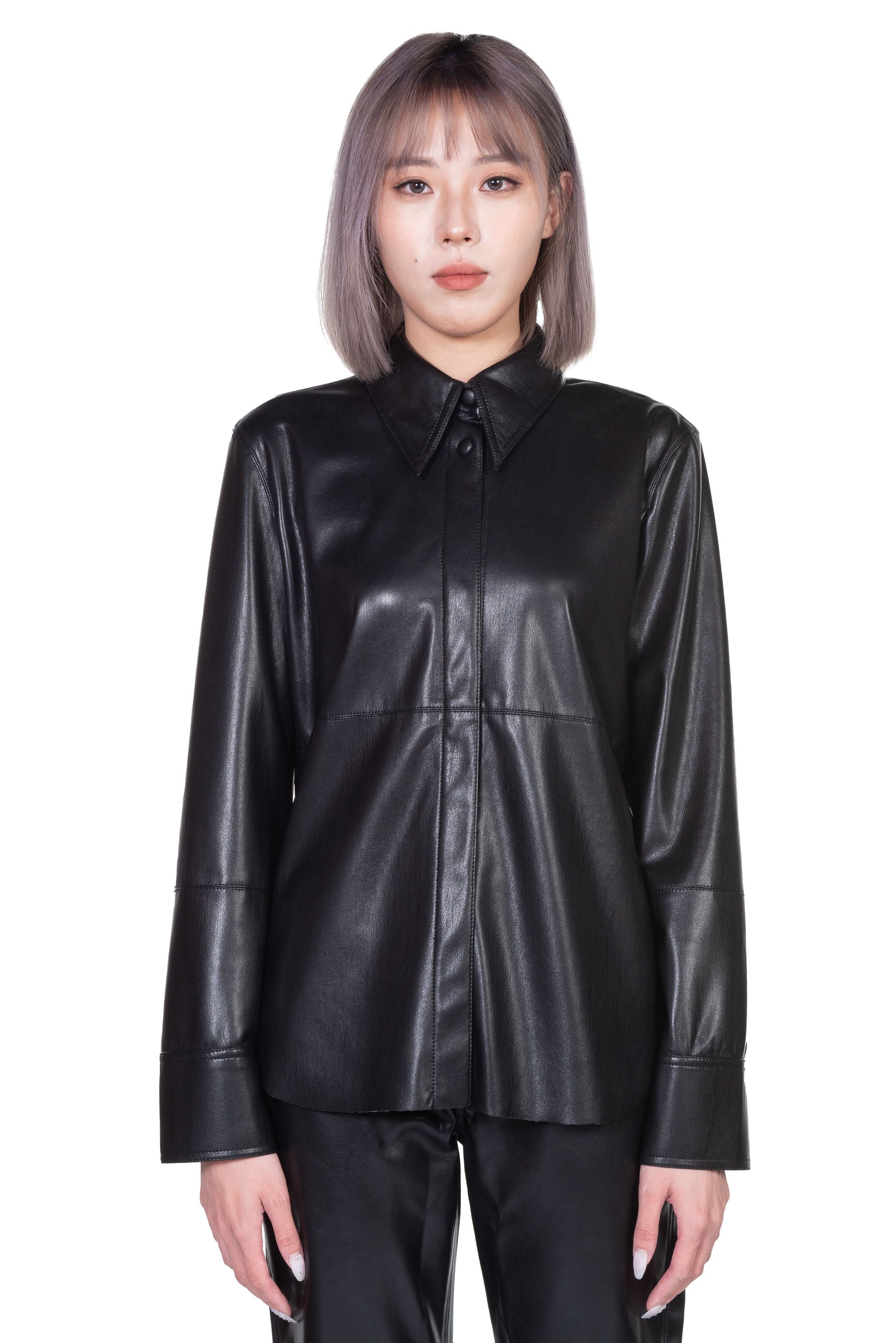 The Naum shirt is made from vegan leather - a key Nanushka fabric. It's cut for a relaxed fit and is minimally detailed for a clean finish.
