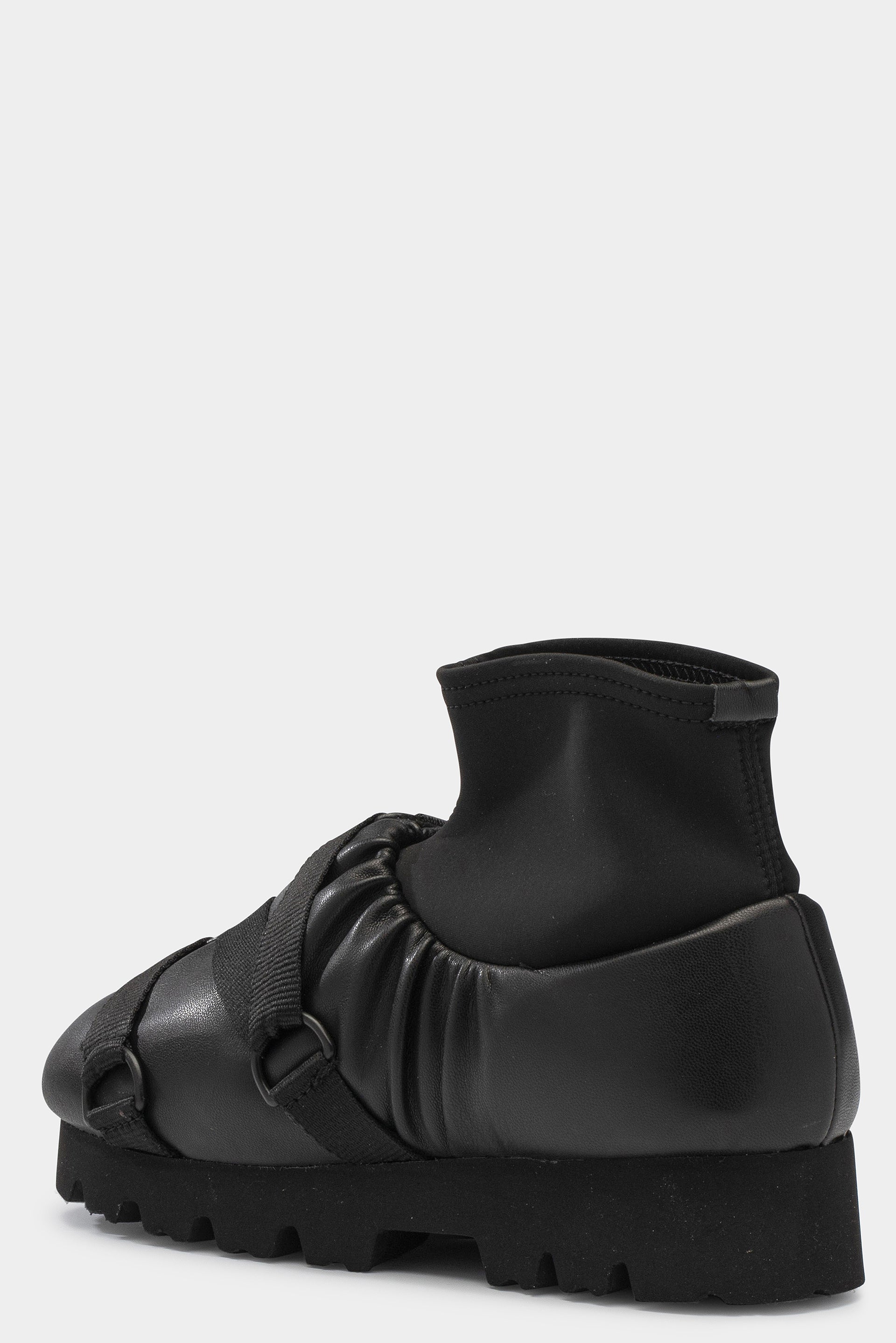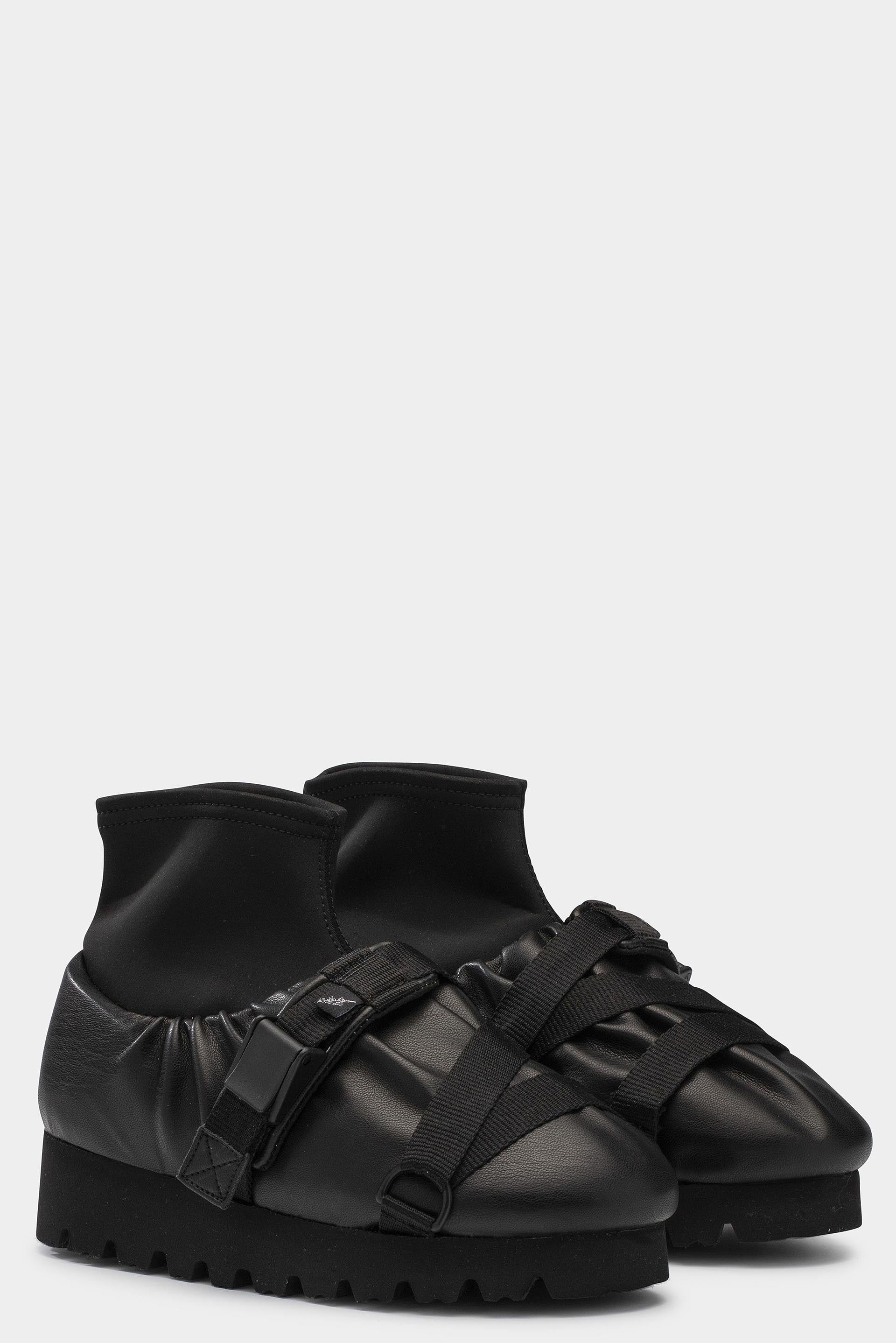 Unique and imaginative collections inspired by contemporary art, technology, and architecture. Named after the Japanese word for dream, YUME YUME makes futuristic footwear influenced by traditional Japanese silhouettes. They combine Japanese-inspired designs with a modern and futuristic approach to everyday footwear. YUME YUME aspires to create unique design pieces for all creative minds as seen with the Nawa Camp Mid Black. A vegan leather boot with a durable EVA outsole that gives the shoe a light feel. The neoprene sock and puffy upper creates a comfortable wear. Lightweight EVA outsole. Puffy warm upper. Perfect for traveling. Vegan materials. Anti-bacterial lining.