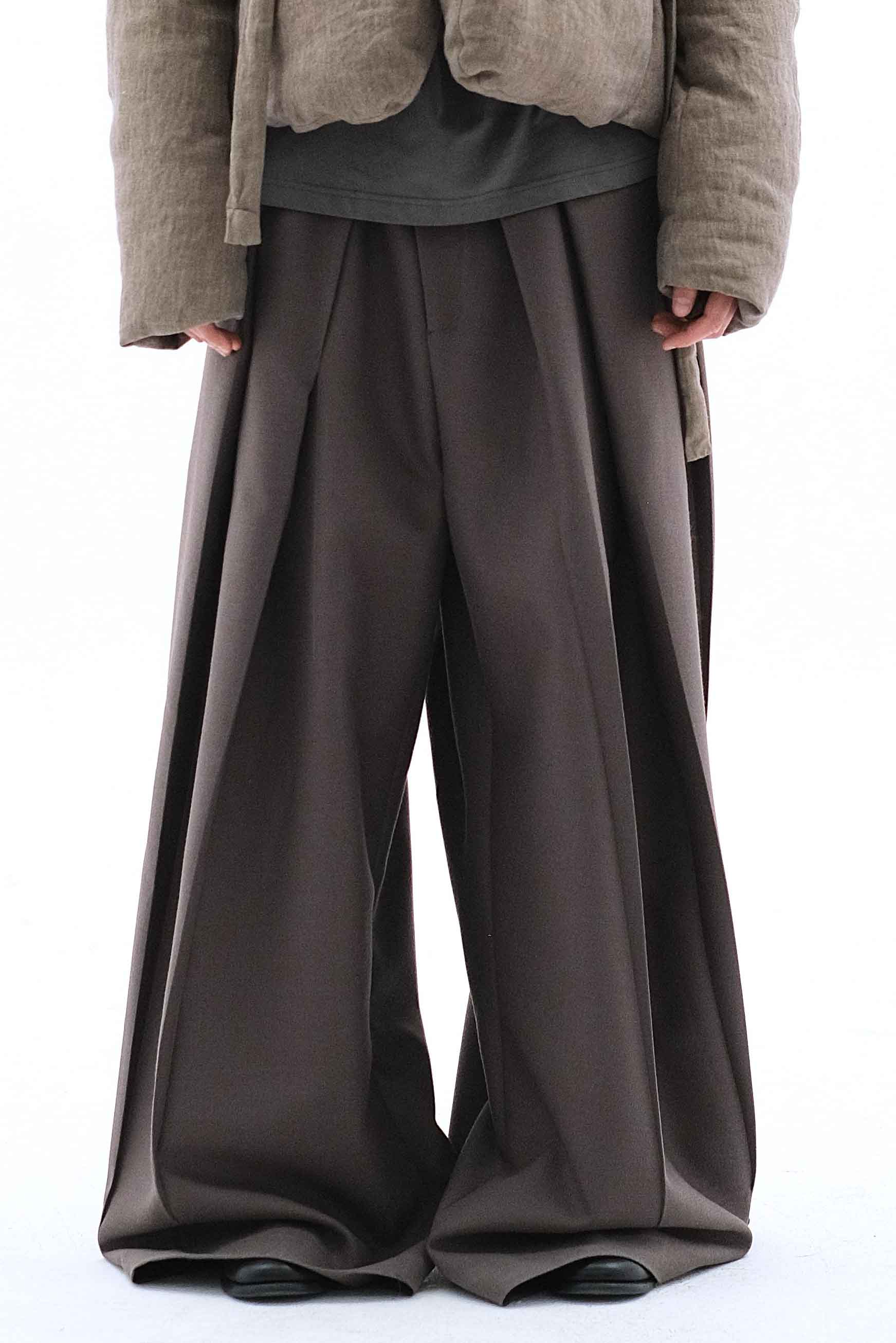 In an effort to develop a fresh visual system, ATTEMPT Project 11 reconstructs several aspects and styles. Founded by Attempt’s creator Liang Dong, ATTEMPT Project 11 is a more experimental approach to creation and production, involving knowledge of both the historical and contemporary forms of society, developing an artistic form that is both rooted in and distinct from the present. In the end, the product needs to be something that isn't easily characterised as seen with the Nine Pleat Pants Brown.