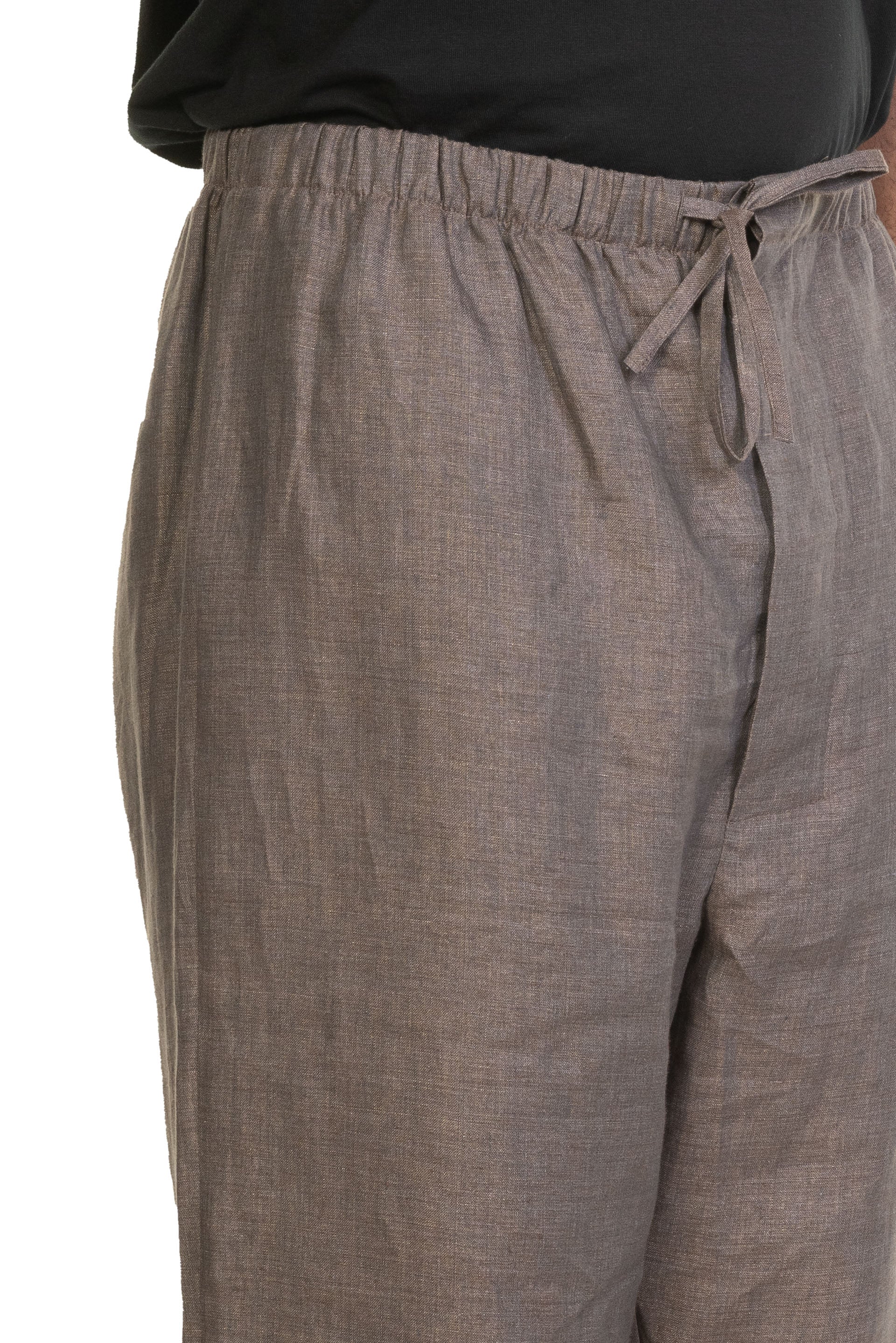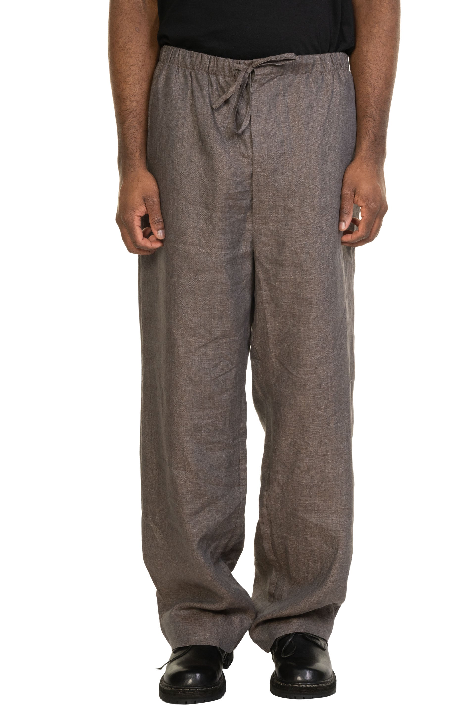 Gabriela Coll Garments Linen Trousers. Relaxed fit. Side pockets on seams gathered waistband drawstring. Concealed button fly. Natural corozo buttons. French seamed interior. This garment is individually dyed. Each piece will be unique and colour nuances may occur.