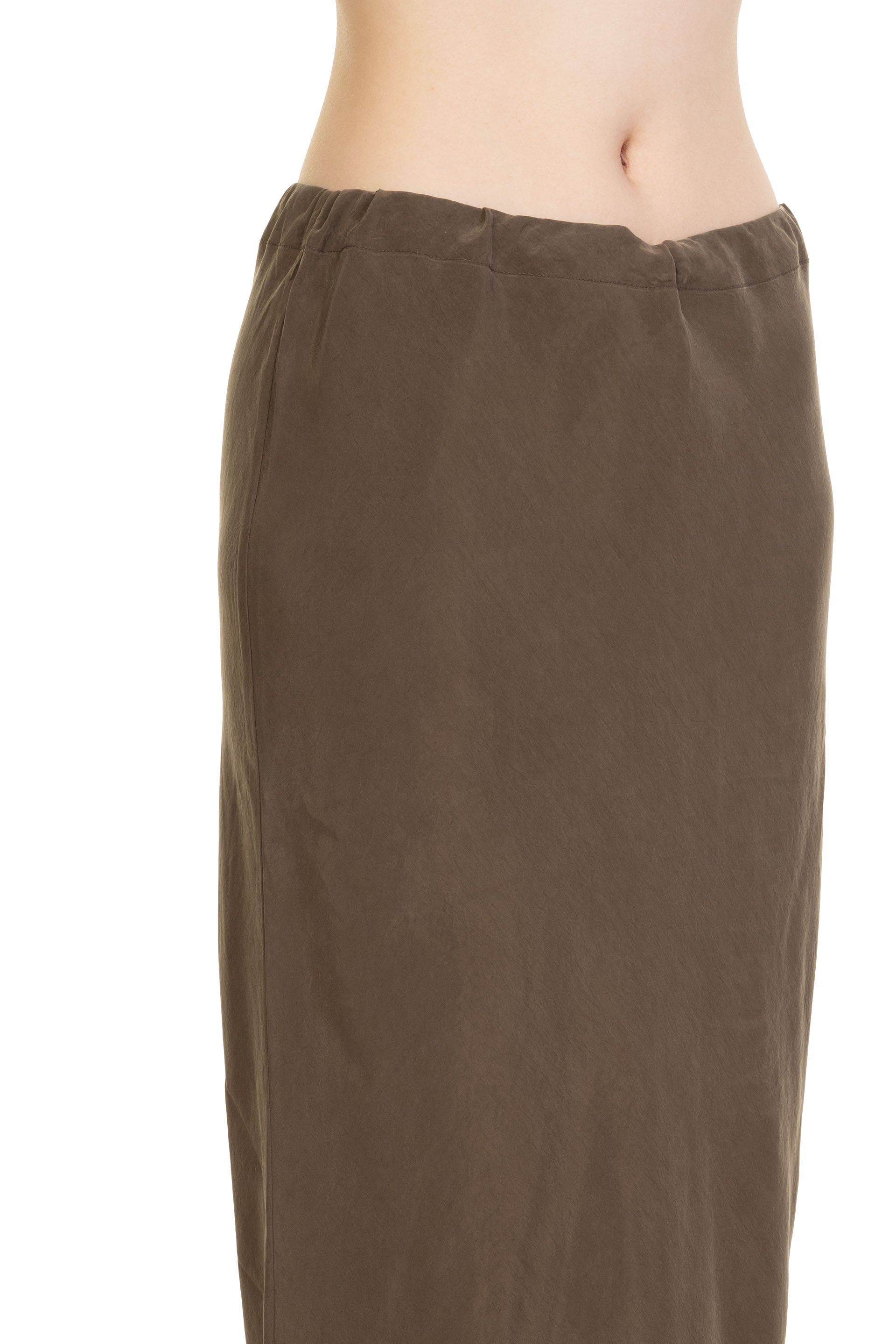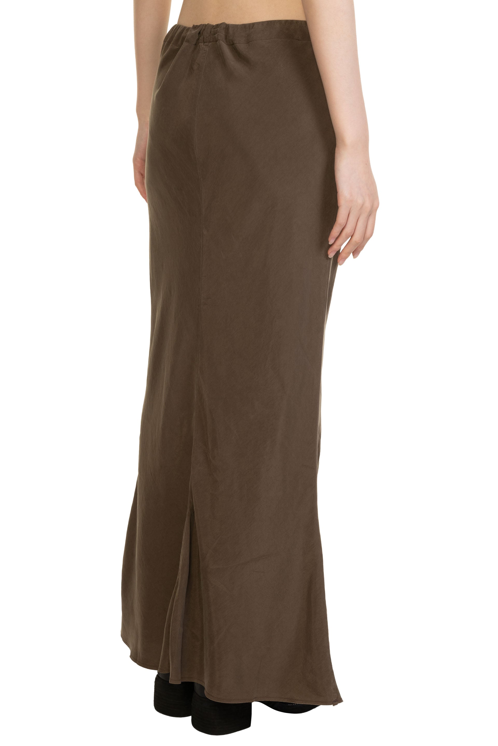 Gabriela Coll Garments NO.290 Cupro Bias Cut Skirt Brown. Drawttring closure at waistNarrow fit. Center back neck slit. Bias cut. French seamed interior.