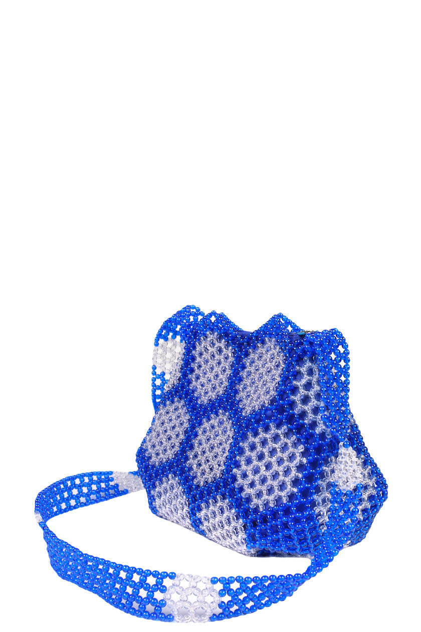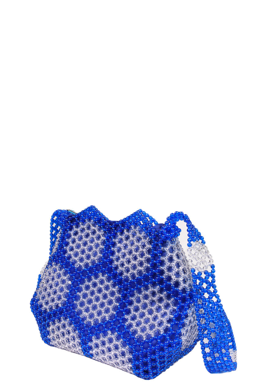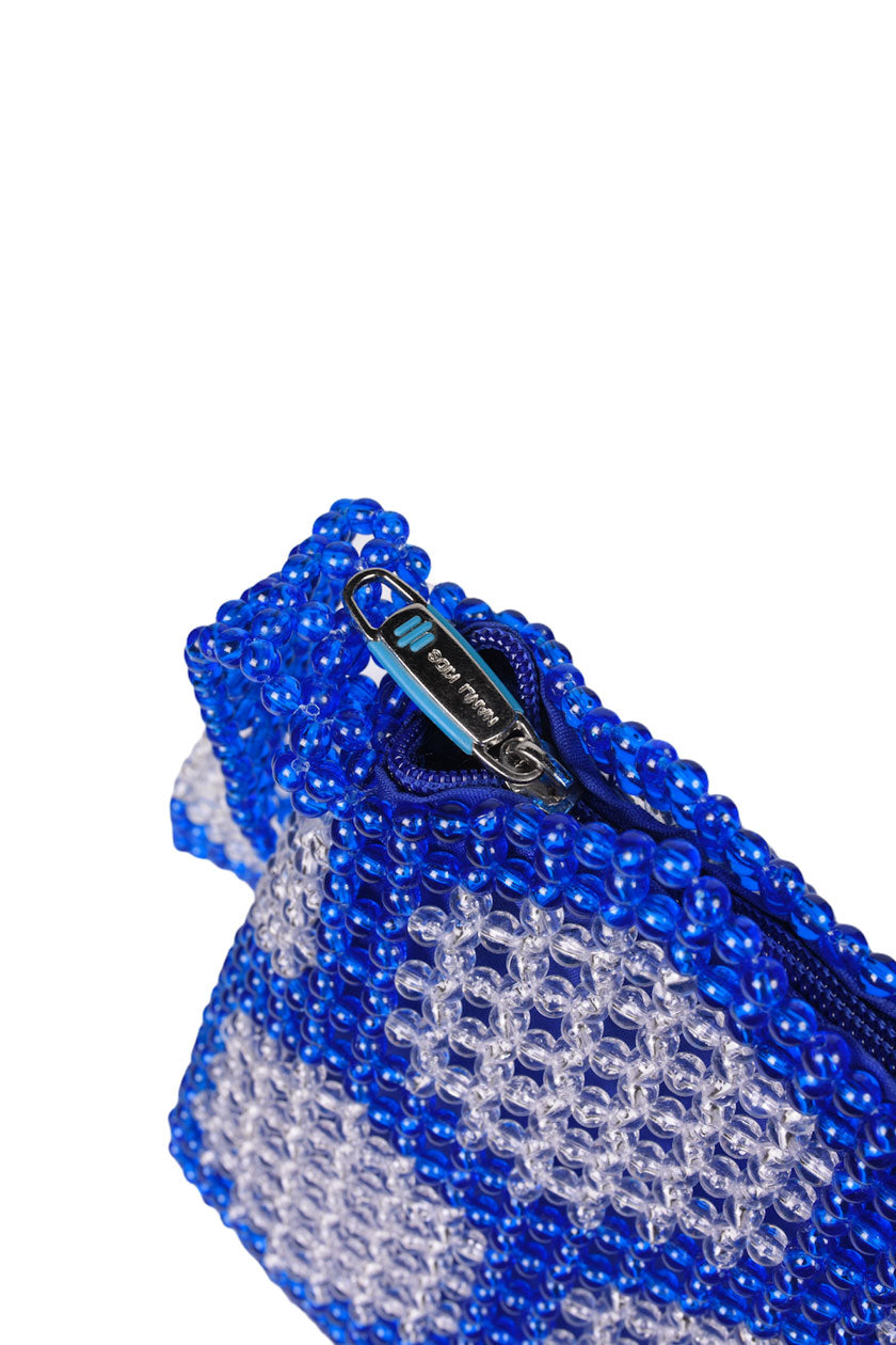 Beaded cross body travel bag. Composition 100% made from reusable plastic. Circular logo front decorated with tasteful shimmer. Recycled Waterproof lining. 26 inch adjustable shoulder strap. Zip with pocket compartments