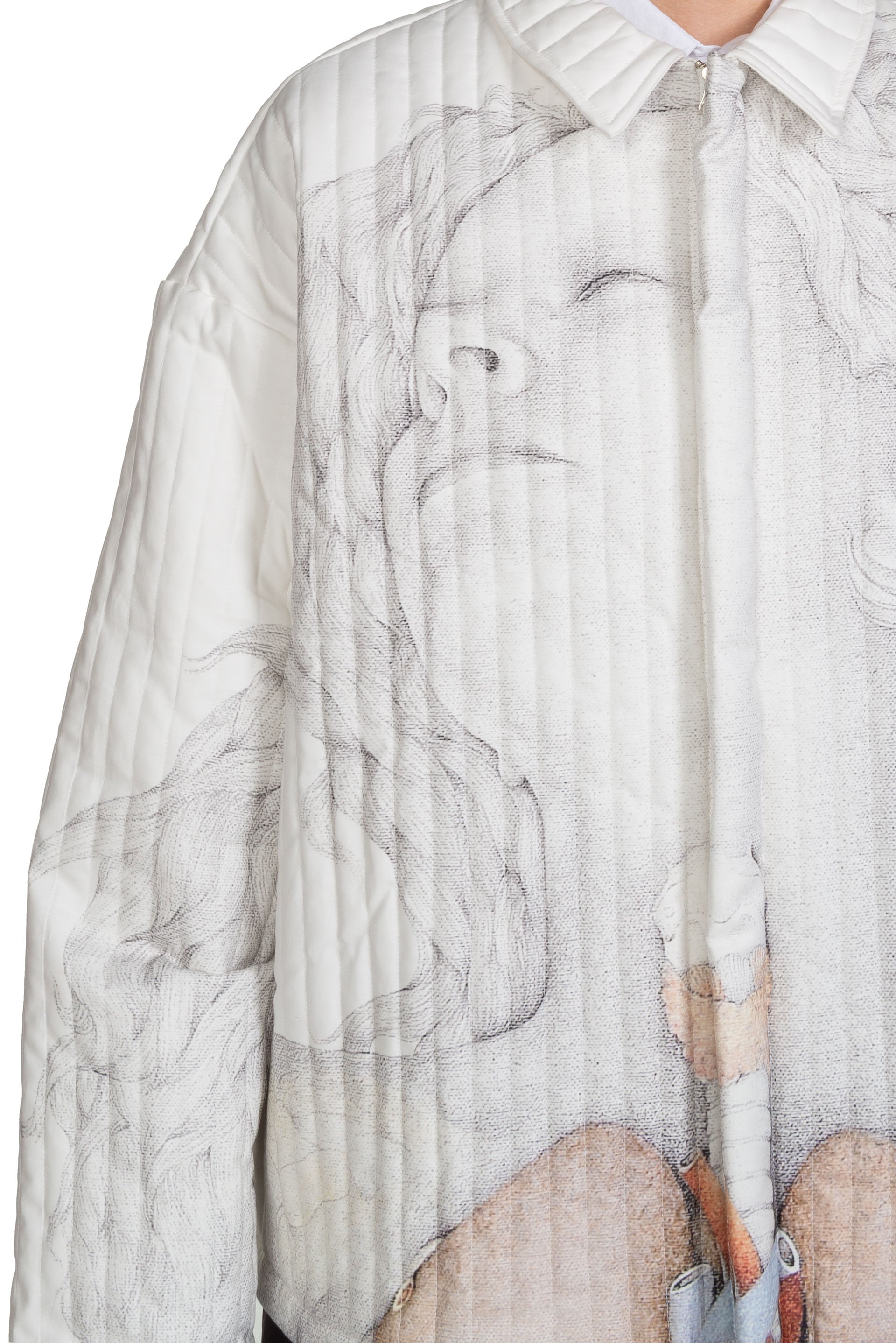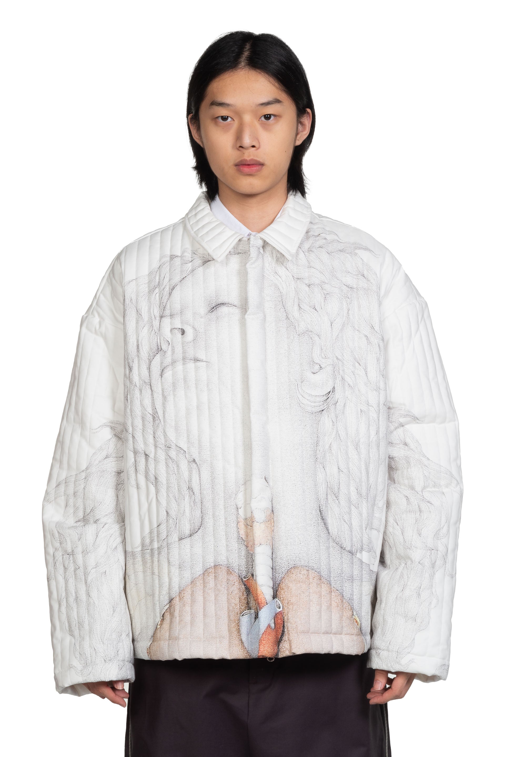 Quilted Jacket made of premium 100% cotton fabric with cutouts in pure silk. With oversized modeling, the Ondina Jacket has an exclusive print developed in partnership with the Brazilian artist Walmor Corrêa. The artwork talks about the dissection of Ondina, a Brazilian Mermaid. It has side pockets, cotton lining, and magnetic closure system + metal zipper.