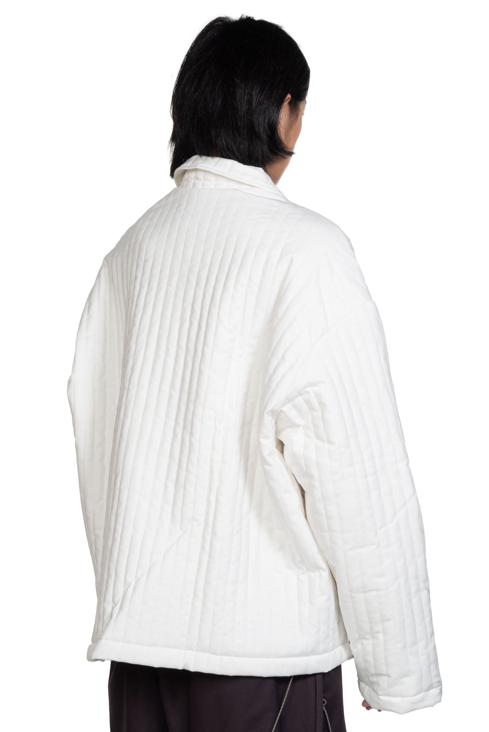 P. Andrade presents a Japanese avant-garde style combined with looks that are fit for rainforest excursions, tinged with tailoring cues and contrasted with technical touches as seen with the Ondine Quilted Jacket.