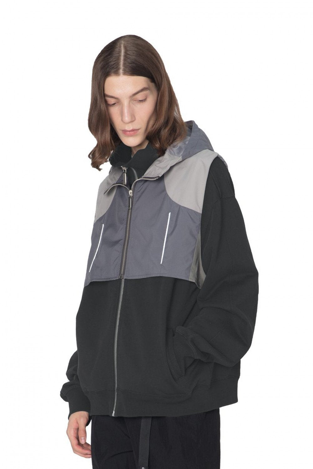 C2H4 concept ranges from hypothetical space scientists producing sport and streetwear-inspired designs creating an intergalactic underground culture. Using her studio as a laboratory, Chen’s meticulously elevates wardrobe cornerstones as seen with the Opra Double layer Zip Up Jacket.