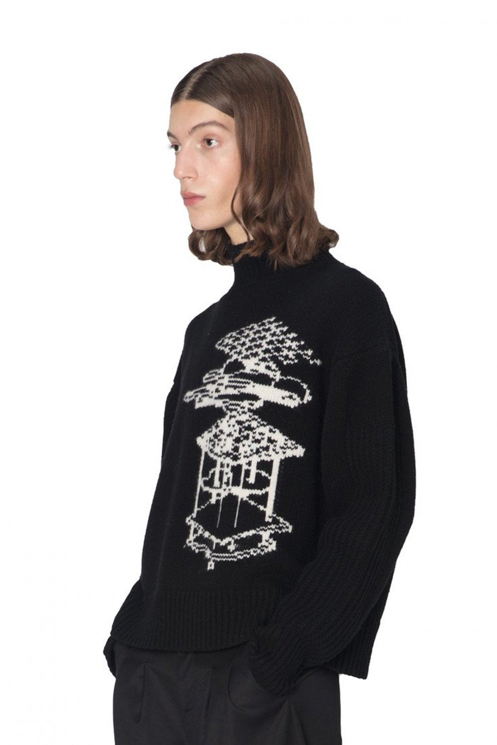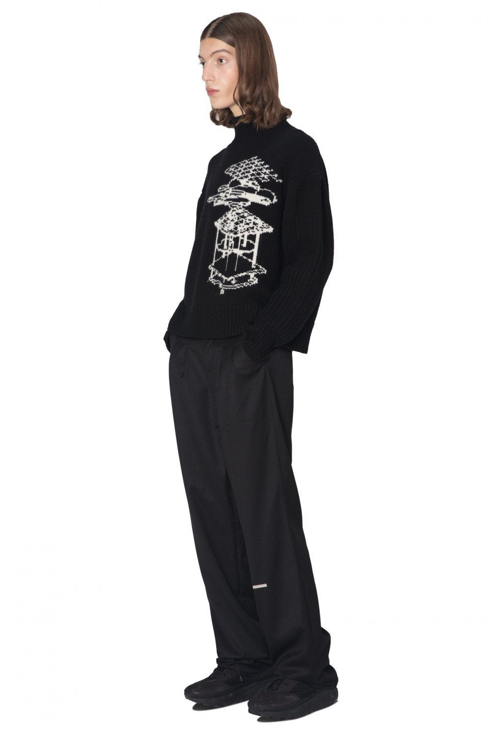 C2H4 concept ranges from hypothetical space scientists producing sport and streetwear-inspired designs creating an intergalactic underground culture. Using her studio as a laboratory, Chen’s meticulously elevates wardrobe cornerstones as seen with the Opra Panelled Turtleneck Sweater.