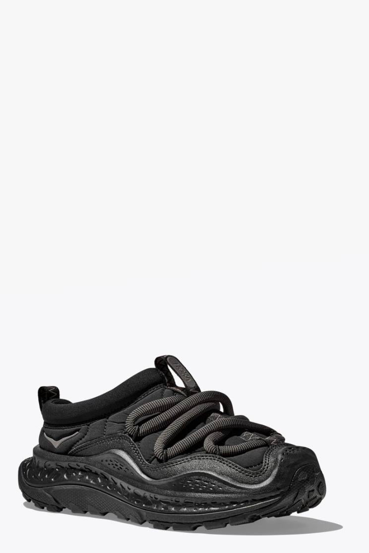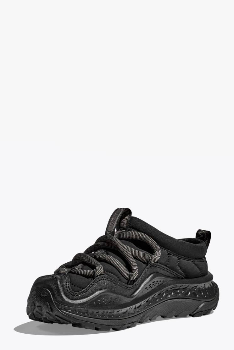 HOKA shoes retain features like a low weight-to-cushion ratio and midsole and outsole geometry designed to promote inherent stability and an efficient stride as seen with the Ora Primo Black Black. Hoka one one cutting-edge Ora Primo design cues to deliver the boldest expression of our Ora franchise to-date. A futuristic silhouette that delivers the same post-run relief as its predecessor, the new Ora Primo has been elevated with a soft knit collar, elastic lace system and insulated puff upper for that seasonless, slip-on comfort you crave.