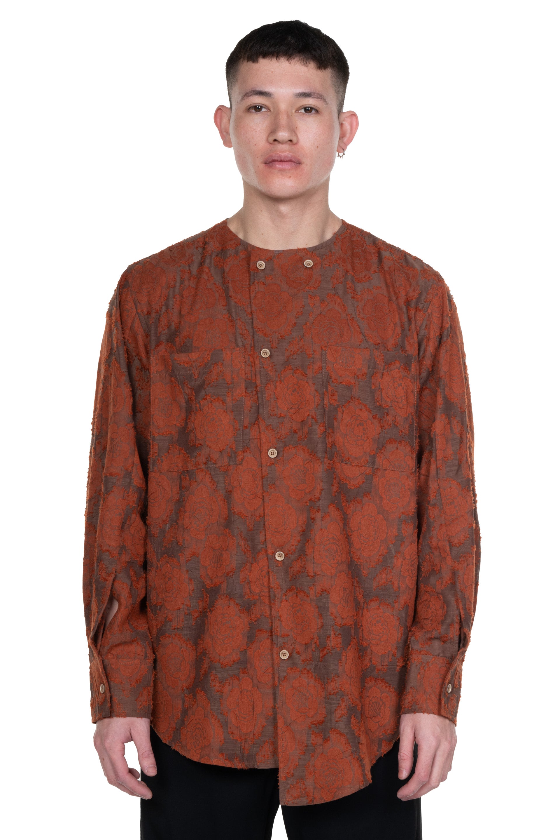 Inspired by Korean and Scandinavian culture, the brand reinterprets and combines two contrasting traits to create an individual and unique aesthetic and perspective. Constructed from top-tier materials sourced from around the globe, Andersson Bell’s designs are ultimately intended to last a lifetime as seen with the Orange Flower Collarless Shirt.