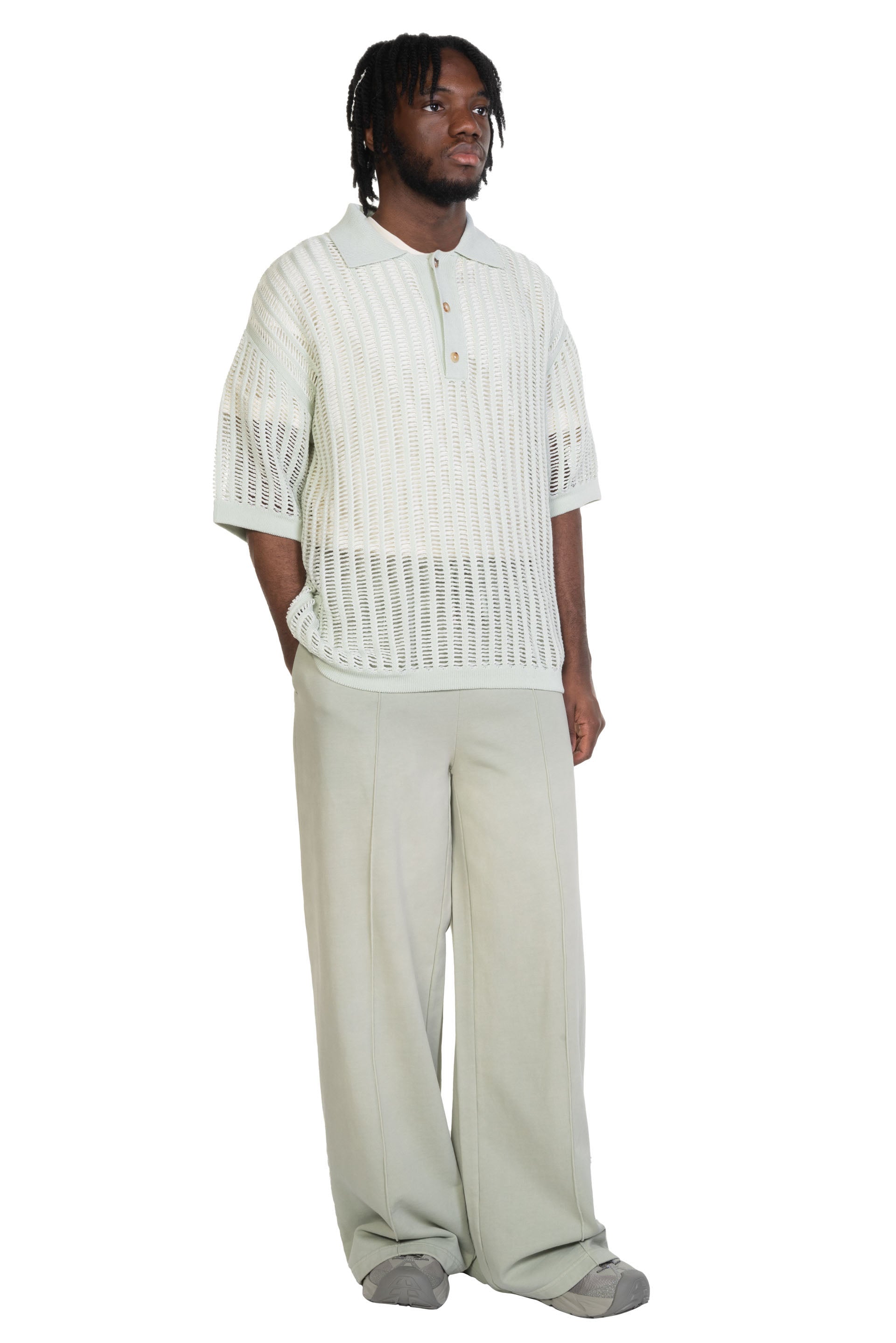 Feng Chen Wang aesthetic is authentic, emotional and multidimensional, drawing on personal life experiences and her Chinese heritage to create products that are functional but at the same time conceptual as seen with the Oversize Knit Polo Pale Green.