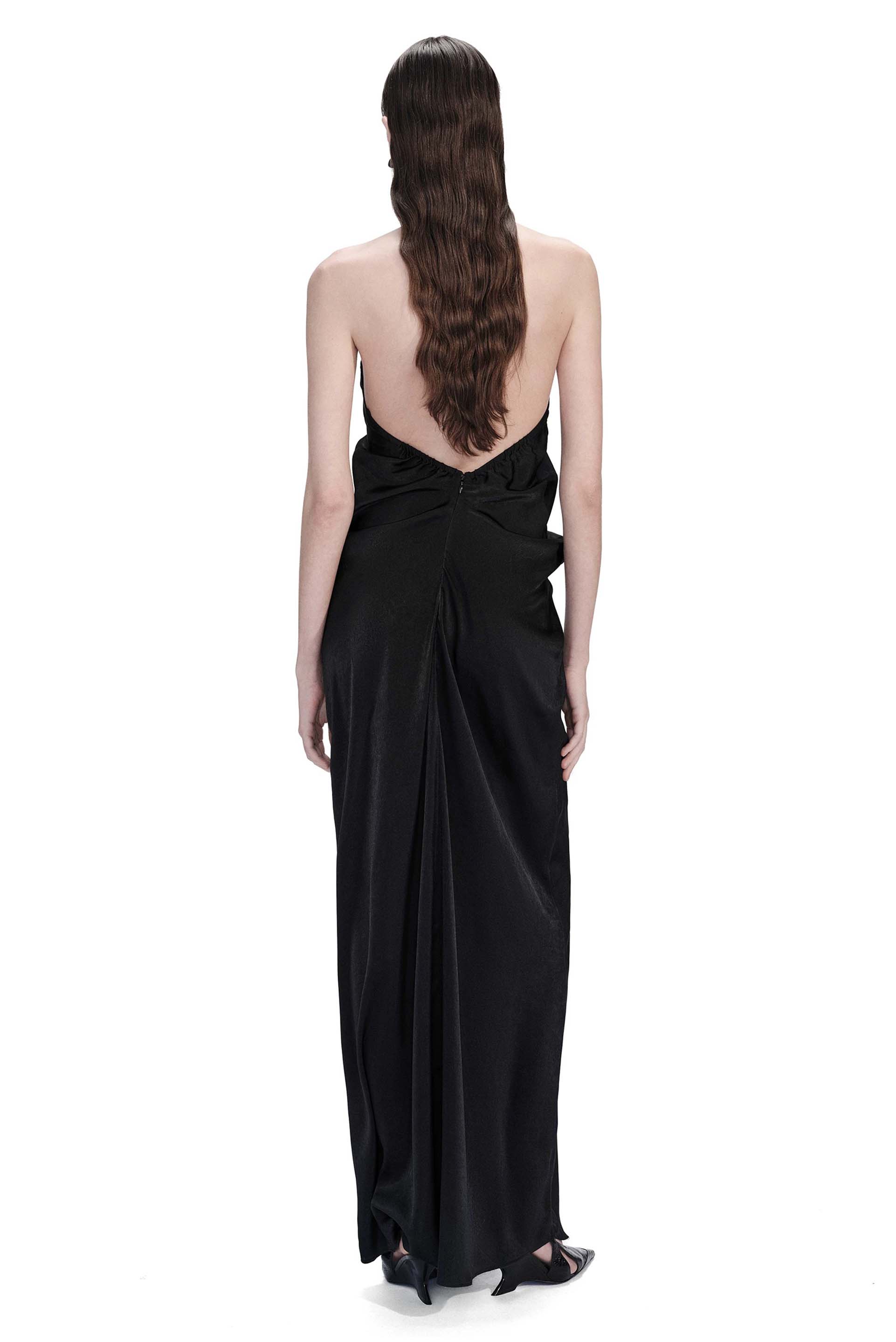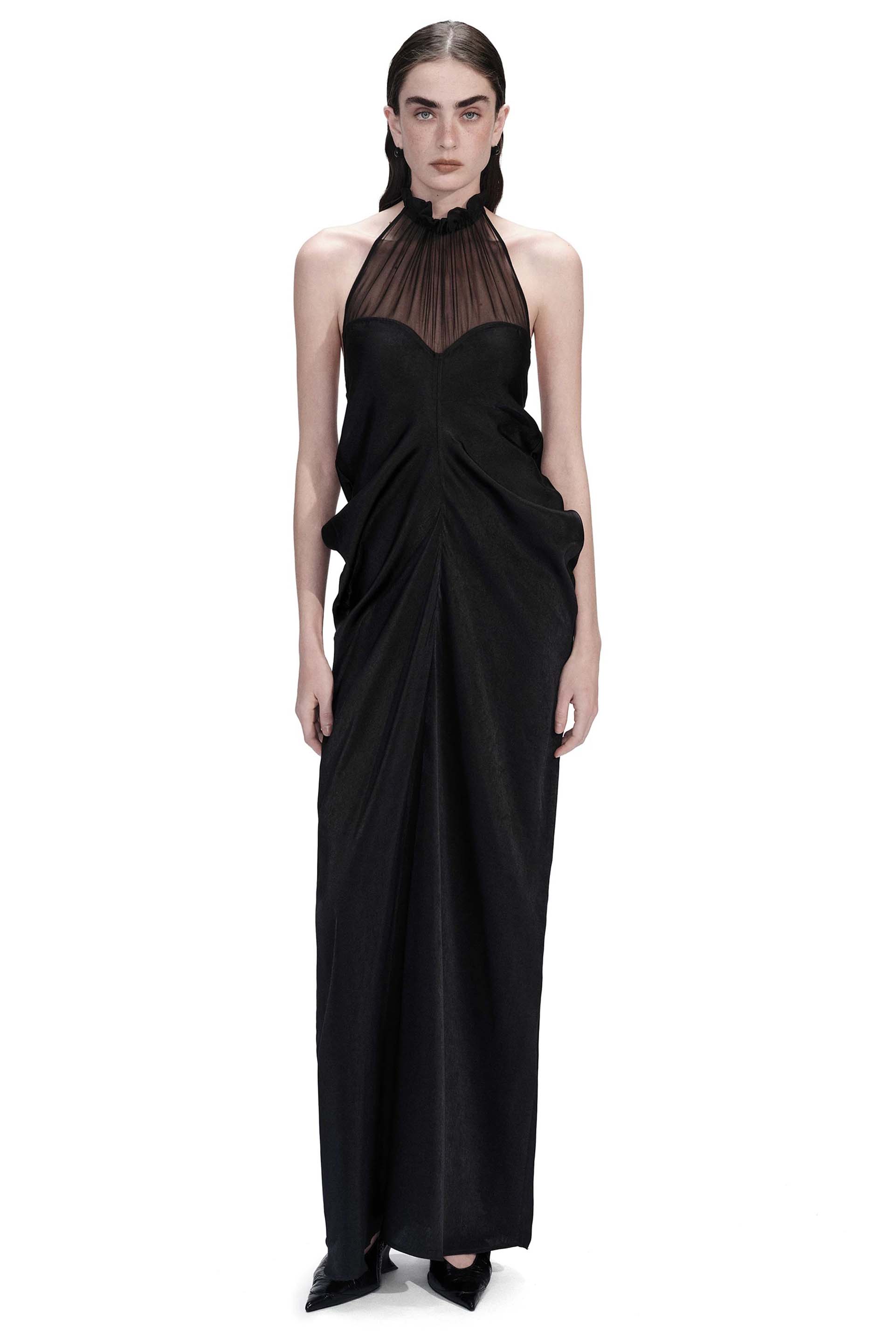 Paneled Silk Draped Dress Black