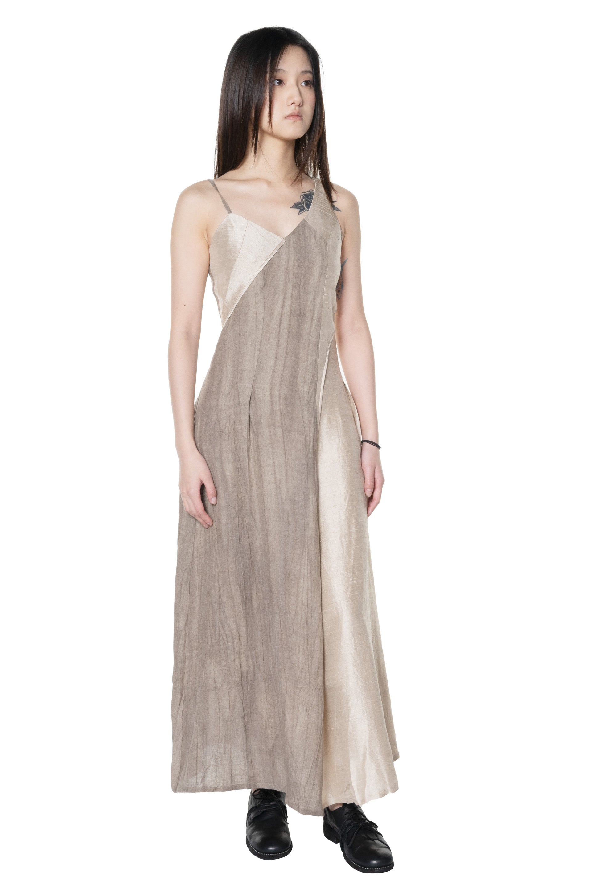 Professor. E understands the time of aesthetics from the use of cotton, hemp and wool. Fabric stitching, patching, designs without edge trimming, deconstruction, and reproduction are all Professor. E's signature elements creating classic immortal designs that can be viewed with the Forgotten Materials Panelled Maxi Dress.