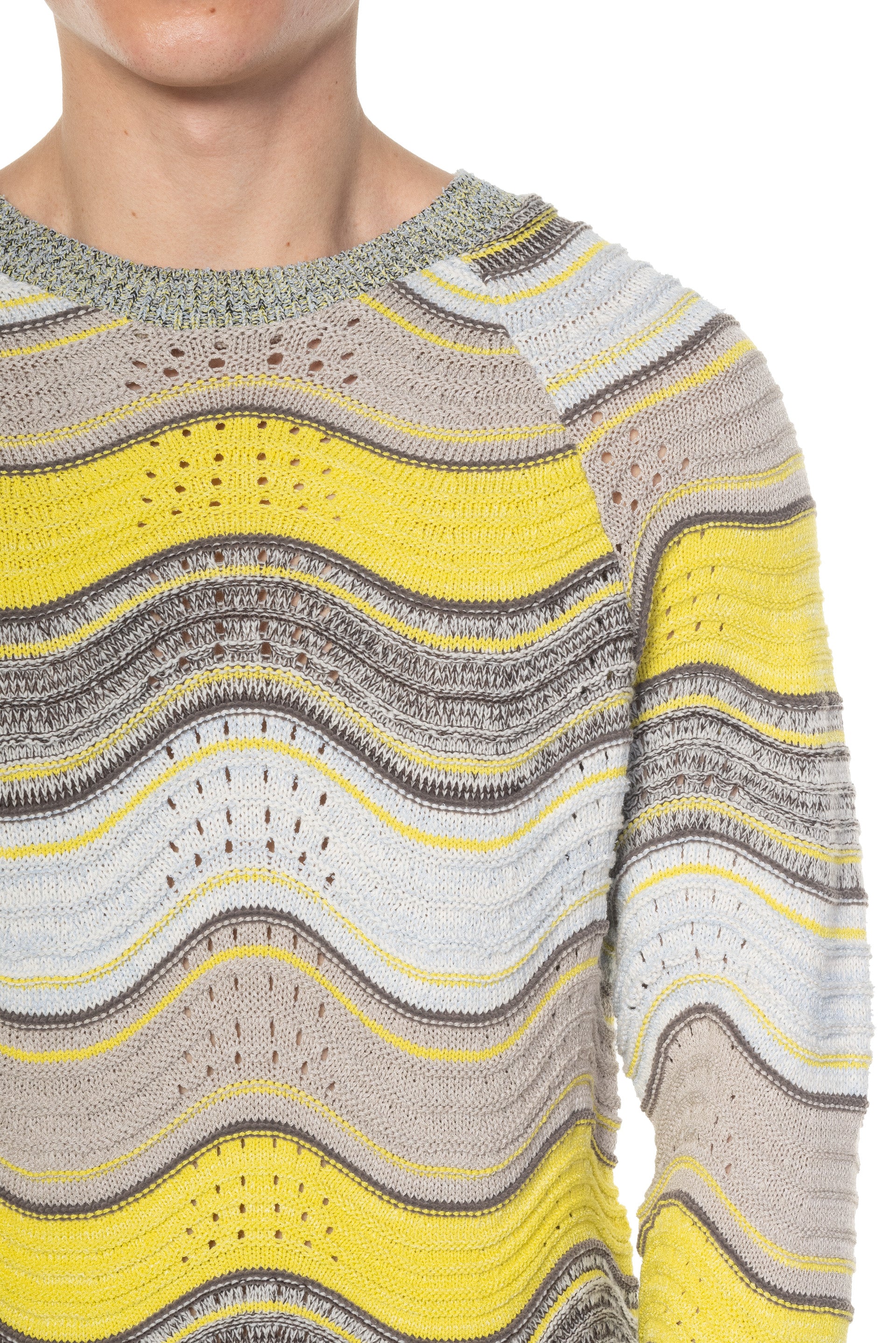 Vitelli has been praised for its radical approach on sustainability by producing only with 100% reclaimed yarn from Italian knitwear industry leftover as seen with the Peacock Knit Sweater.